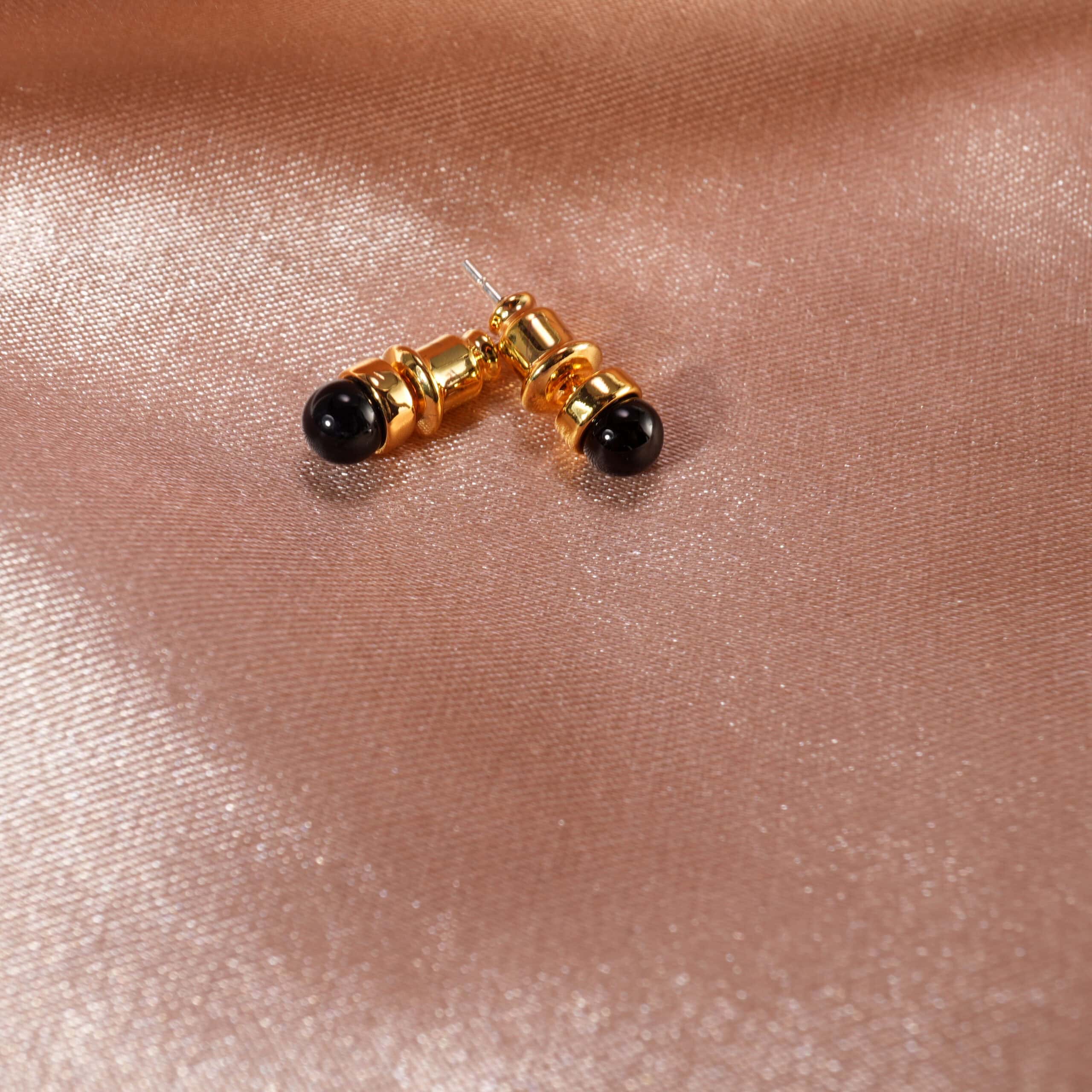 18K Gold Plated Black Tourmaline Mini Stud Earrings