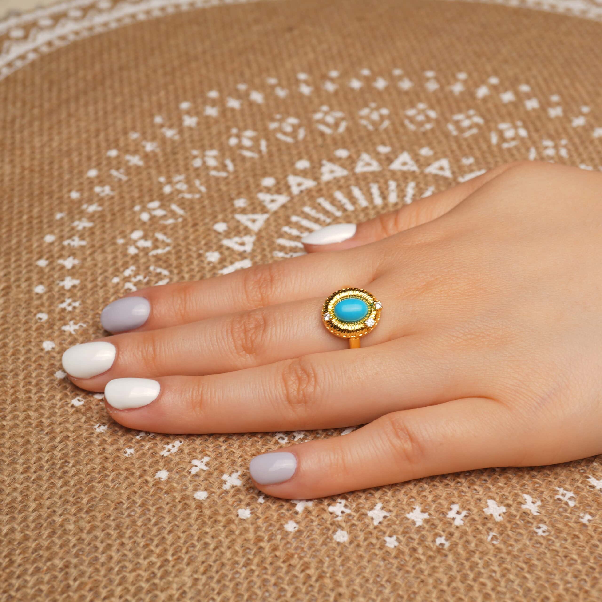 18K Gold Plated Turquoise Ring – Elegant & Lucky