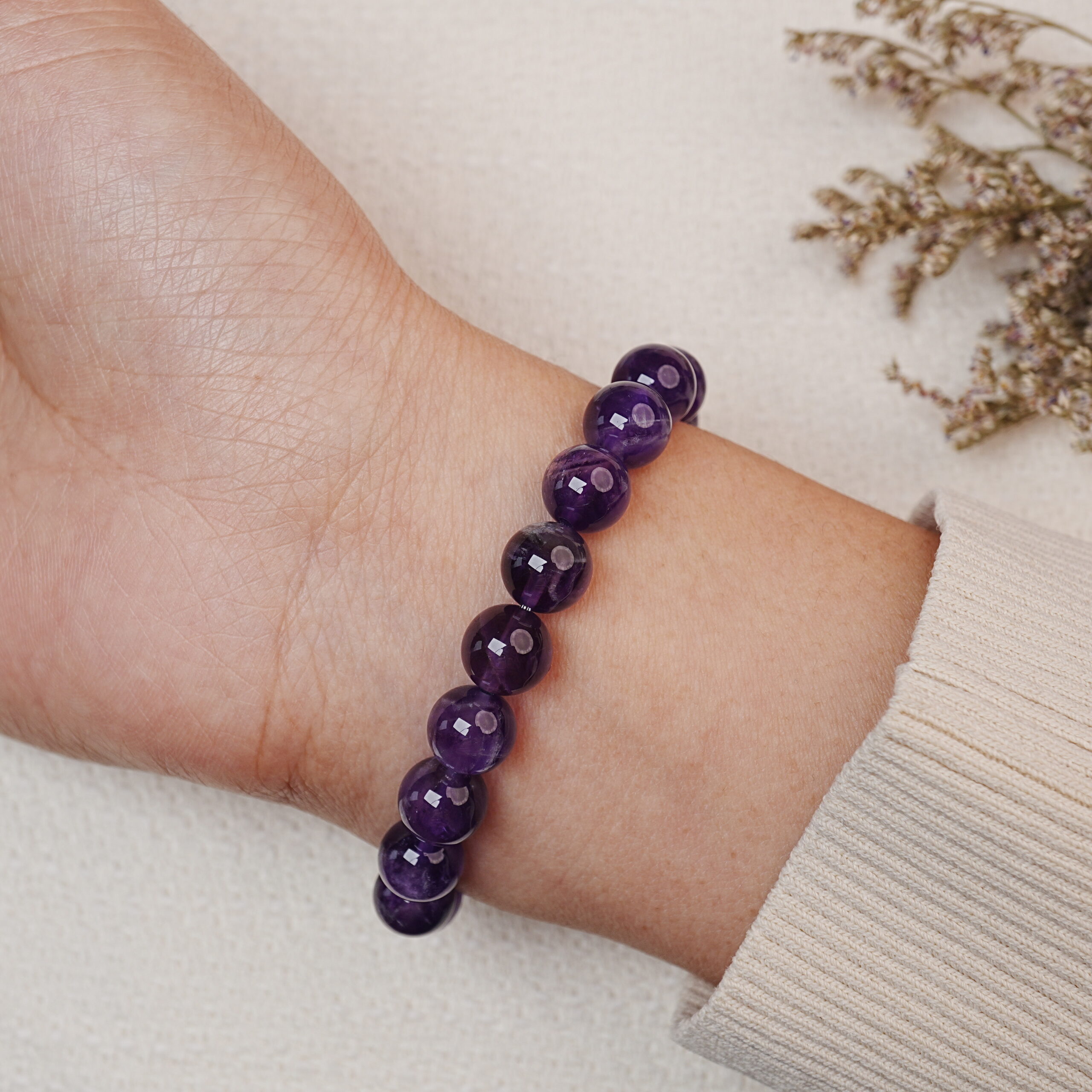 A soothing amethyst bracelet made with deep purple beads to promote restful sleep, inner calm, and emotional clarity—perfect for daily wear or nighttime rituals.