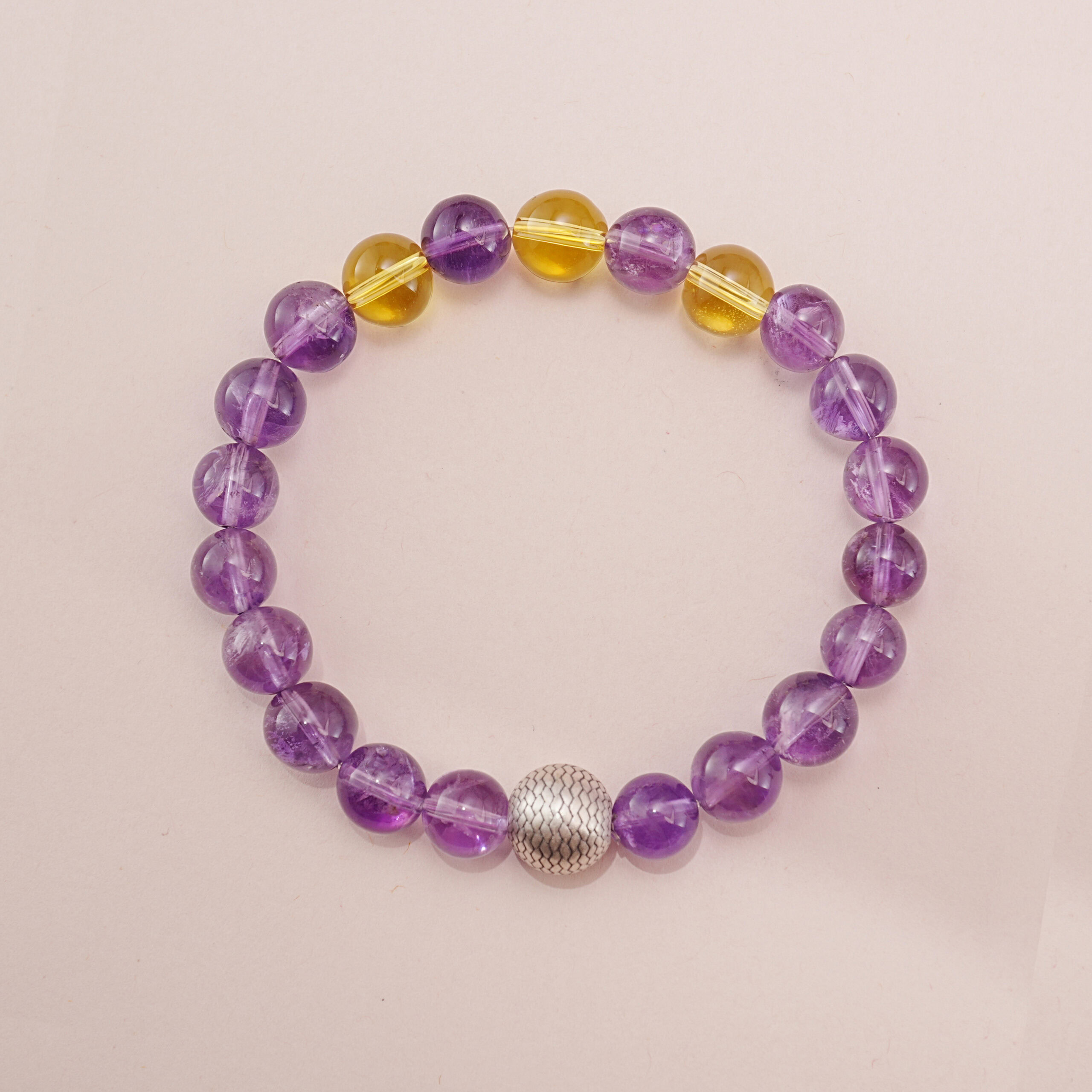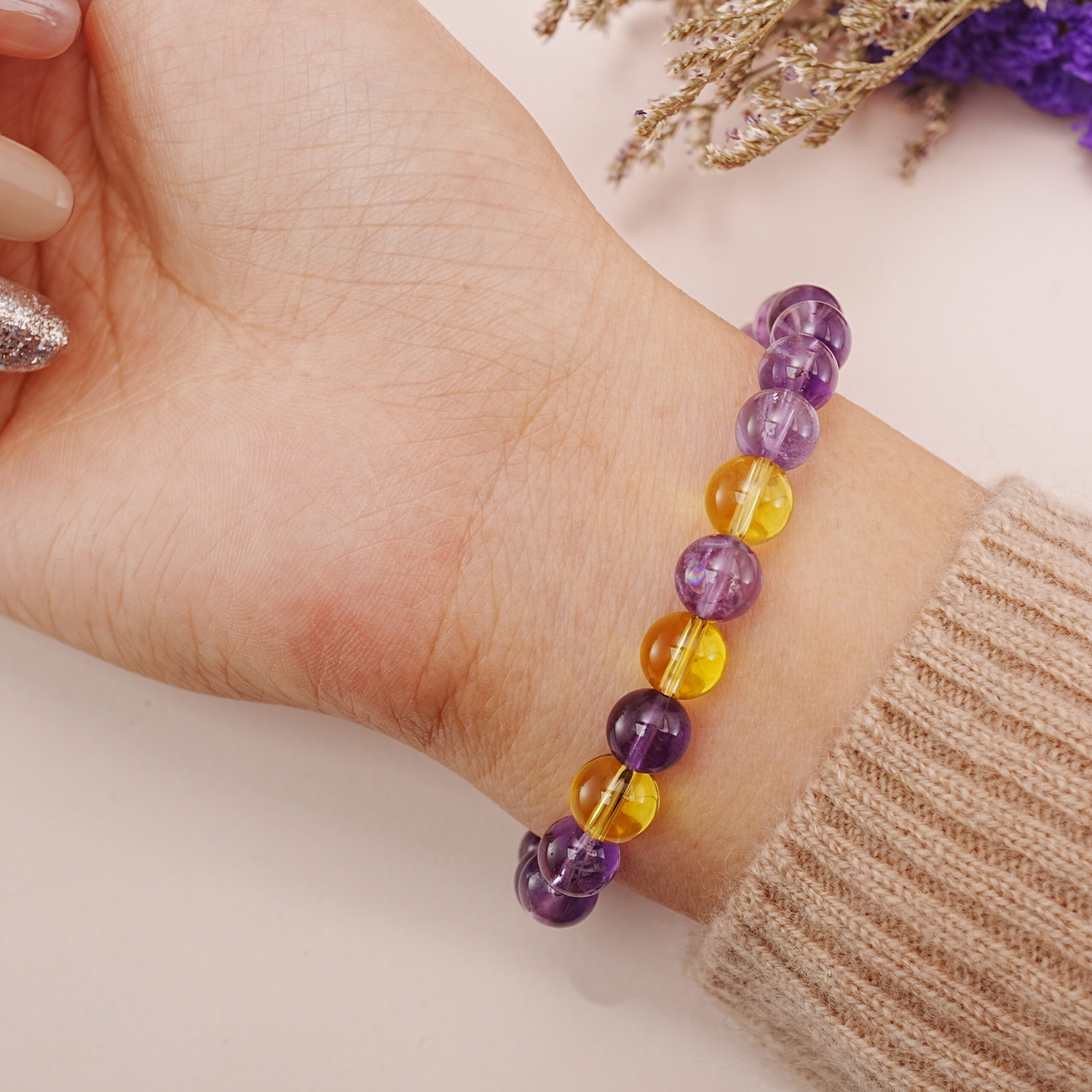 A vibrant crystal bracelet combining calming amethyst and joyful citrine — perfect for balance, clarity, and everyday positive energy, encouraging emotional resilience and mental clarity throughout your day.