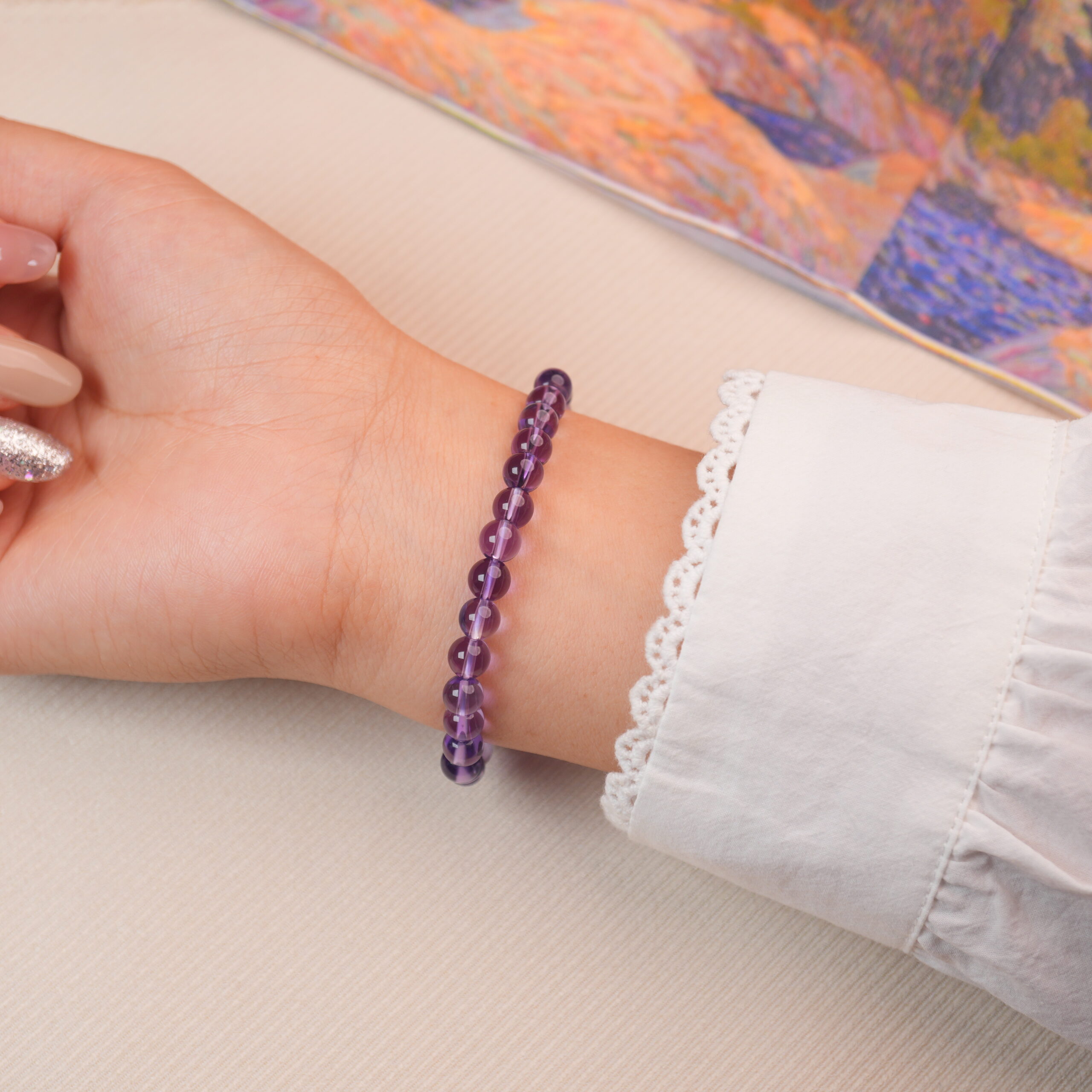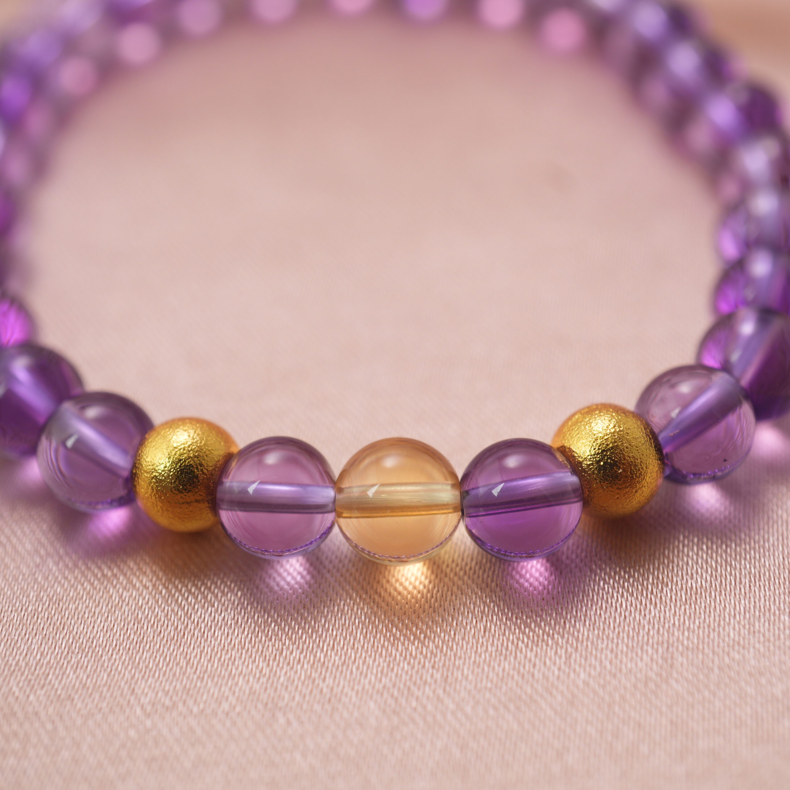 A soothing amethyst and citrine beaded bracelet designed to promote deep sleep and calm the mind, ideal for nightly relaxation, peaceful dreams, and energy balance, with natural crystals that ease stress and support emotional clarity.