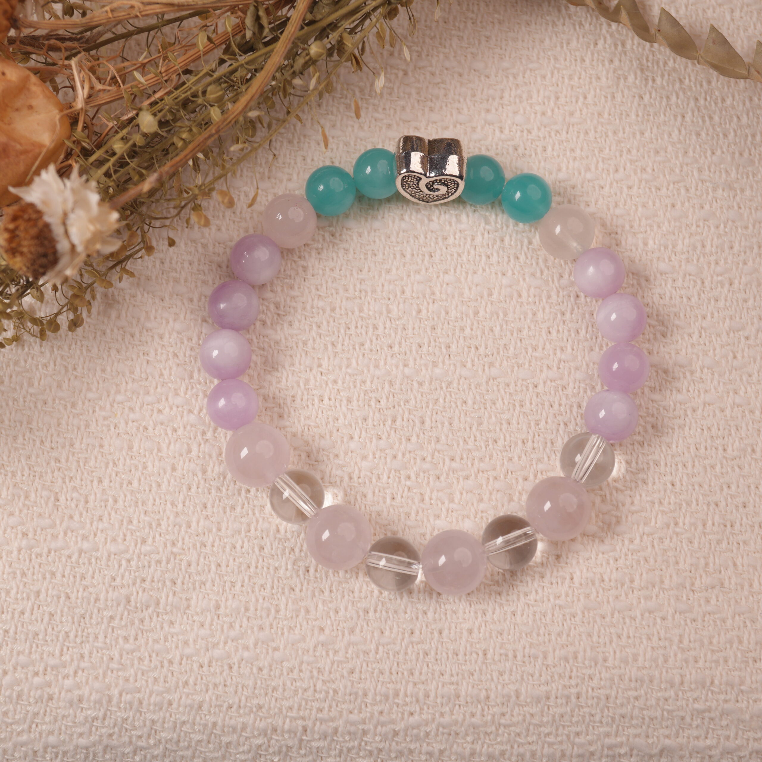 This handcrafted bracelet combines the calming energy of amethyst with the gentle strength of prehnite, finished with a polished silver bead. Ideal for those seeking emotional clarity and daily balance.