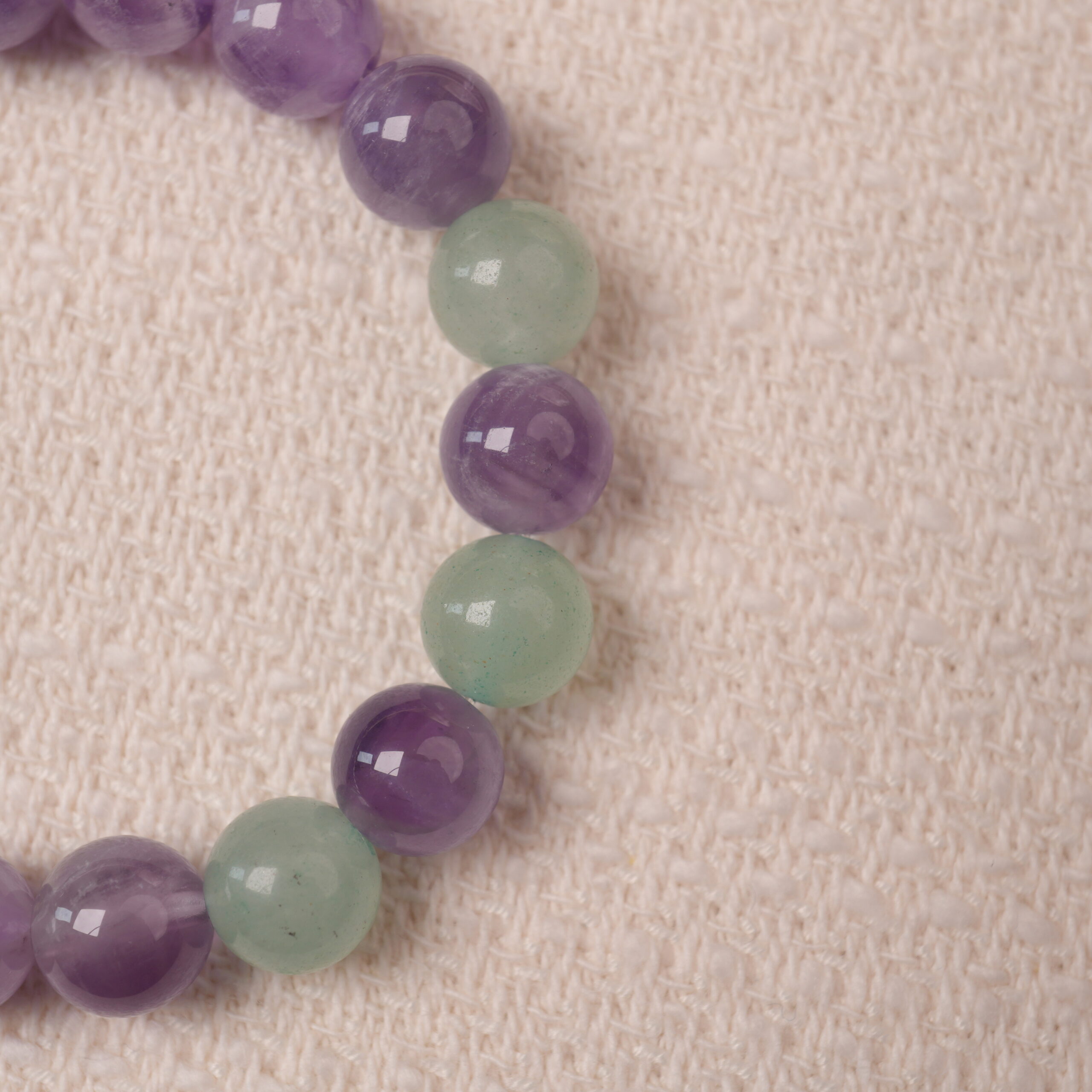 - Features natural amethyst and prehnite gemstone beads