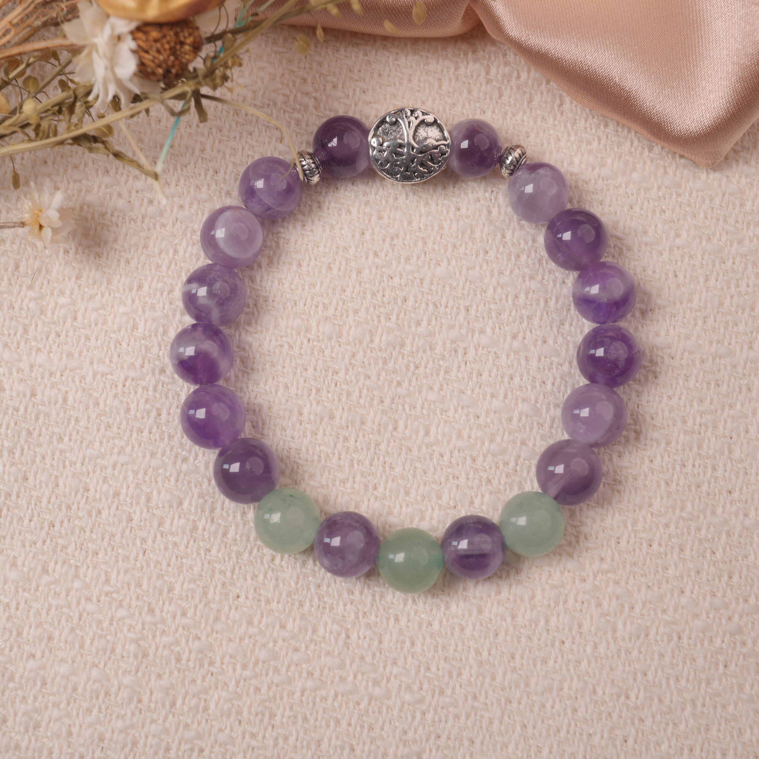 Amethyst & Prehnite Bracelet with Silver Bead – Tranquil Healing Crystal Bracelet