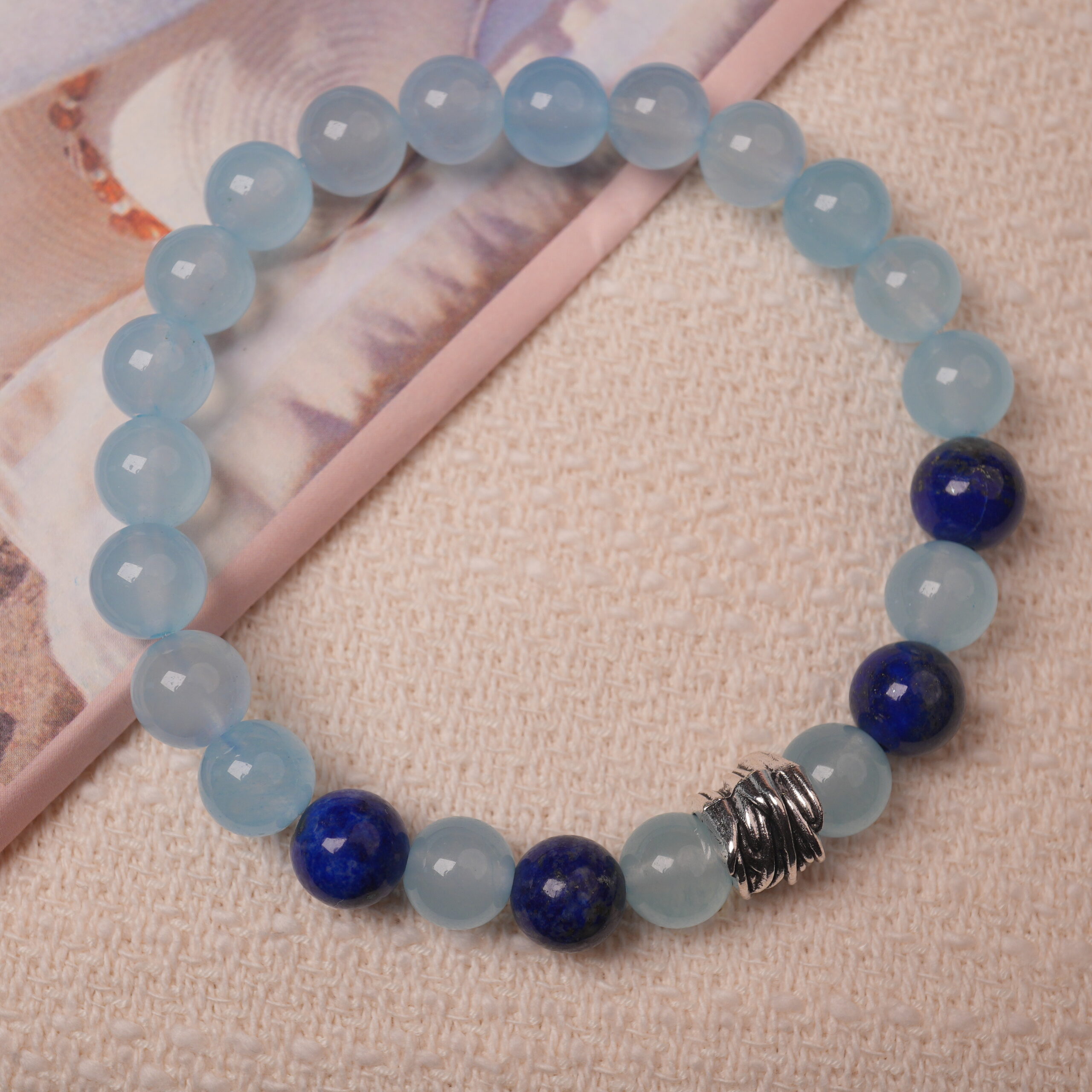 A tranquil fusion of aquamarine and lapis lazuli, this bead bracelet inspires calm, clarity, and confident expression. A must-have for lovers of aquamarine bracelets, lapis lazuli jewelry, and healing stones.