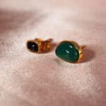 These earrings feature green and black agate in a bold asymmetric design, blending modern style with healing energy. Green agate promotes growth and balance, while black agate offers grounding and protection. Elegant and unique, they bring strength and positivity to any look.