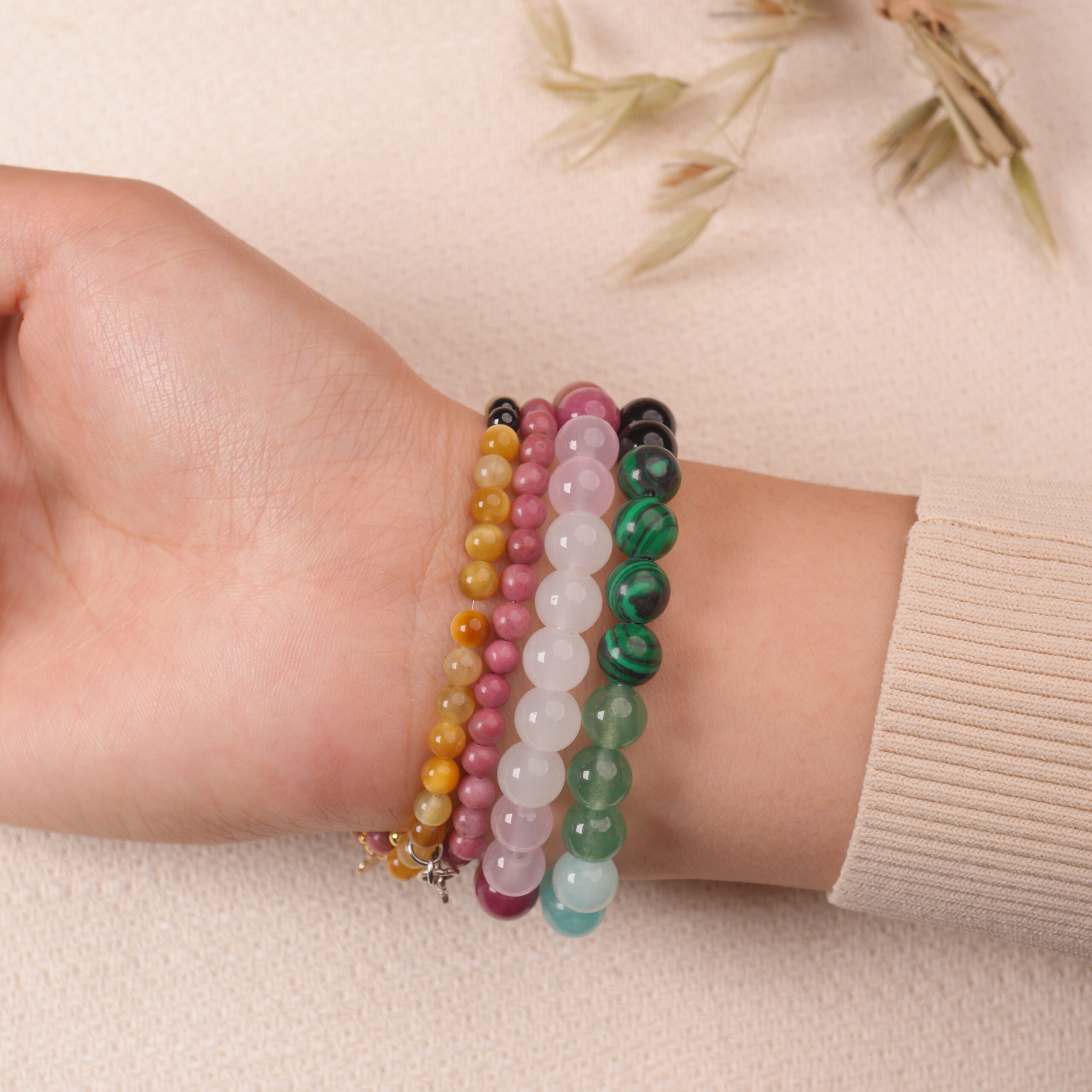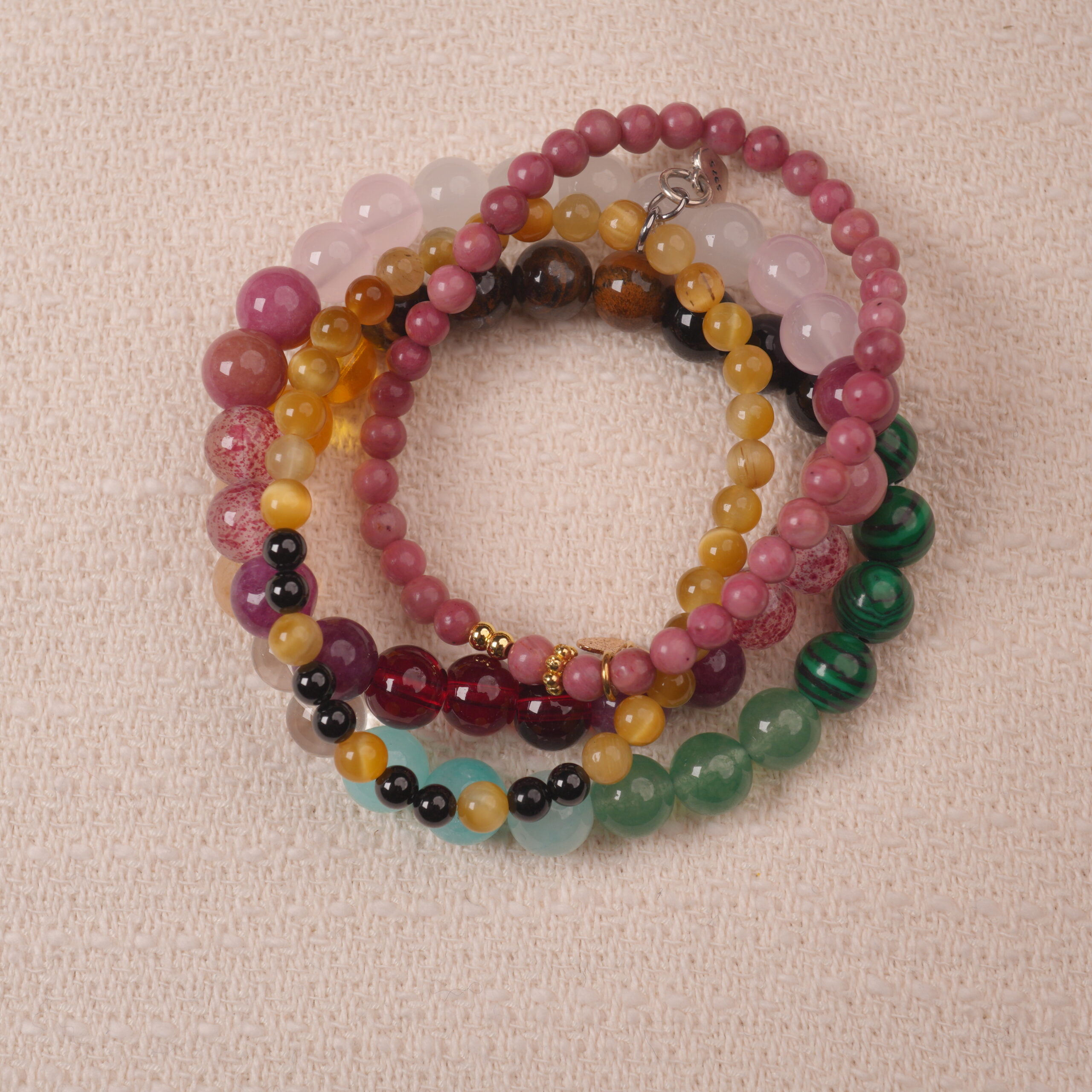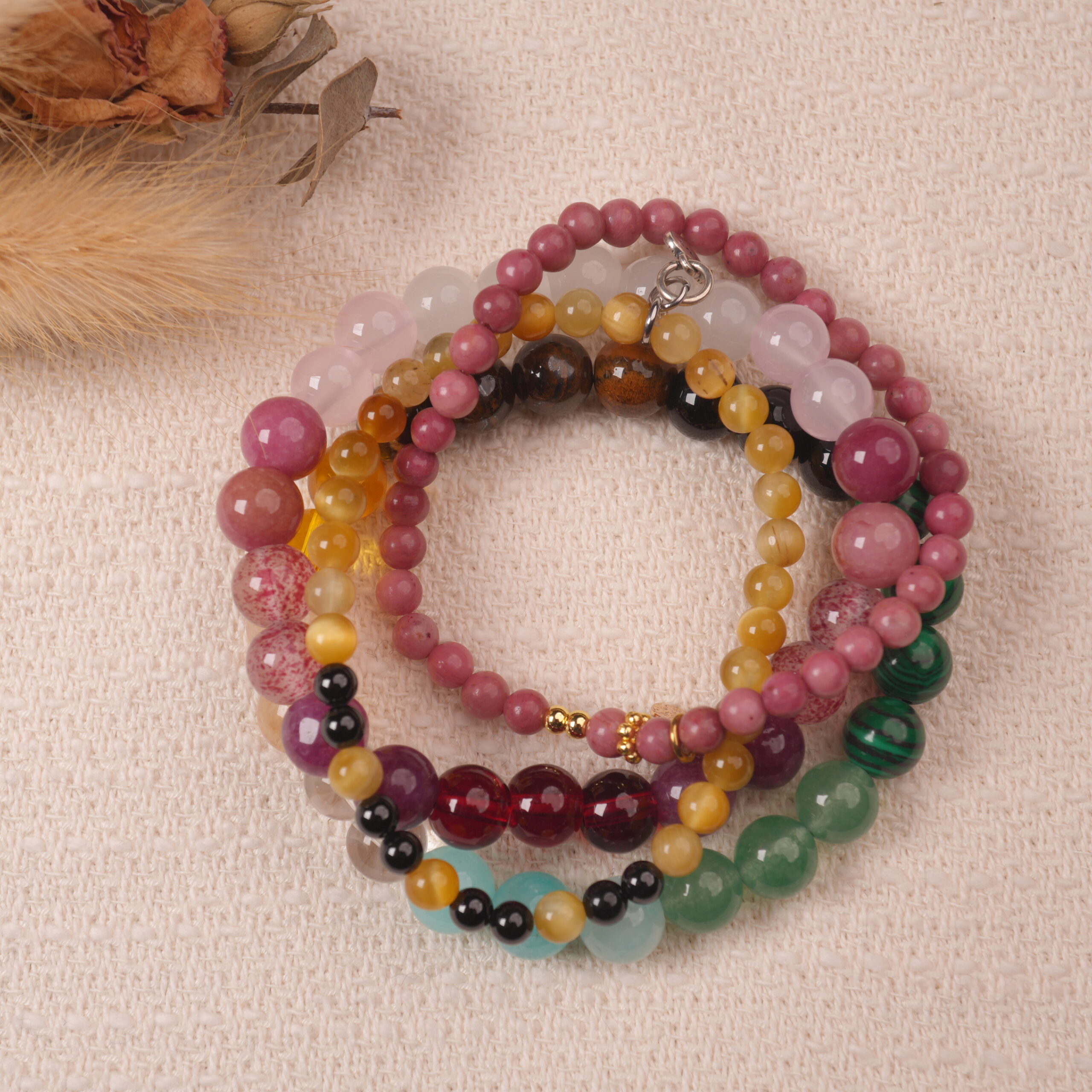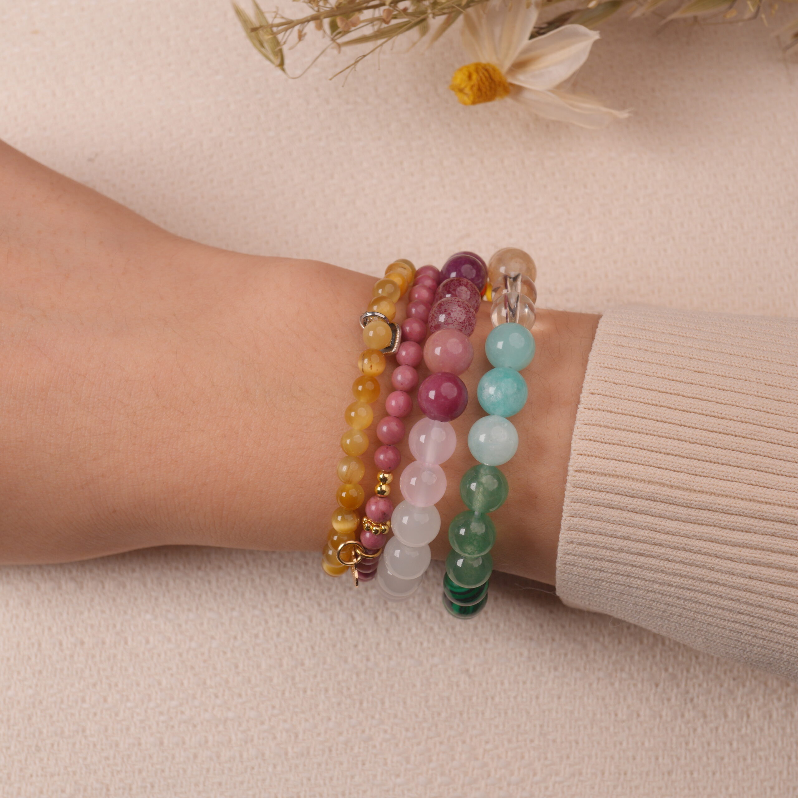 A romantic blend of pink hues and soft energies, this love-intention bracelet set features rose quartz, strawberry quartz, and other heart-soothing crystals — a charming stack to attract and nurture love in all forms.