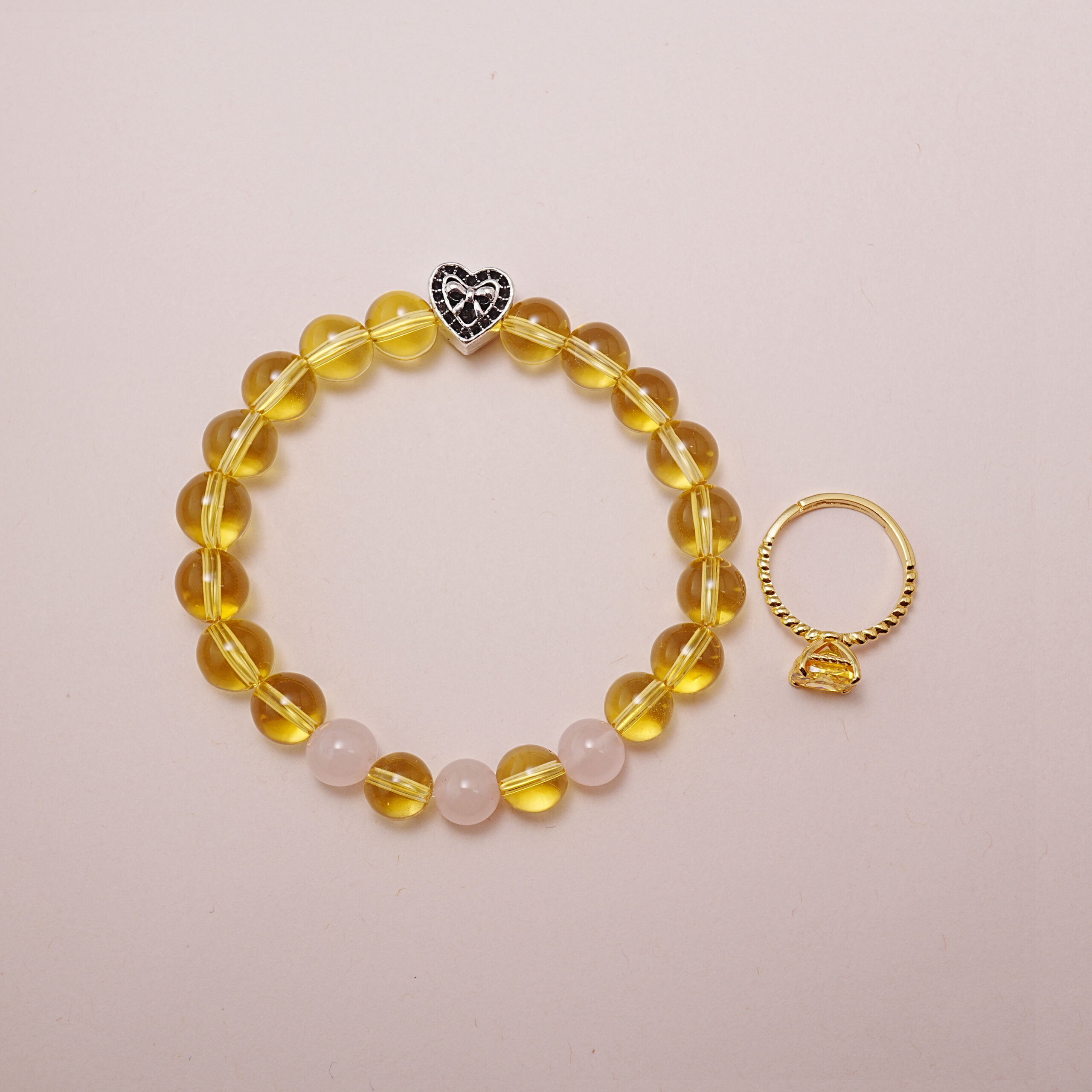 Citrine & Rose Quartz Bracelet Set with Citrine Ring | Wealth Jewelry