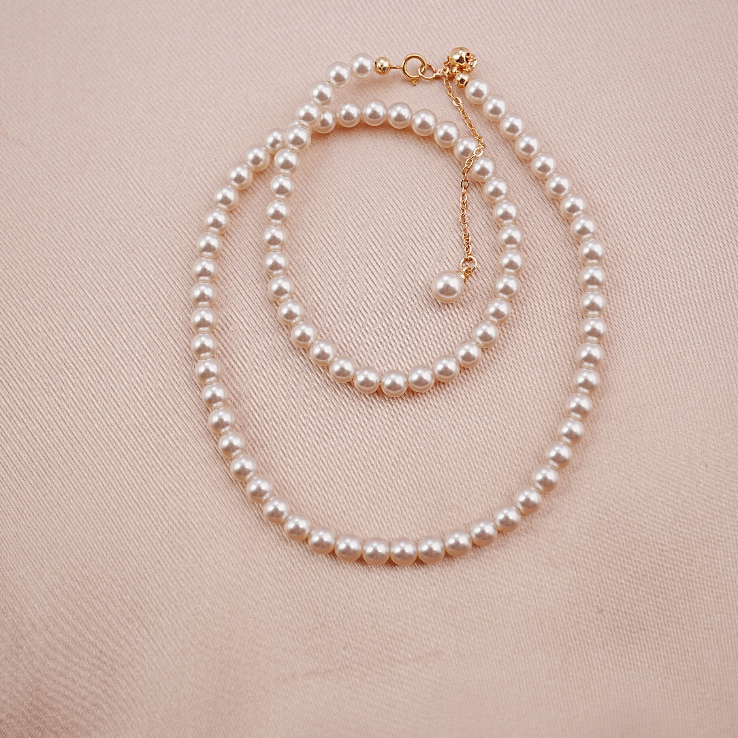 A classic pearl beaded necklace featuring smooth, luminous pearls that add effortless elegance to any look, perfect for daily wear or gifting while bringing a timeless, graceful charm to any outfit.