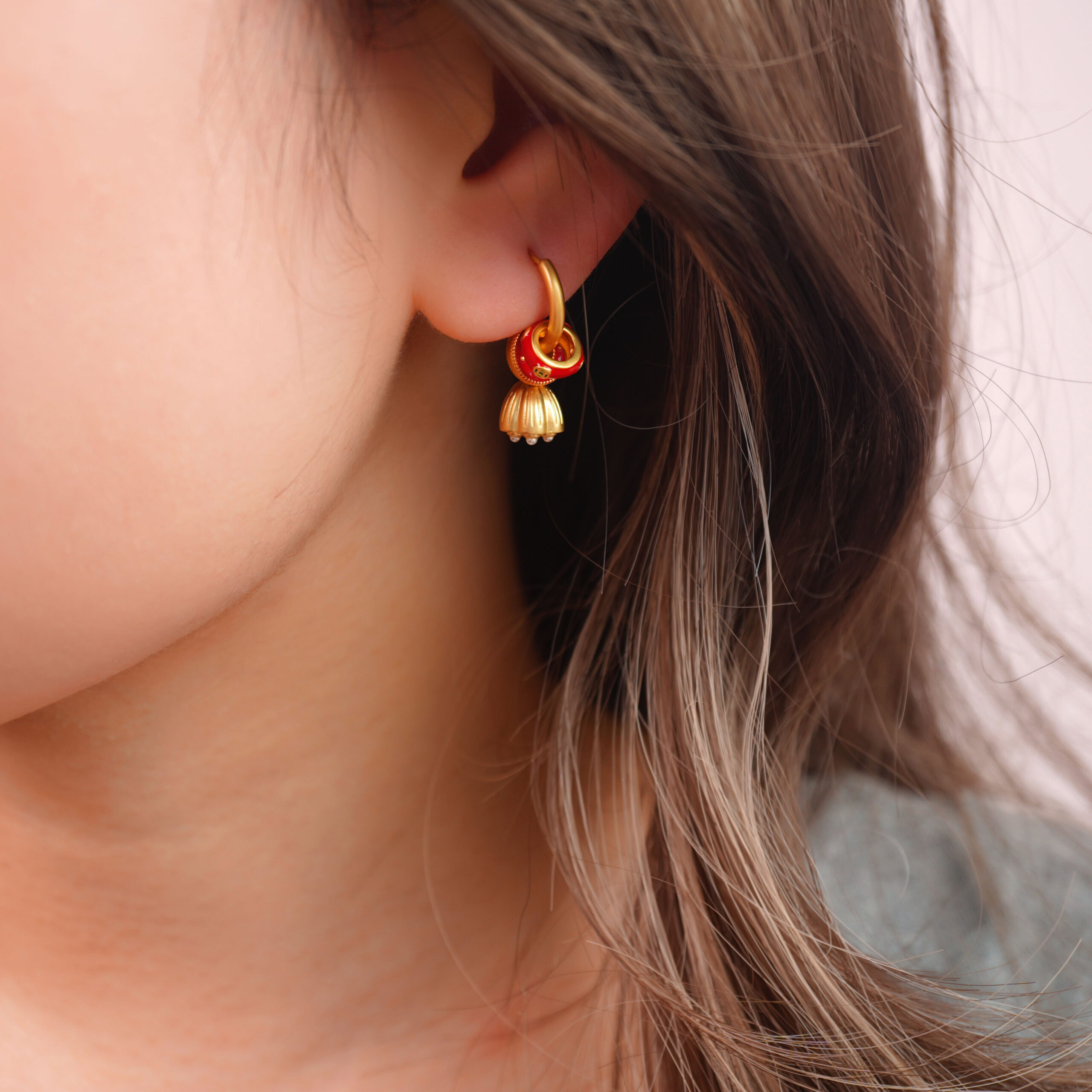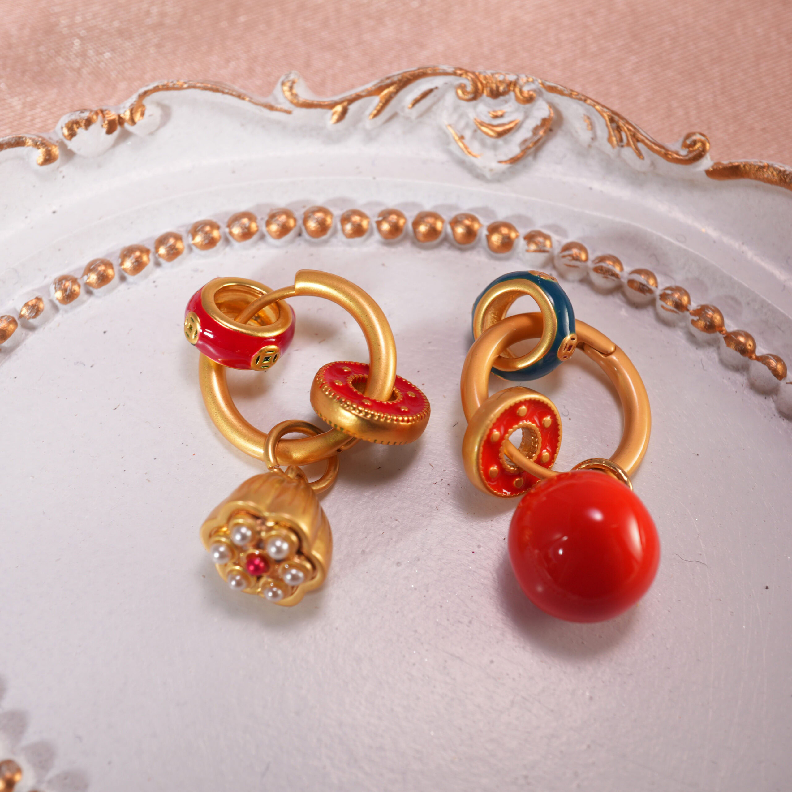 Vibrant brass hoop earrings accented with red and floral charms — lightweight, playful, and perfect for adding a bright pop of color to any everyday look while giving your style a cheerful, eye-catching touch.