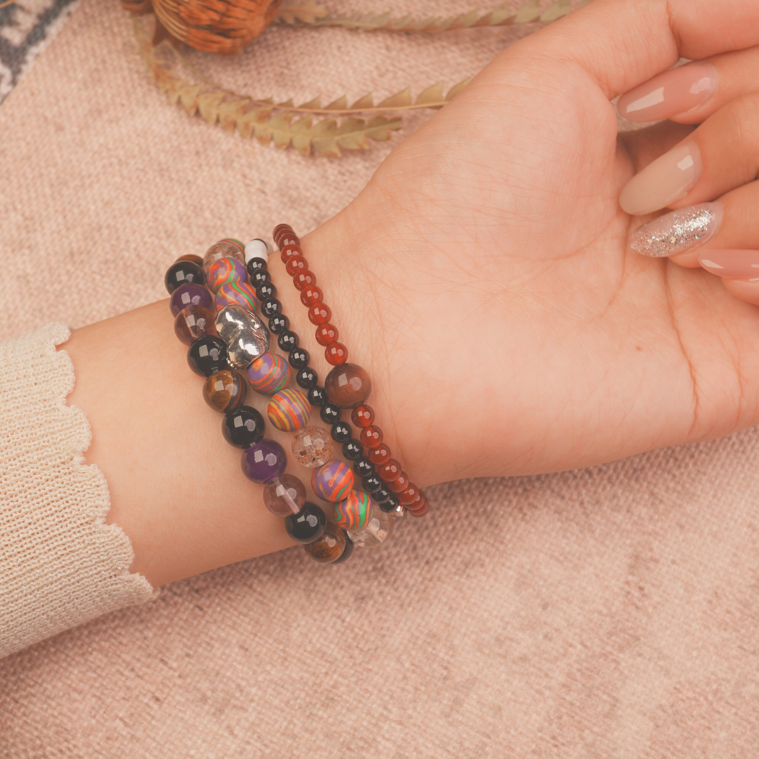 - Stack of 4 handmade healing stone bracelets