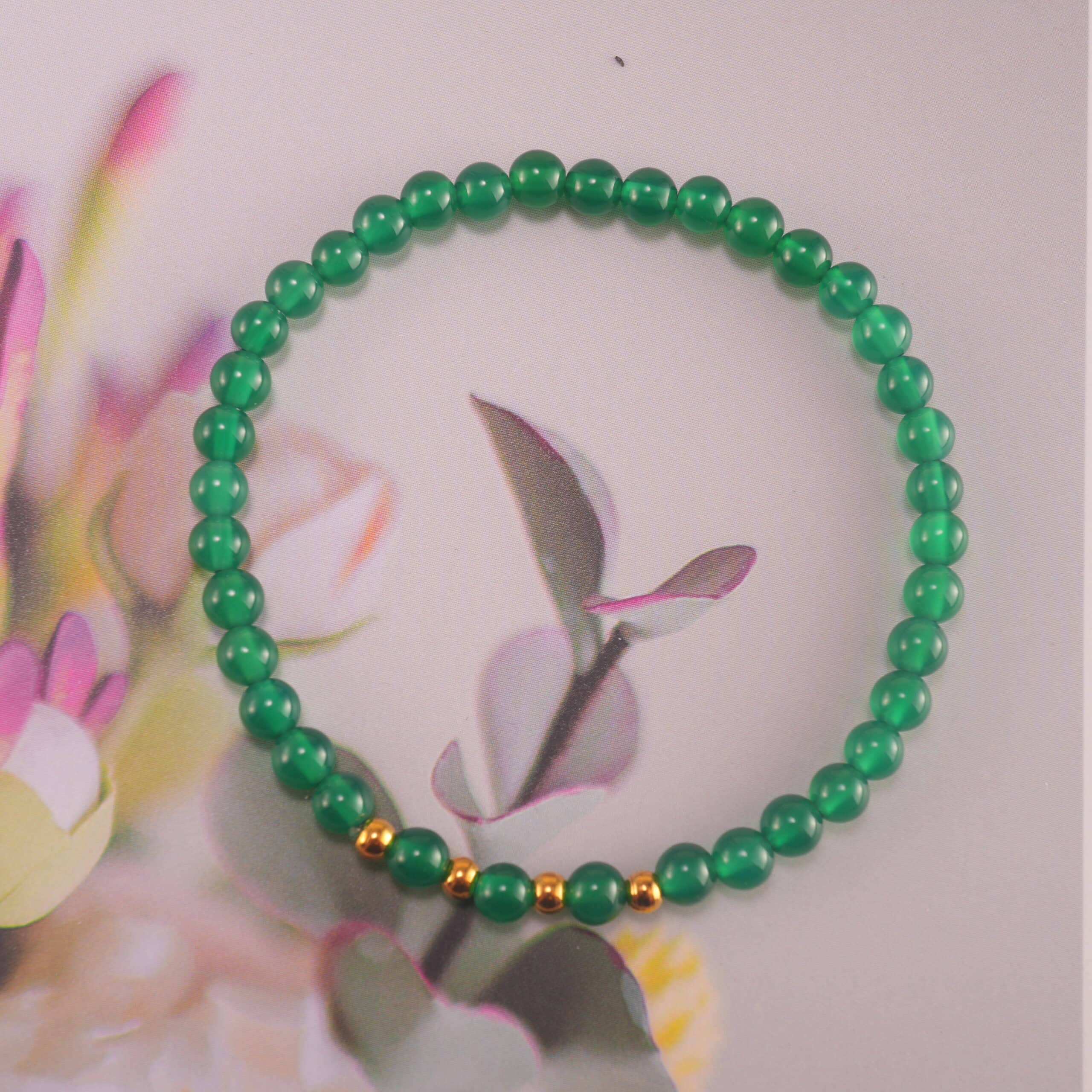 - Elegant bracelet stack featuring garnet and green chalcedony