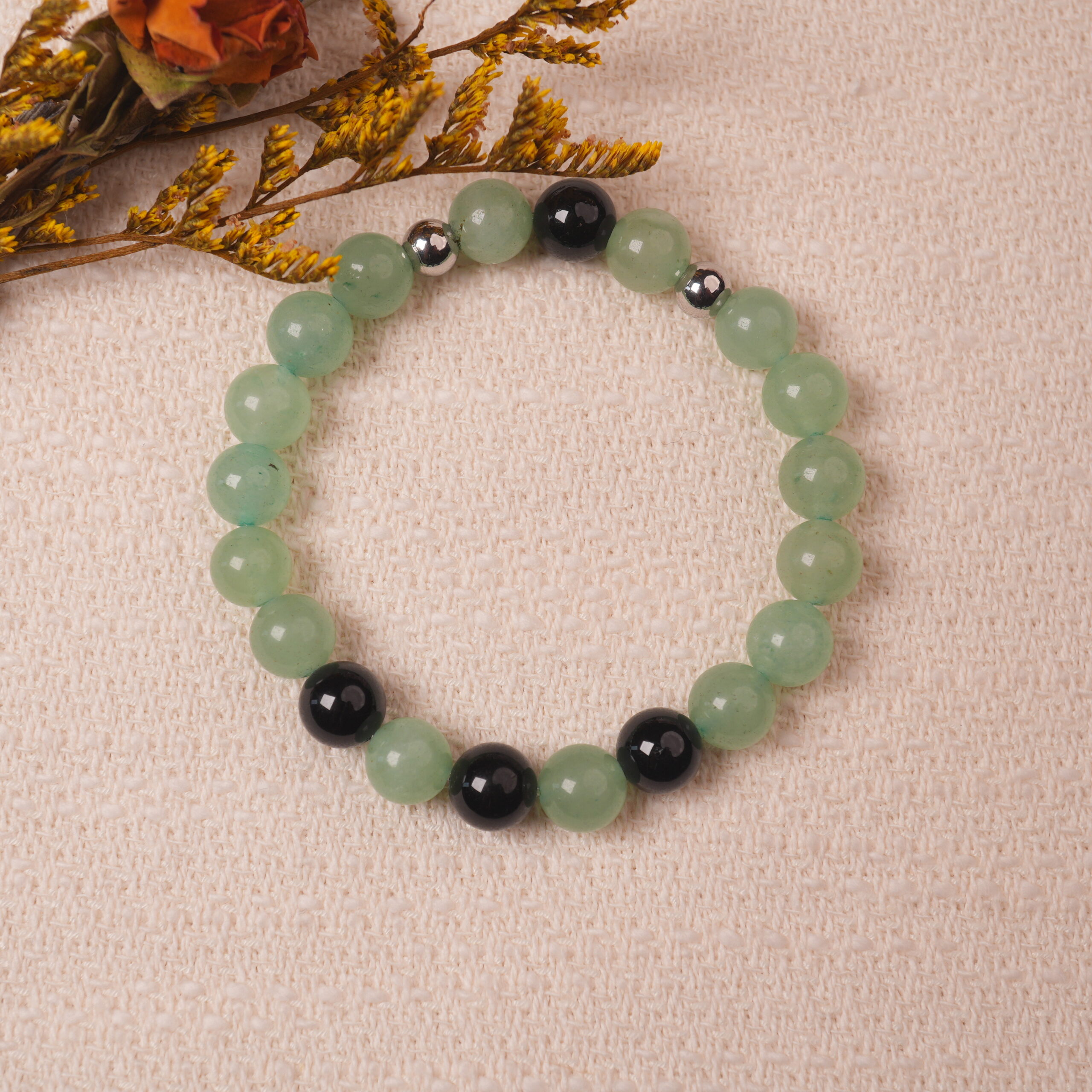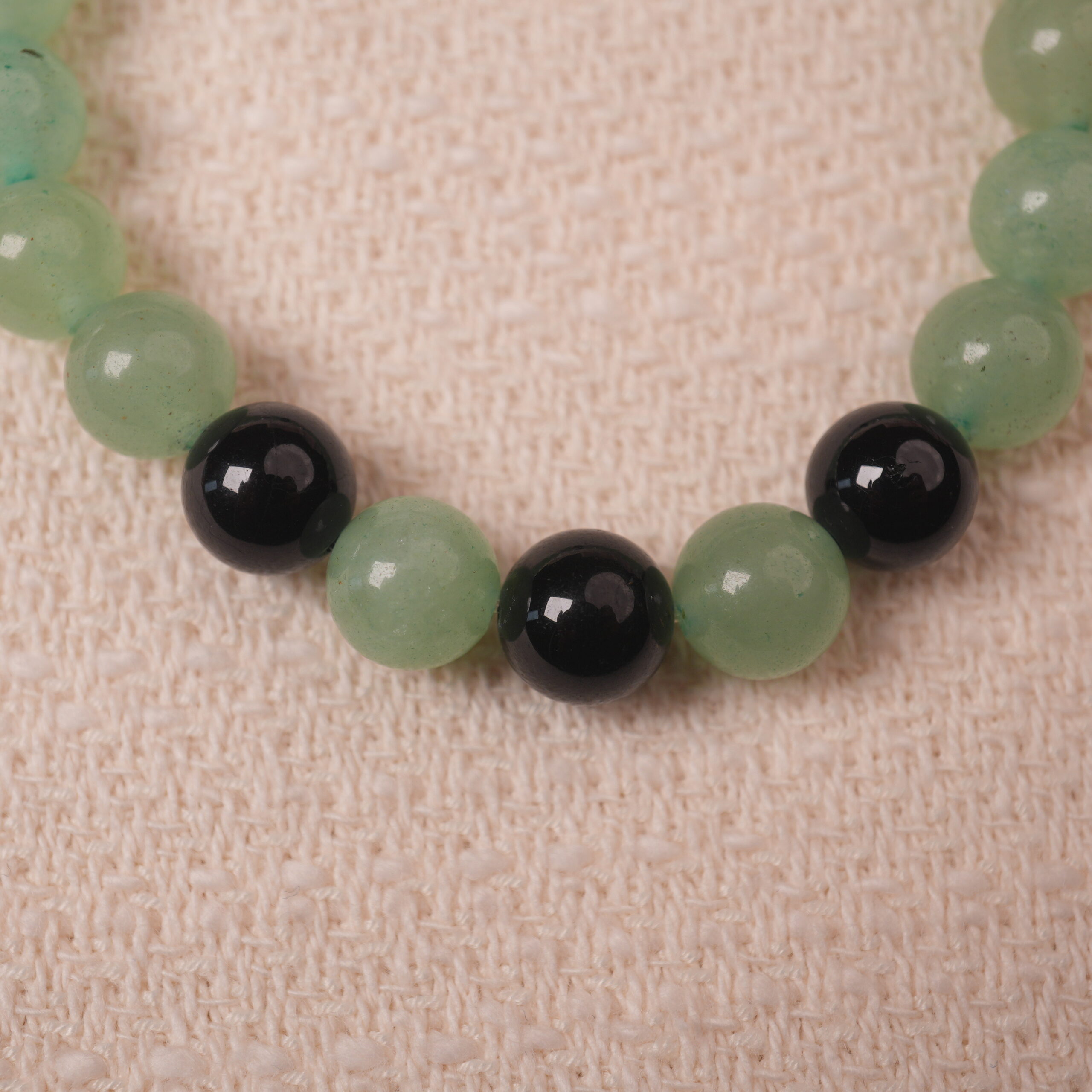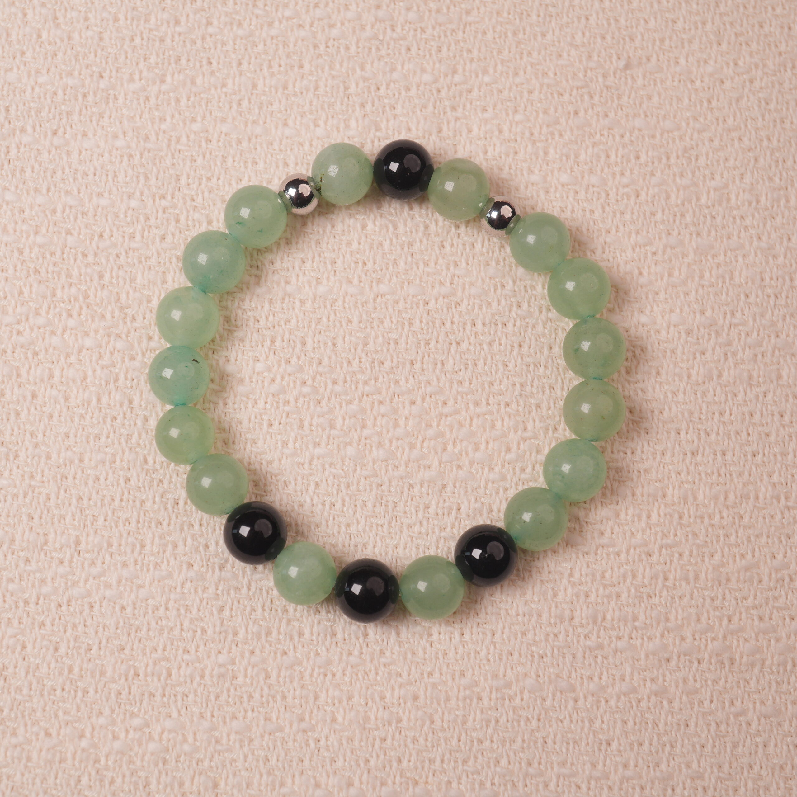 Green Aventurine & Black Obsidian Bead Bracelet