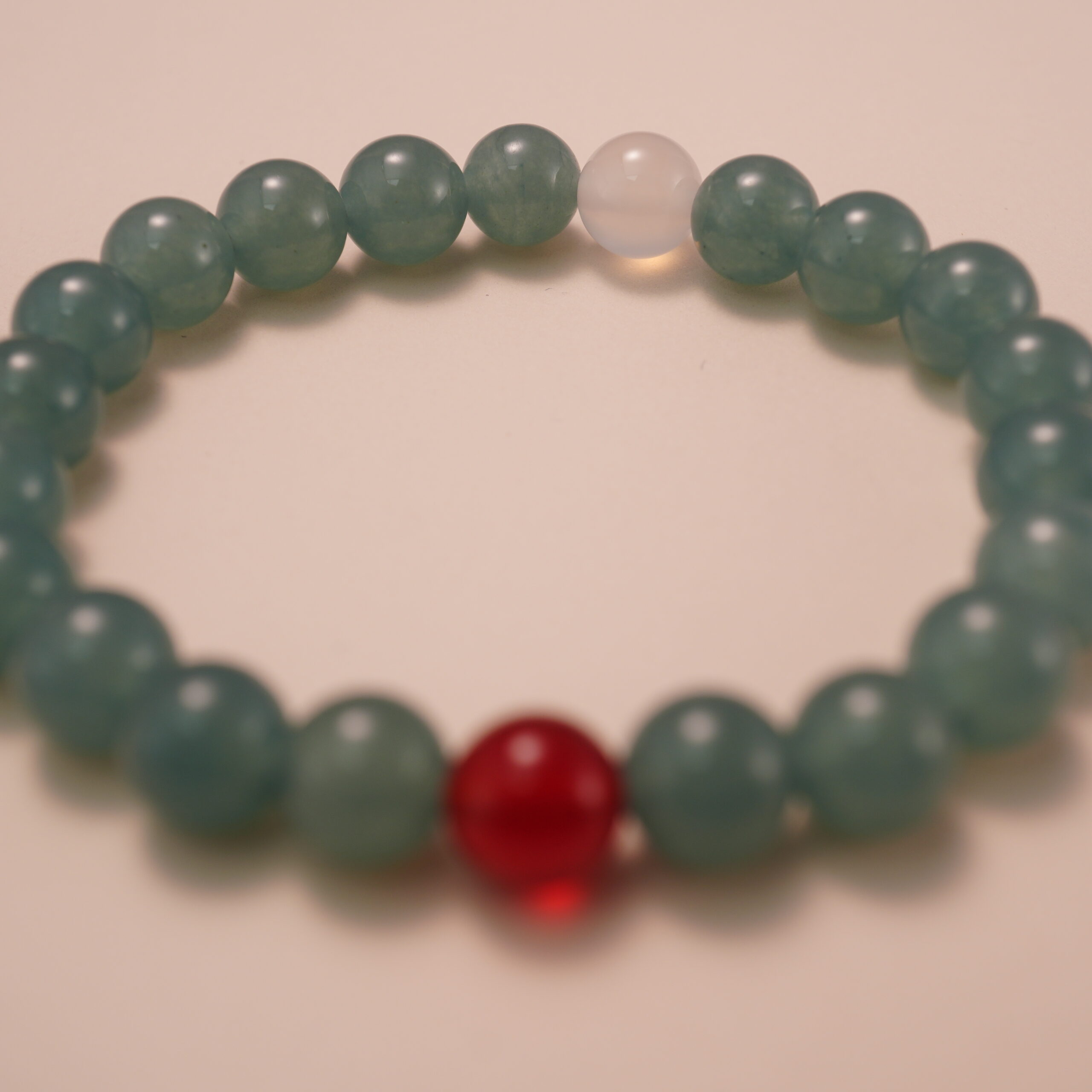 Lucky Glow – Green Chalcedony & Red Agate Beaded Bracelet