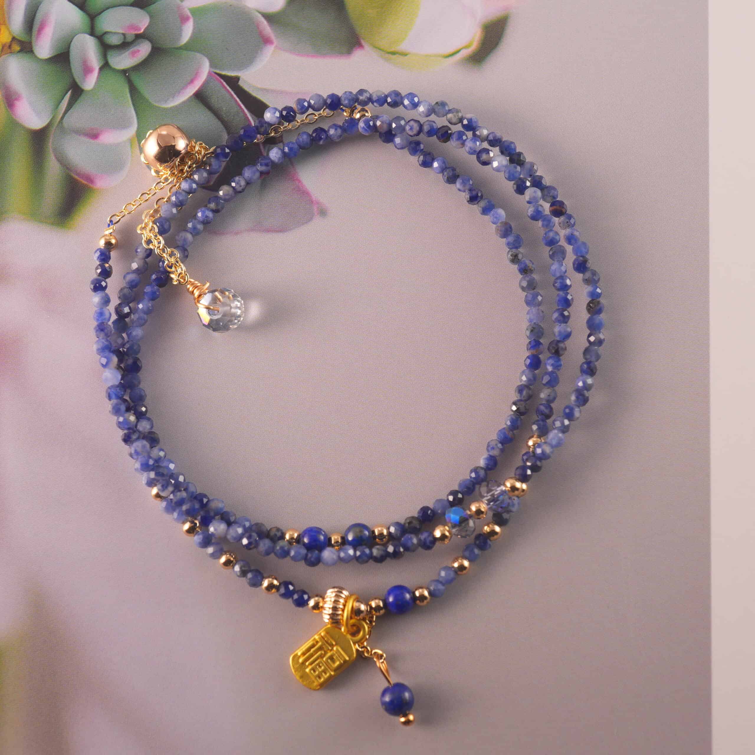 A delicate bracelet made with rich lapis lazuli beads—convertible, minimal, and full of creative energy. Designed to inspire self-expression, intuition, and artistic flow.