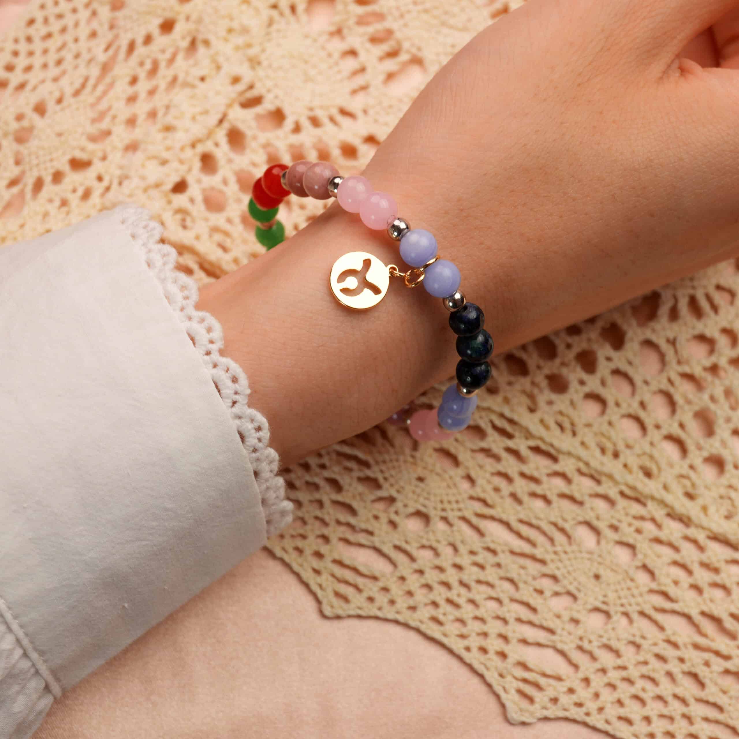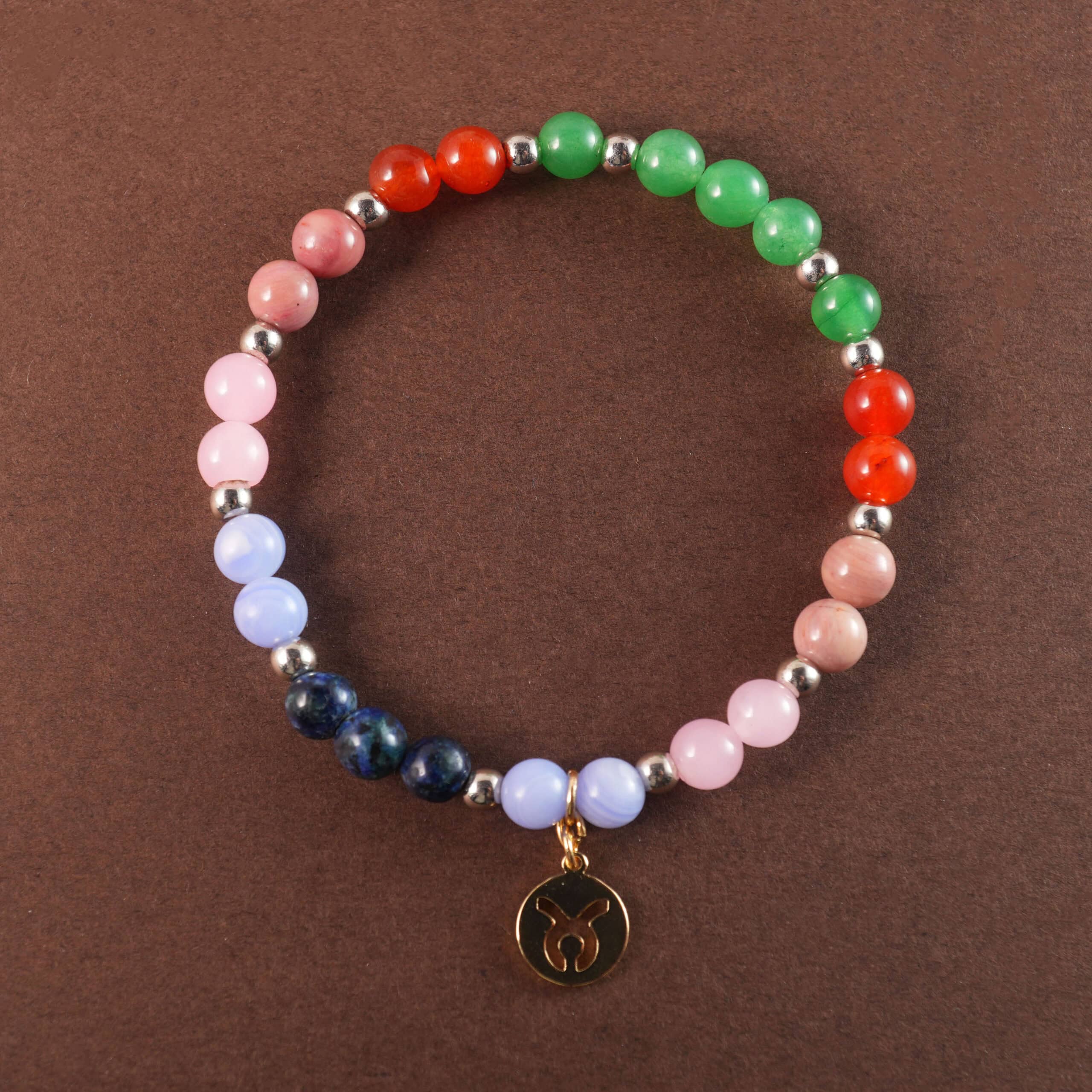 Taurus Zodiac Bracelet with Blue Banded Agate, Rose Quartz, Red Agate & Green Aventurine