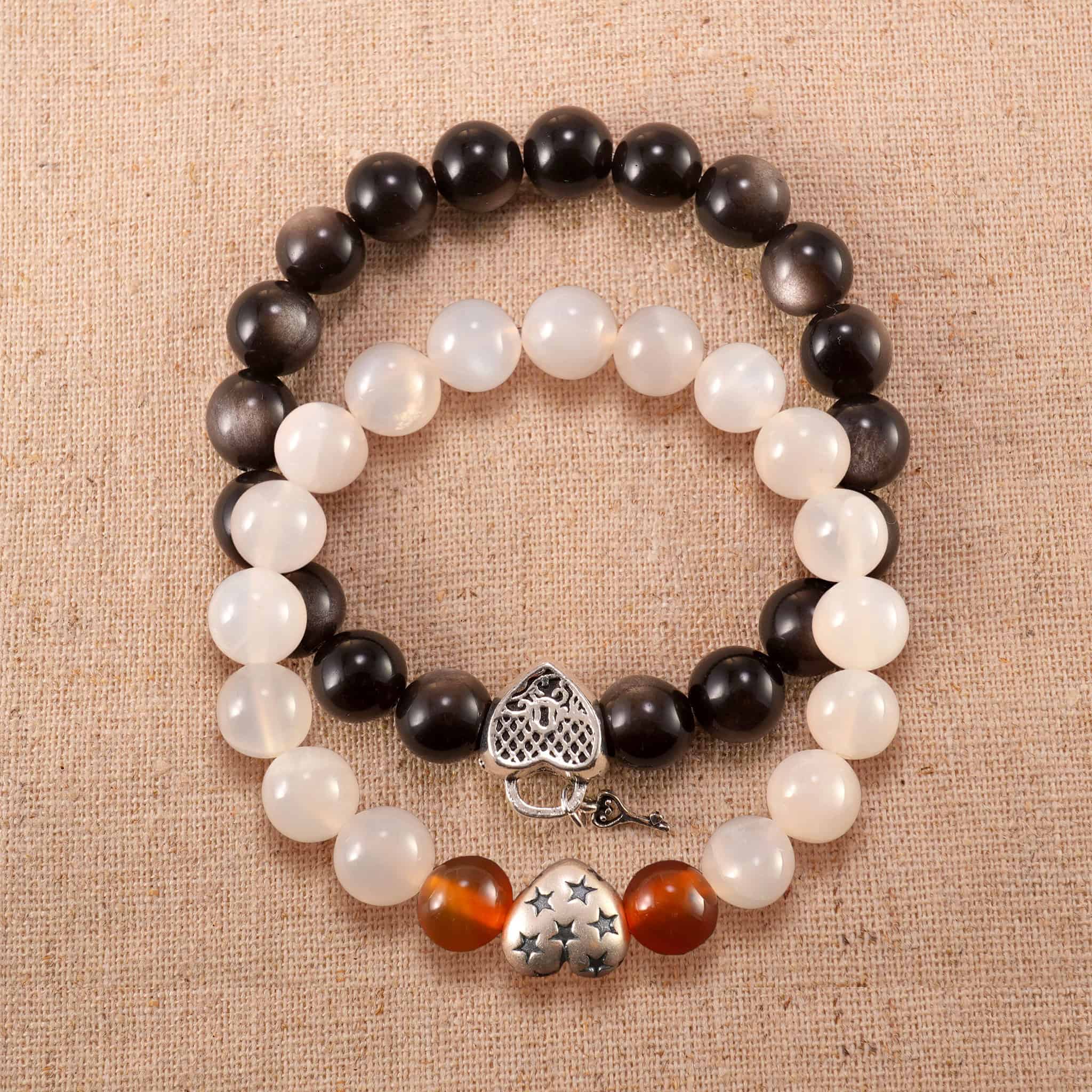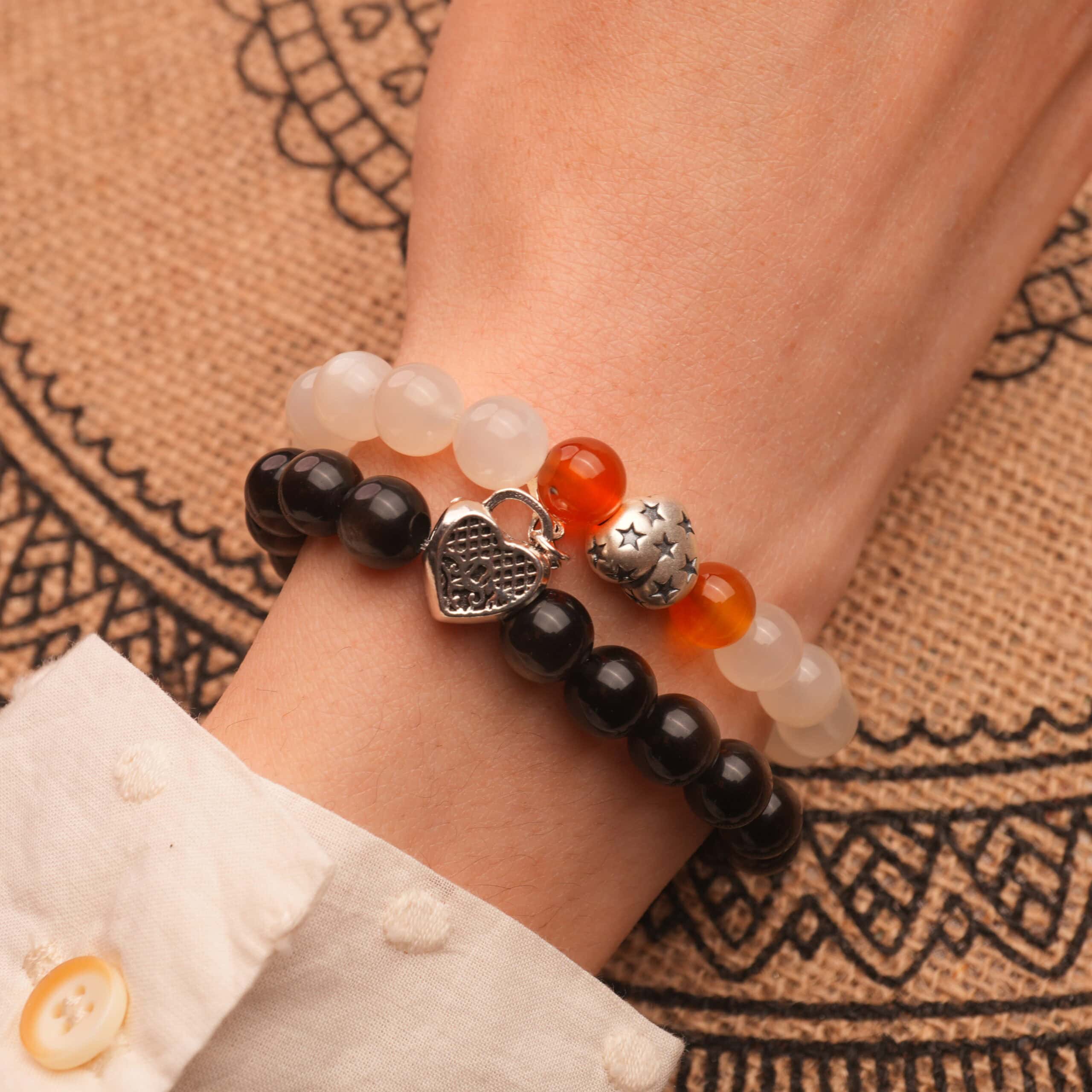 Stacked Bracelets featuring Silver Obsidian, Chalcedony, Agate, and S925 silver, blending grounding, clarity, and protection. Handcrafted in sleek monochrome tones to support focus, balance, and inner strength. A bold crystal stack perfect for daily wear, energy work, or thoughtful gifting.