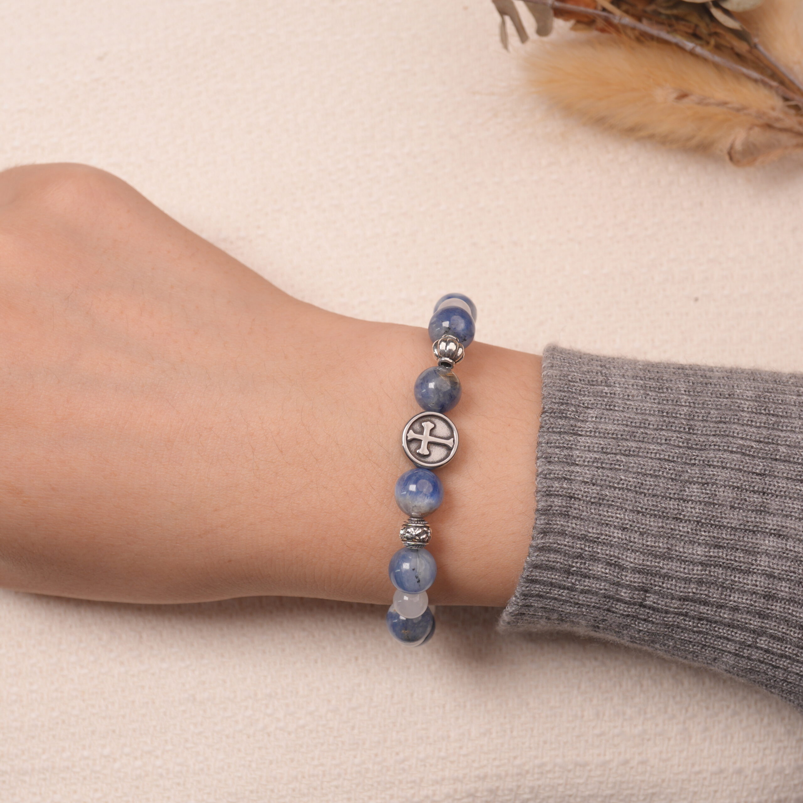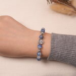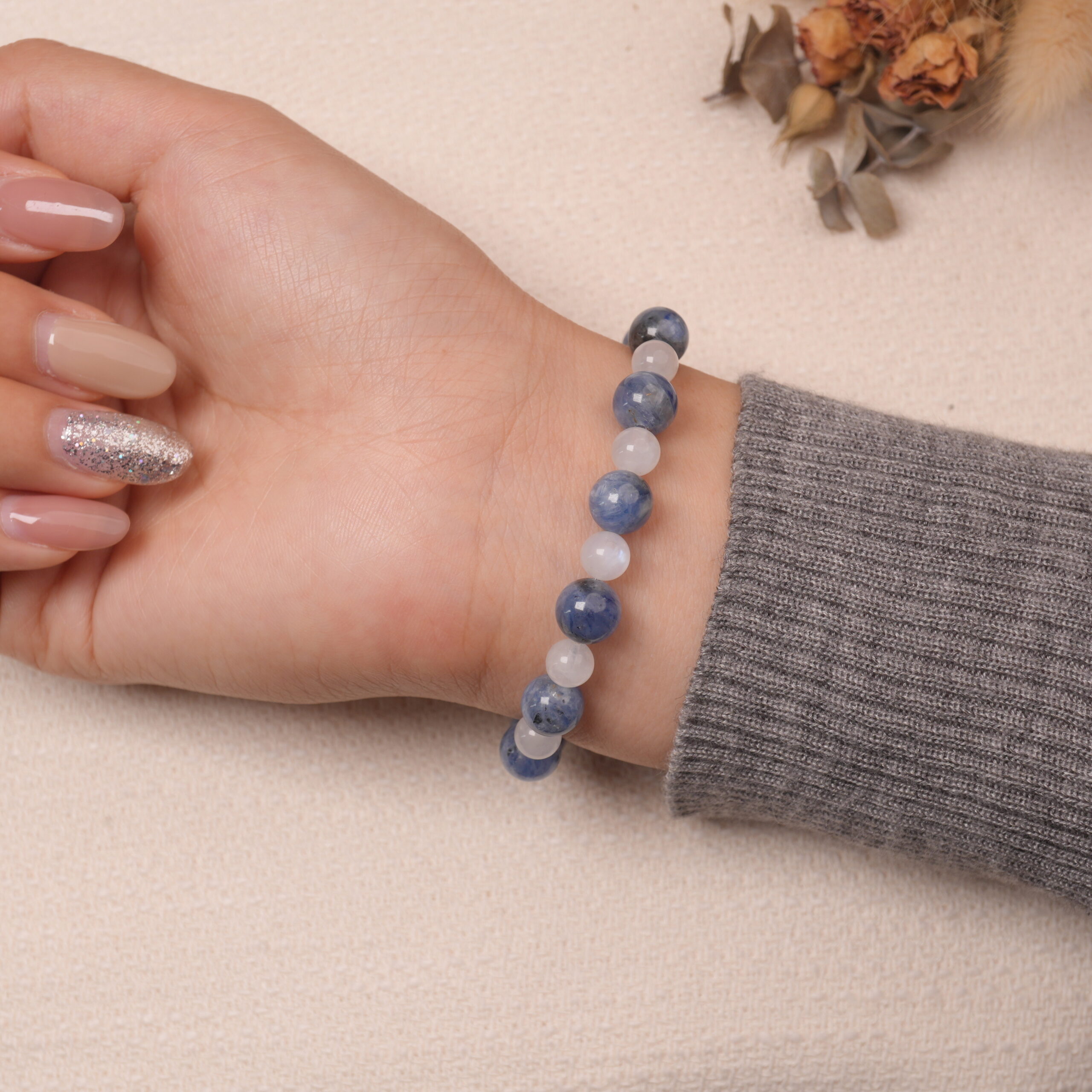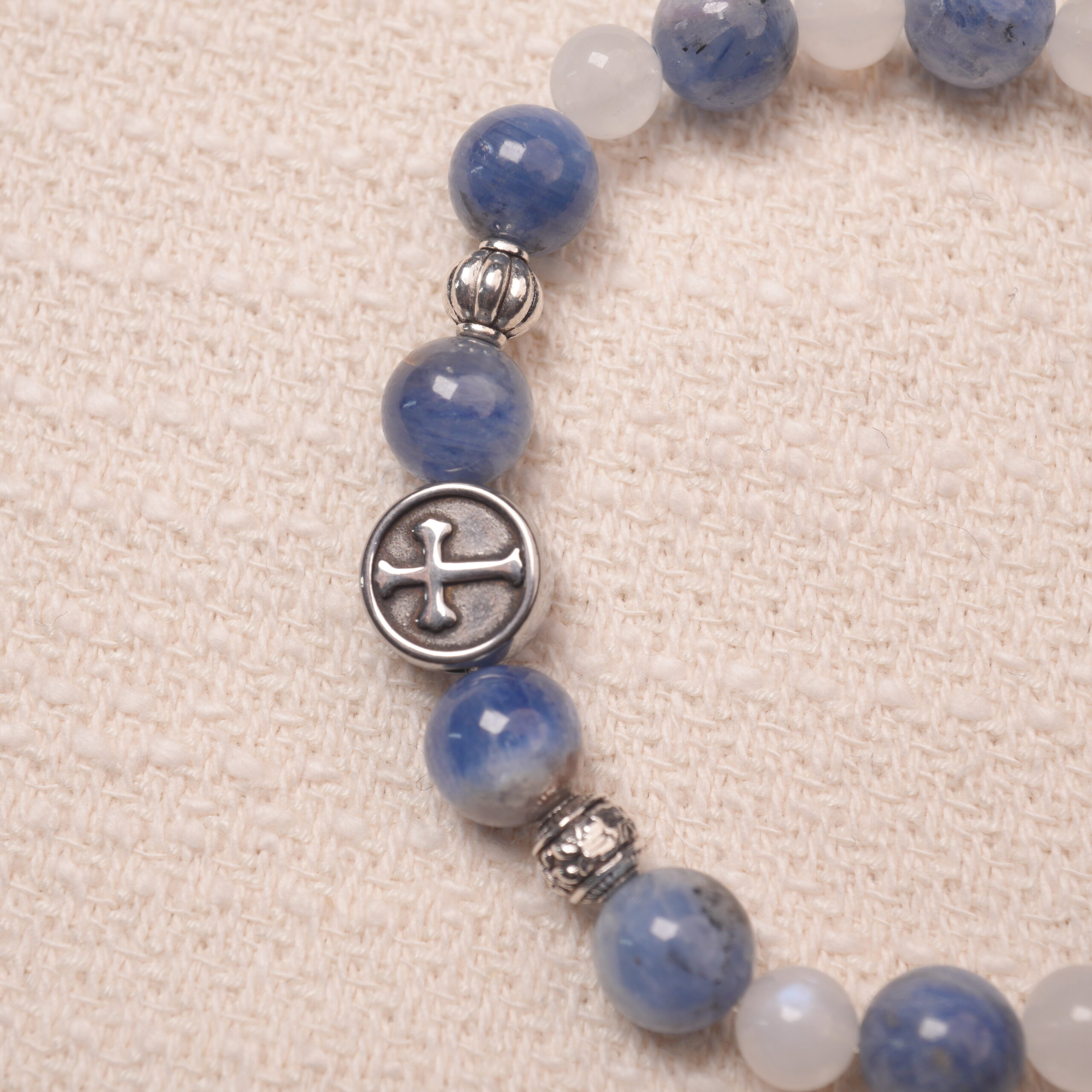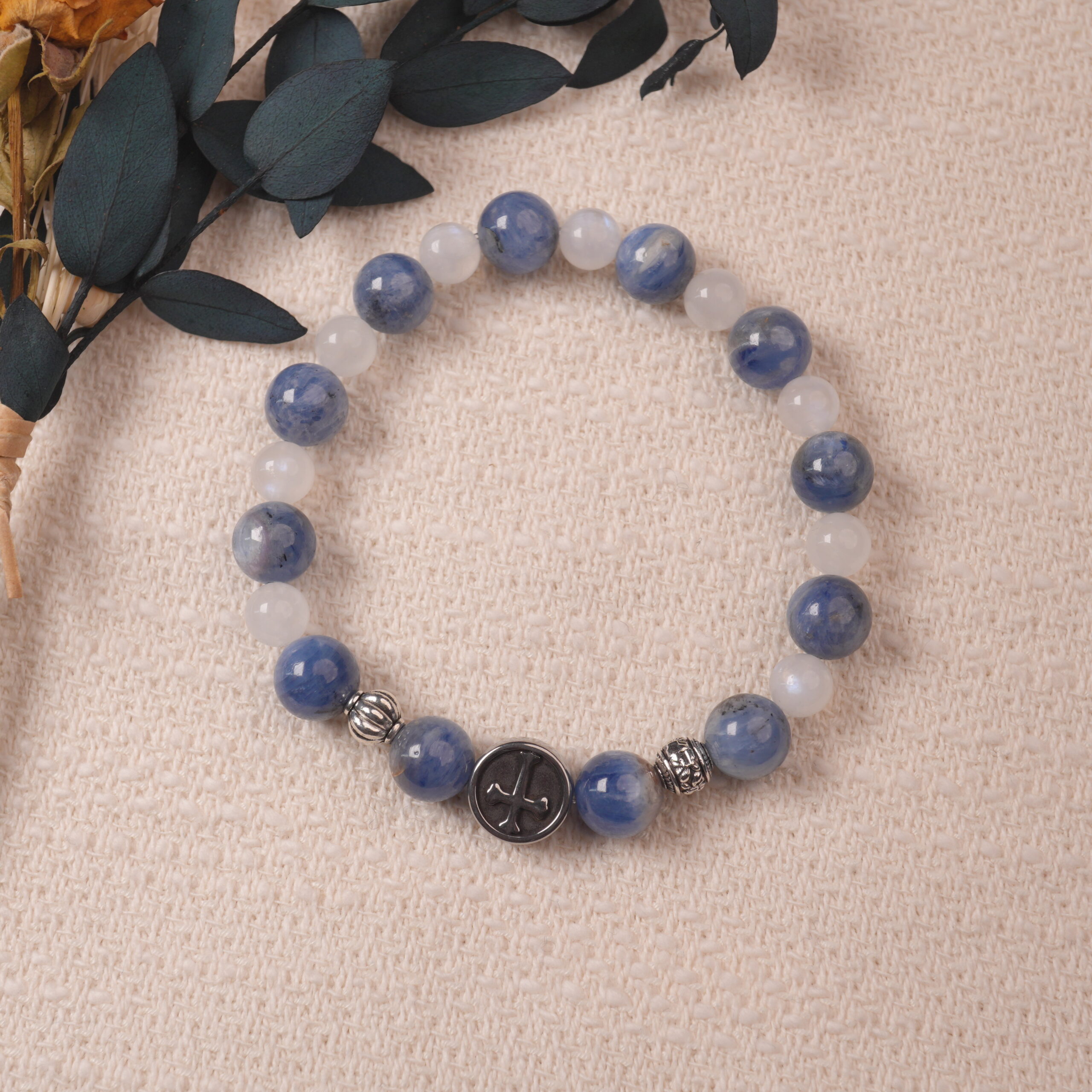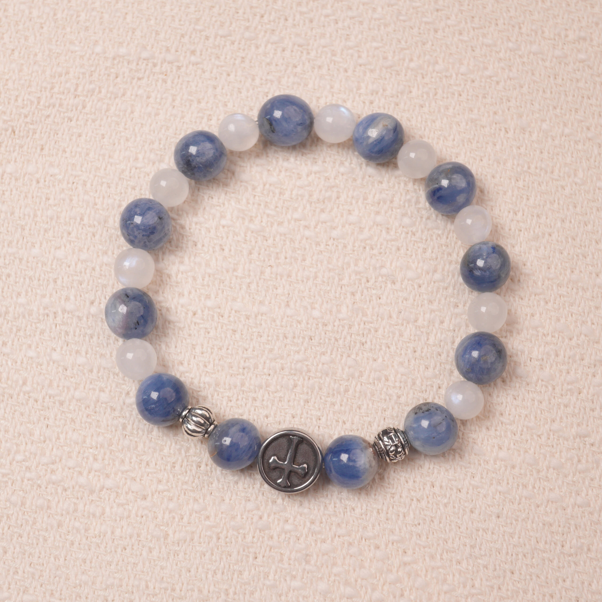 Embrace calm and clarity with this moonstone and blue kyanite bracelet, adorned with shimmering silver beads. A soothing gemstone bracelet that supports emotional balance, intuition, and inner peace.
