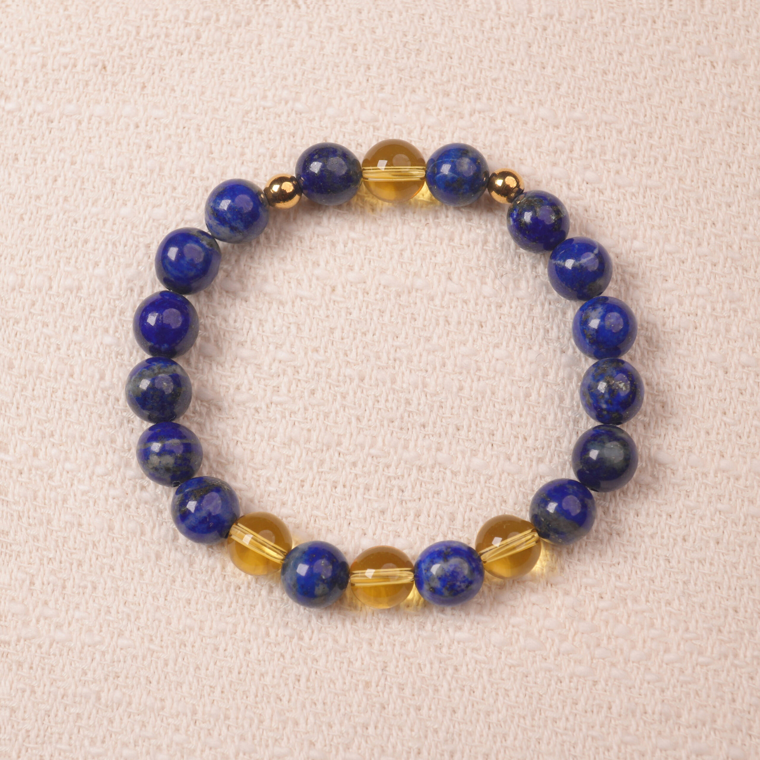 A vibrant lapis lazuli and yellow citrine beaded bracelet that blends deep blue clarity with sunny confidence, offering balanced energy, everyday elegance, and a bold pop of color for your crystal jewelry collection.