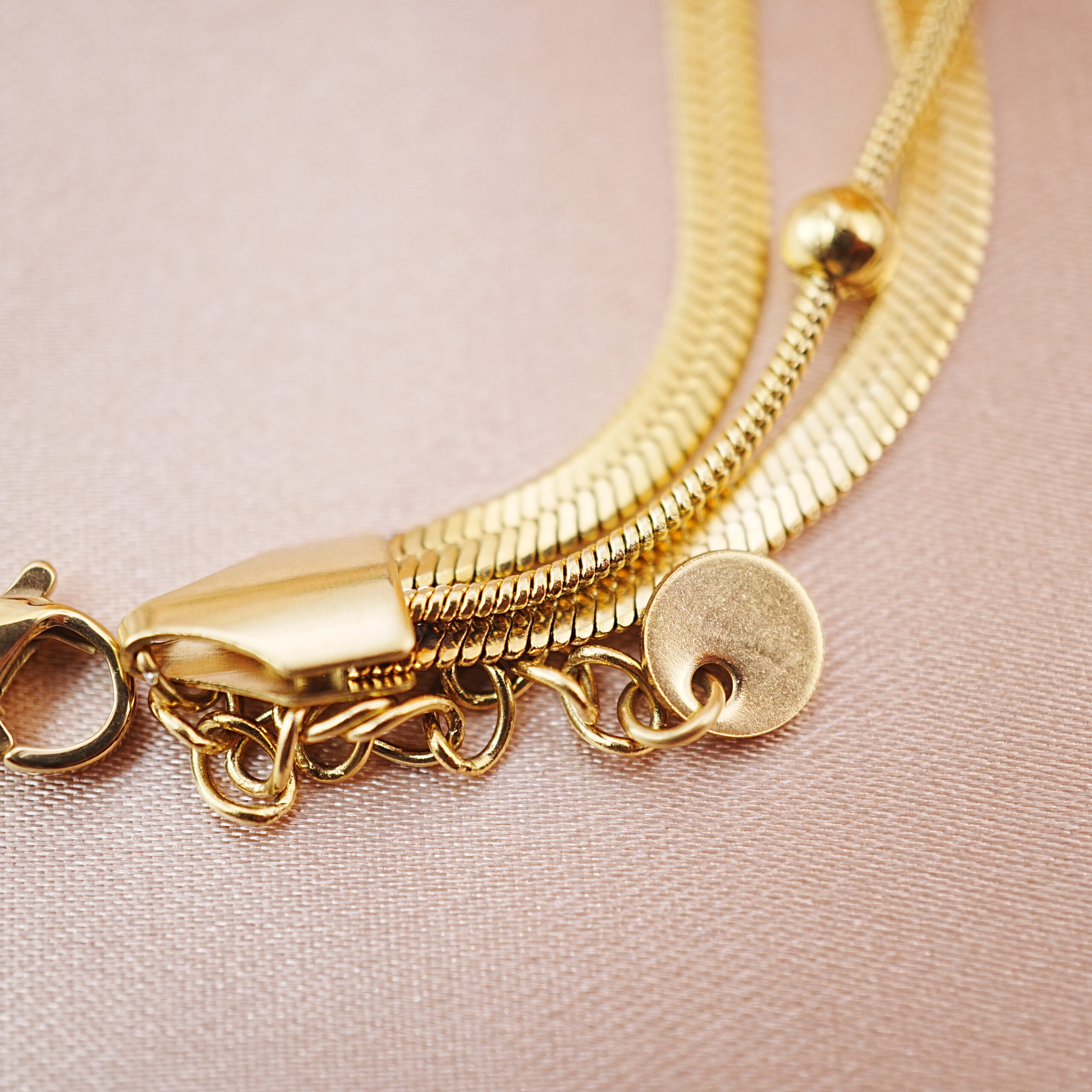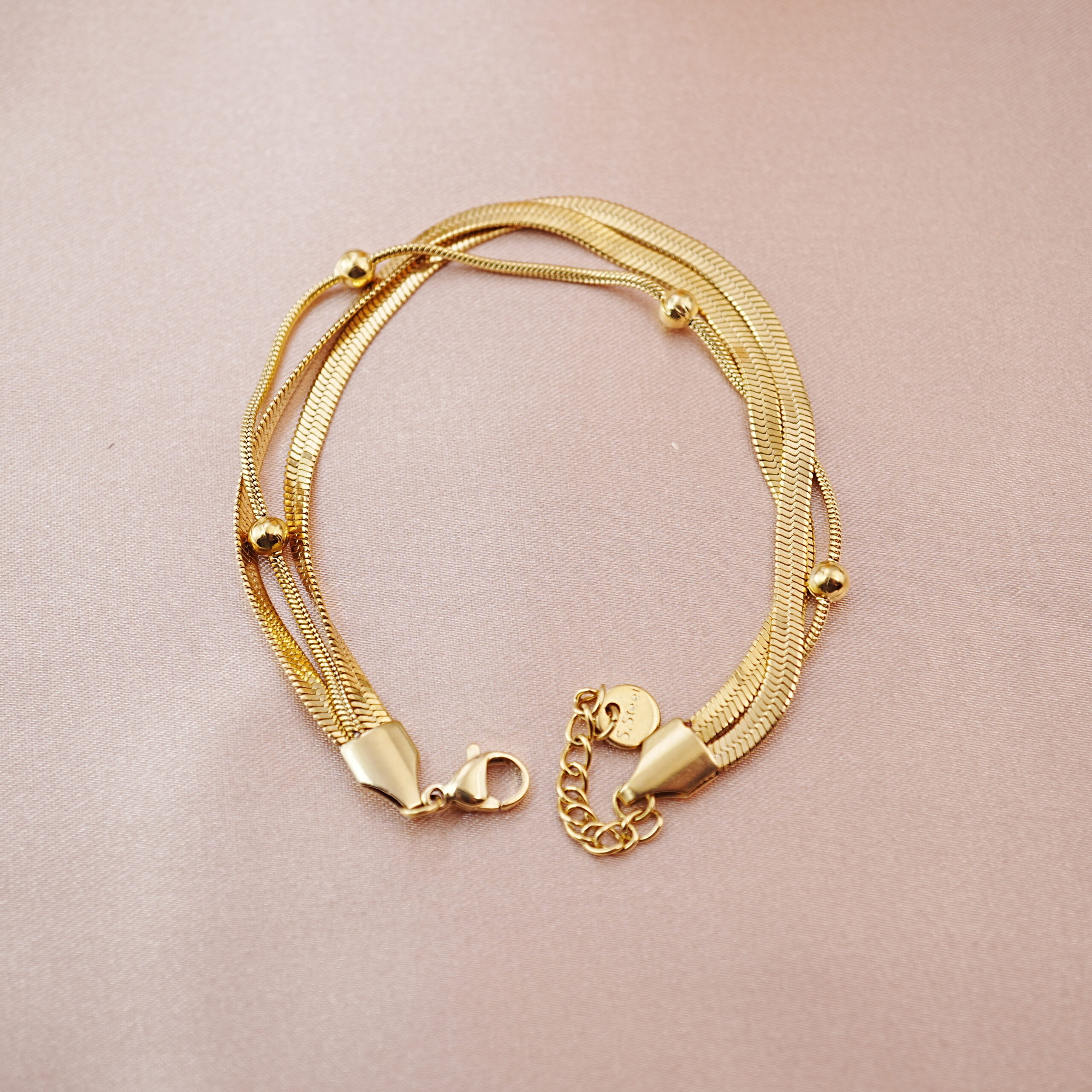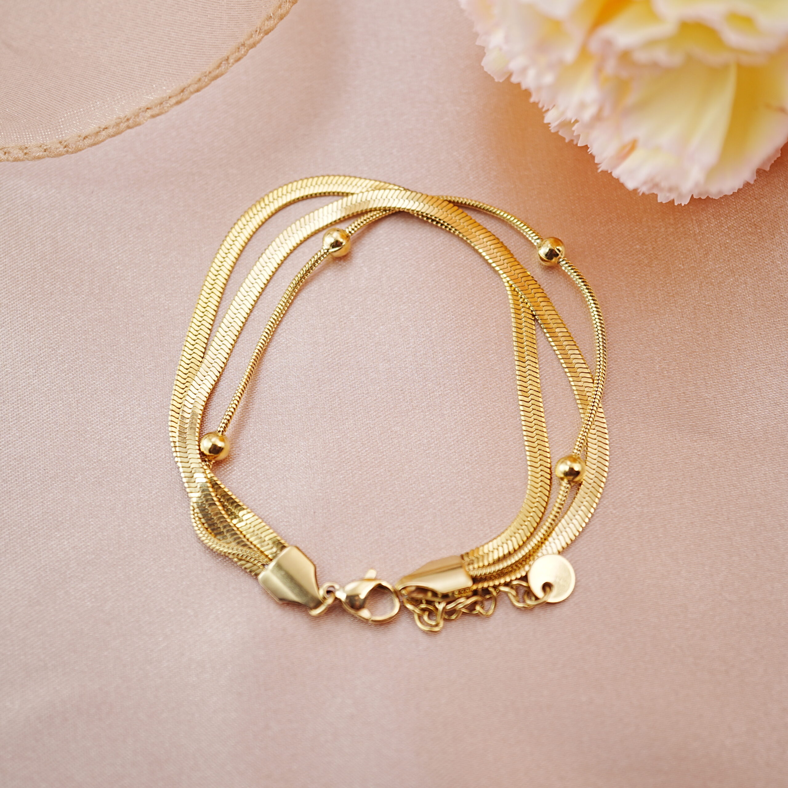 A chic multi-strand luxury bracelet crafted with polished metal links, offering a refined, modern elegance perfect for everyday style or special occasions, making it an effortless statement for women who love timeless sophistication.