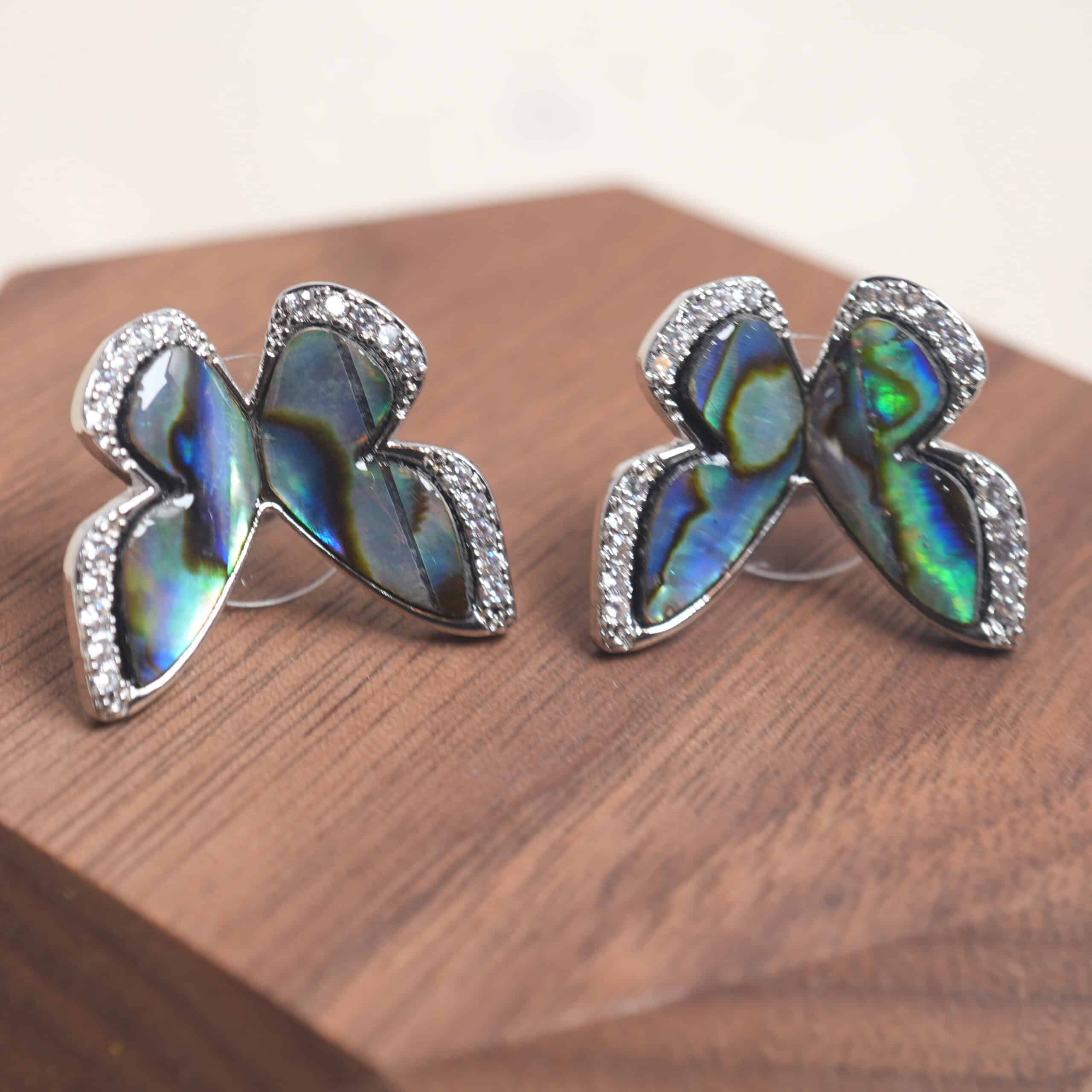 - Handcrafted butterfly stud earrings featuring natural moonstone