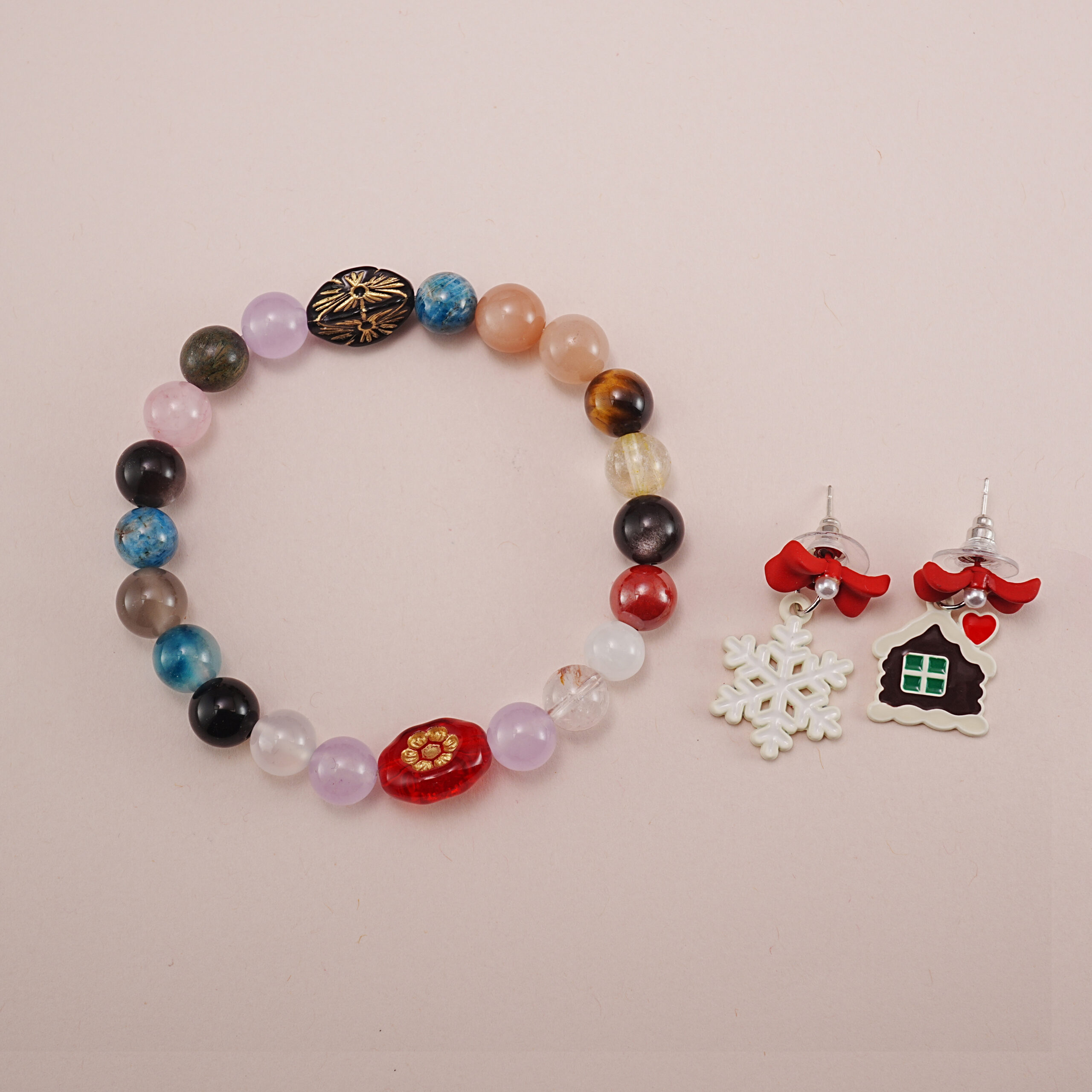Celebrate the holiday season with our Multicolor Gemstone Bracelet & Christmas Tree Earrings Set. This joyful and festive jewelry set is perfect for spreading cheer and creativity during the holidays.