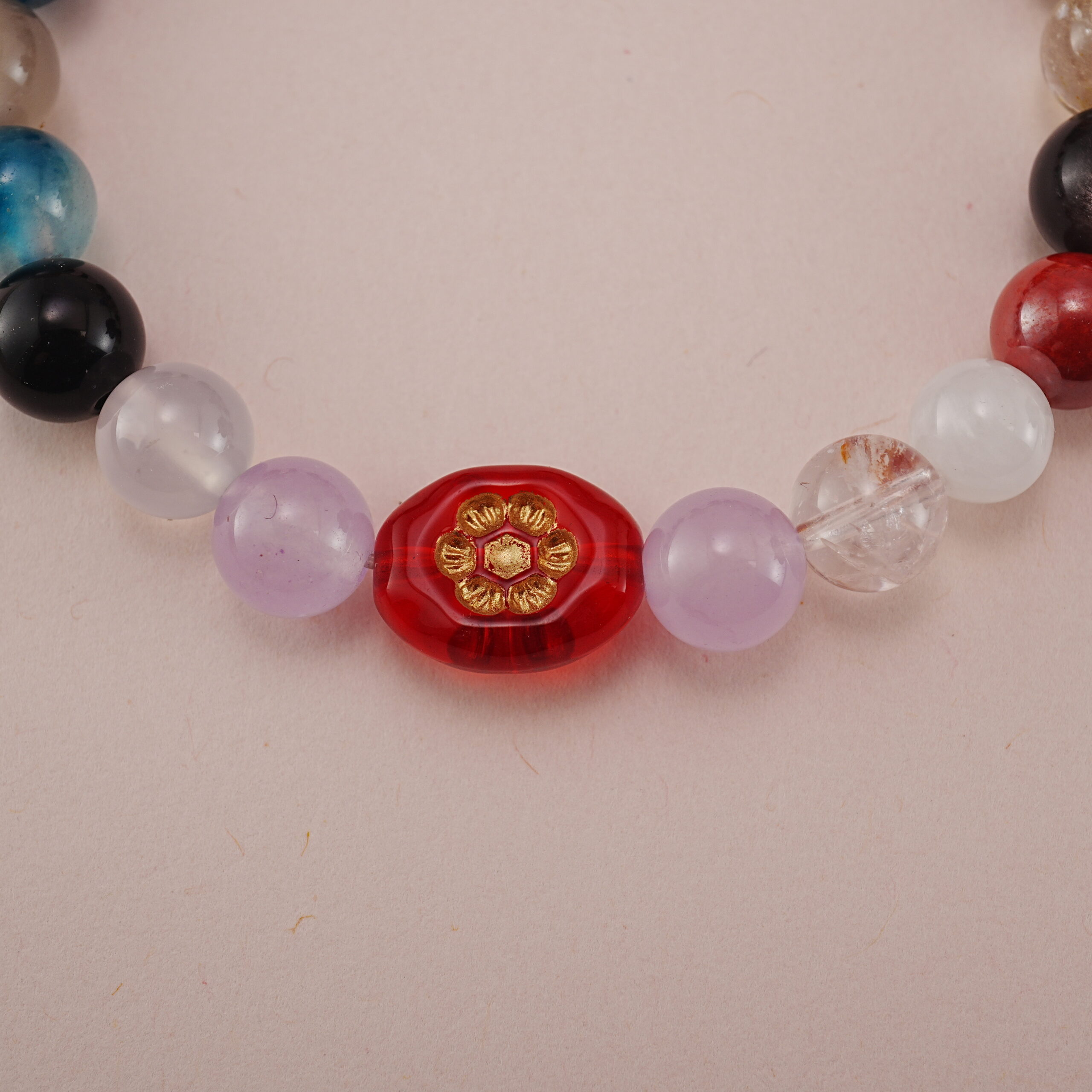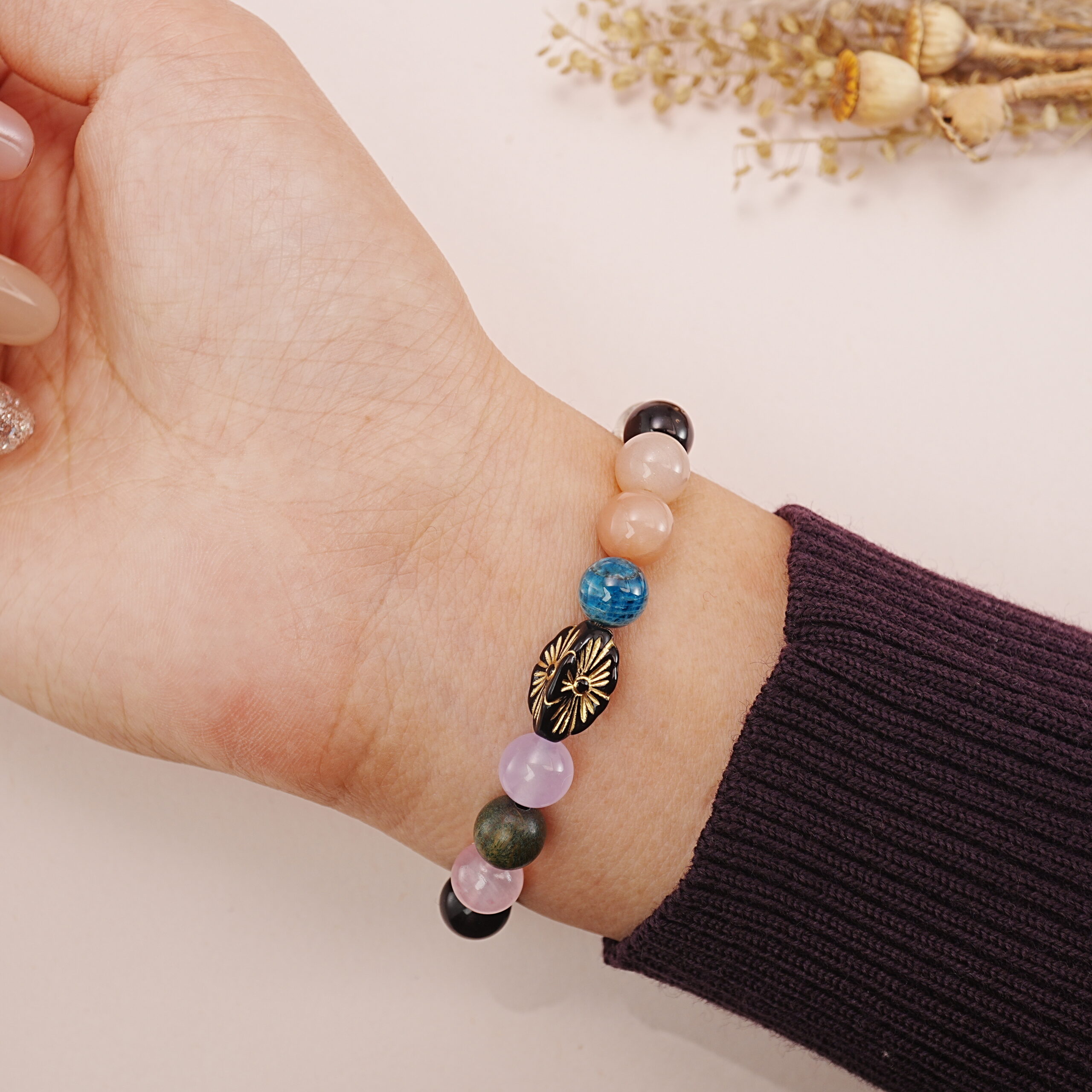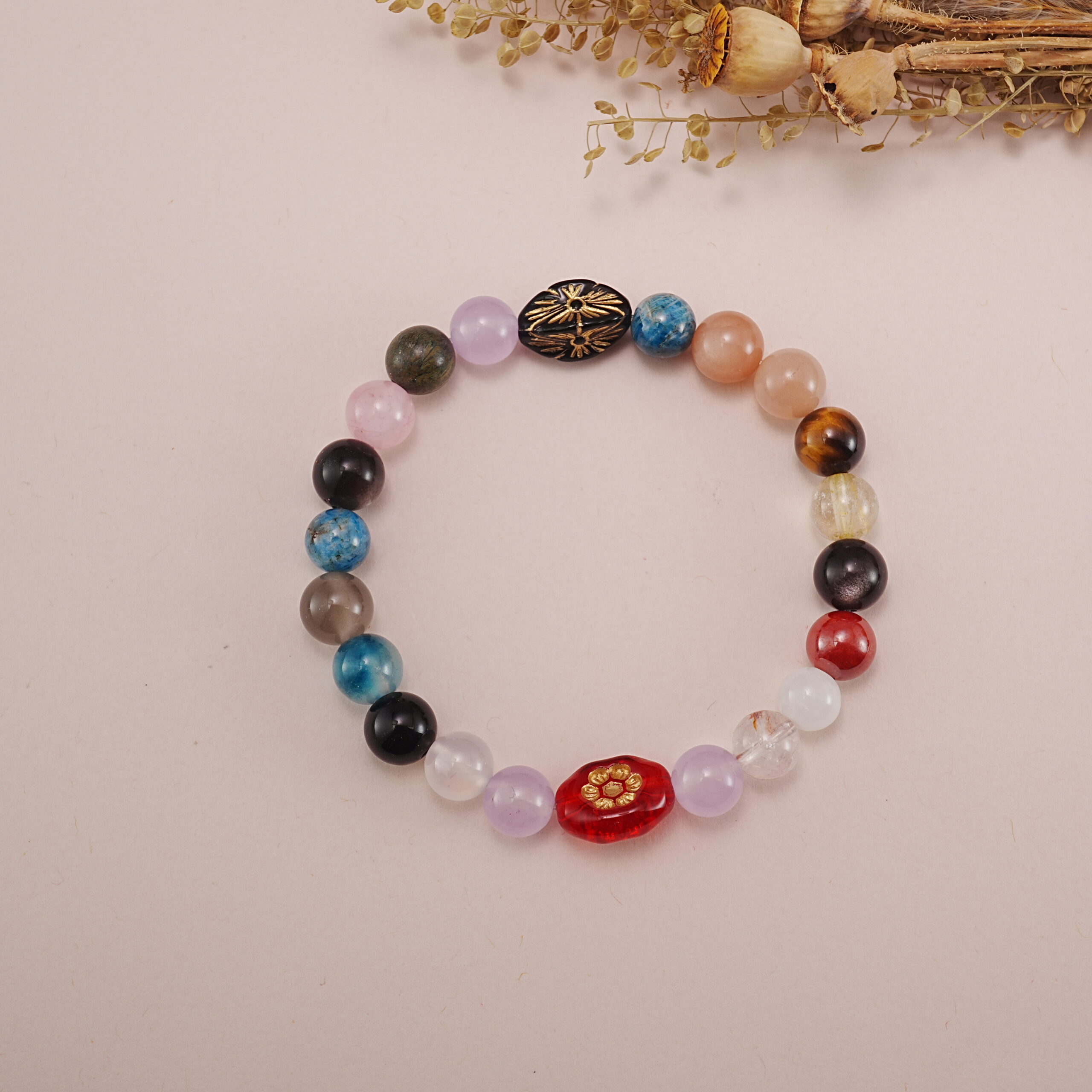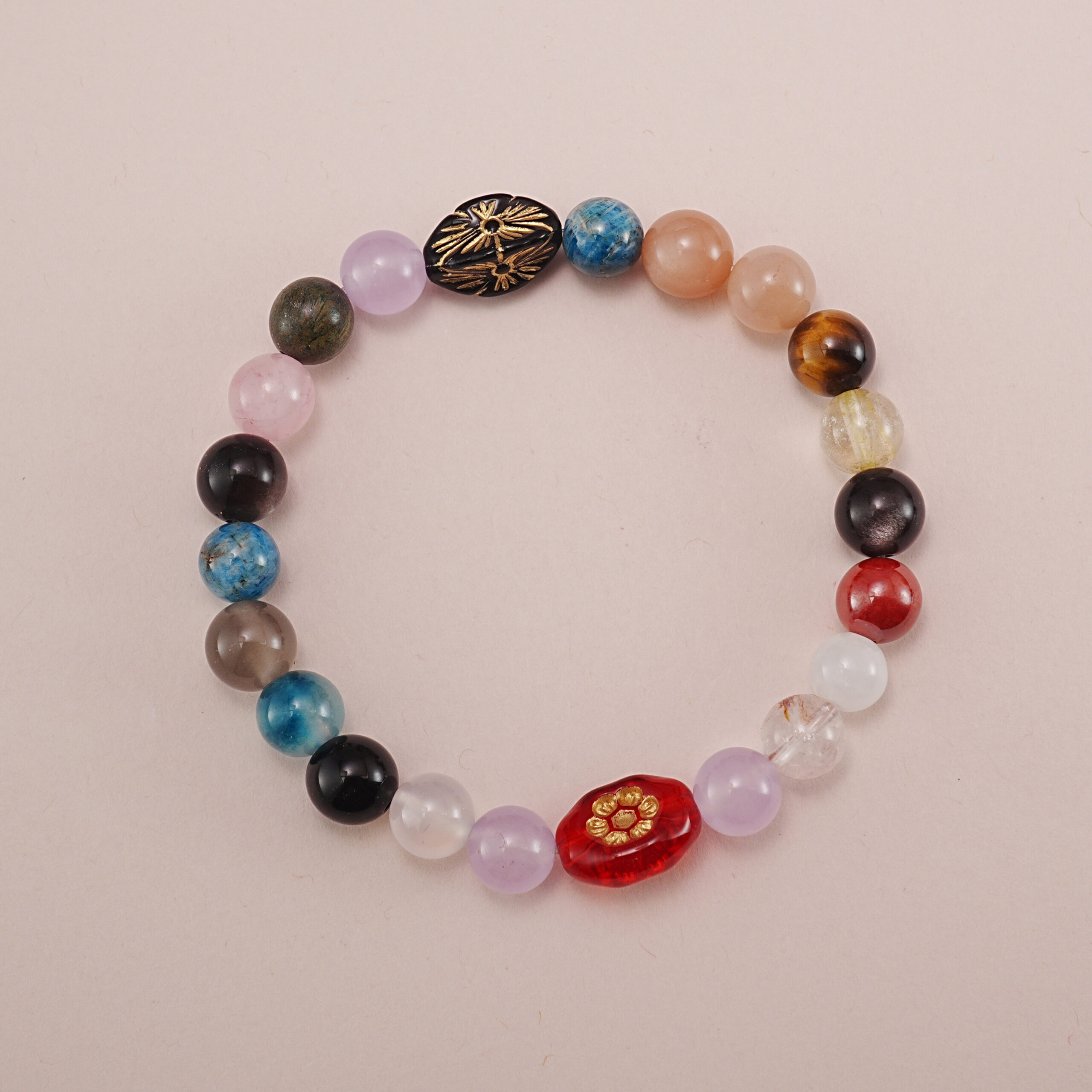 A radiant multicolor gemstone bracelet featuring rose quartz, amethyst, and tiger eye—blending gentle energy, natural beauty, and mindful intention into one harmonious beaded design.