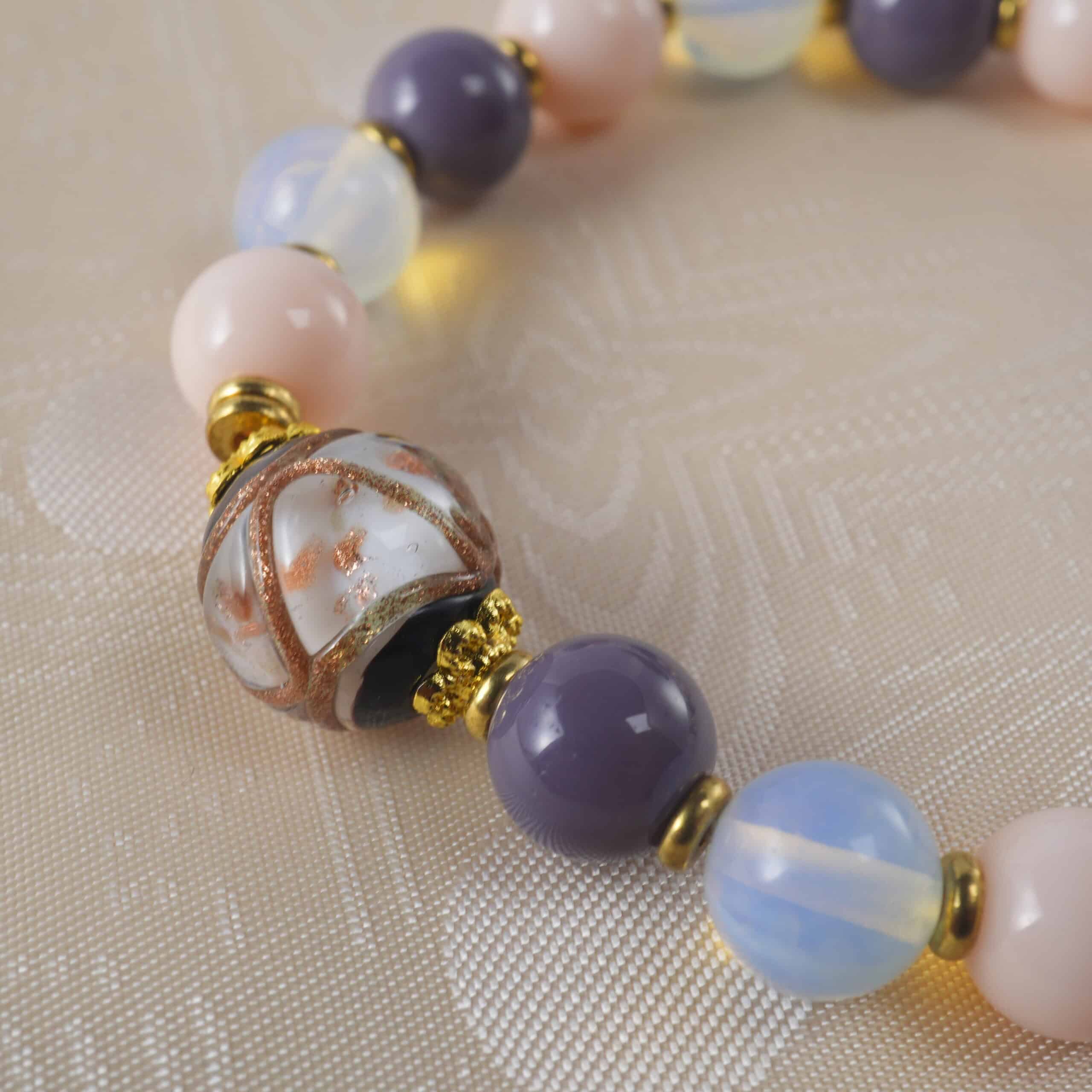 Opal Pink Chalcedony Bracelet featuring soft pink chalcedony paired with glowing opal beads, symbolizing love, emotional balance, and intuition. Delicately handcrafted for a feminine and calming energy. A graceful accessory perfect for daily wear, gifting, or spiritual connection.