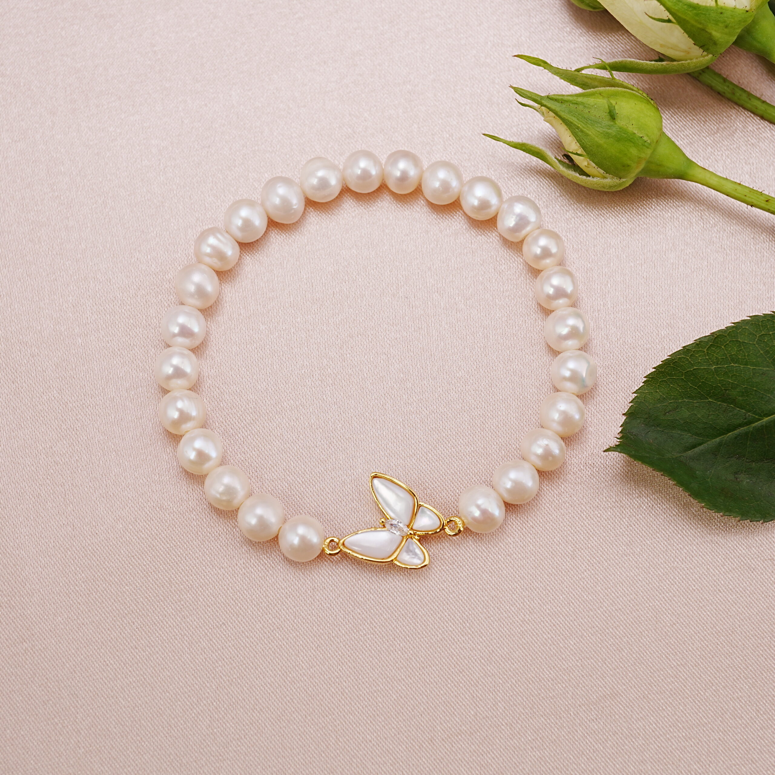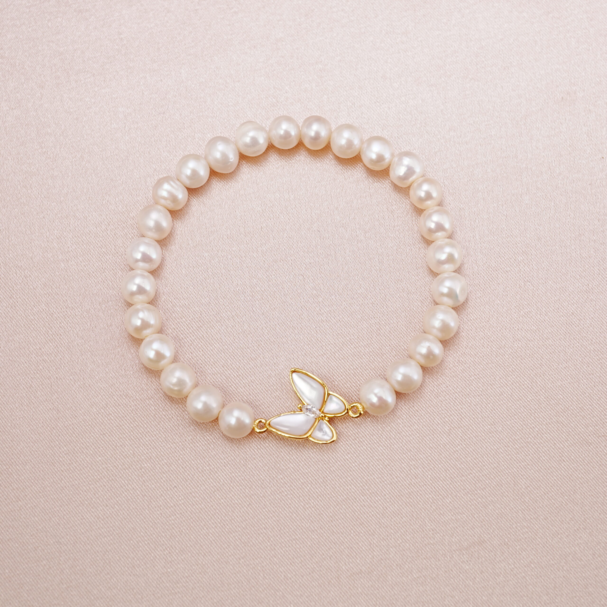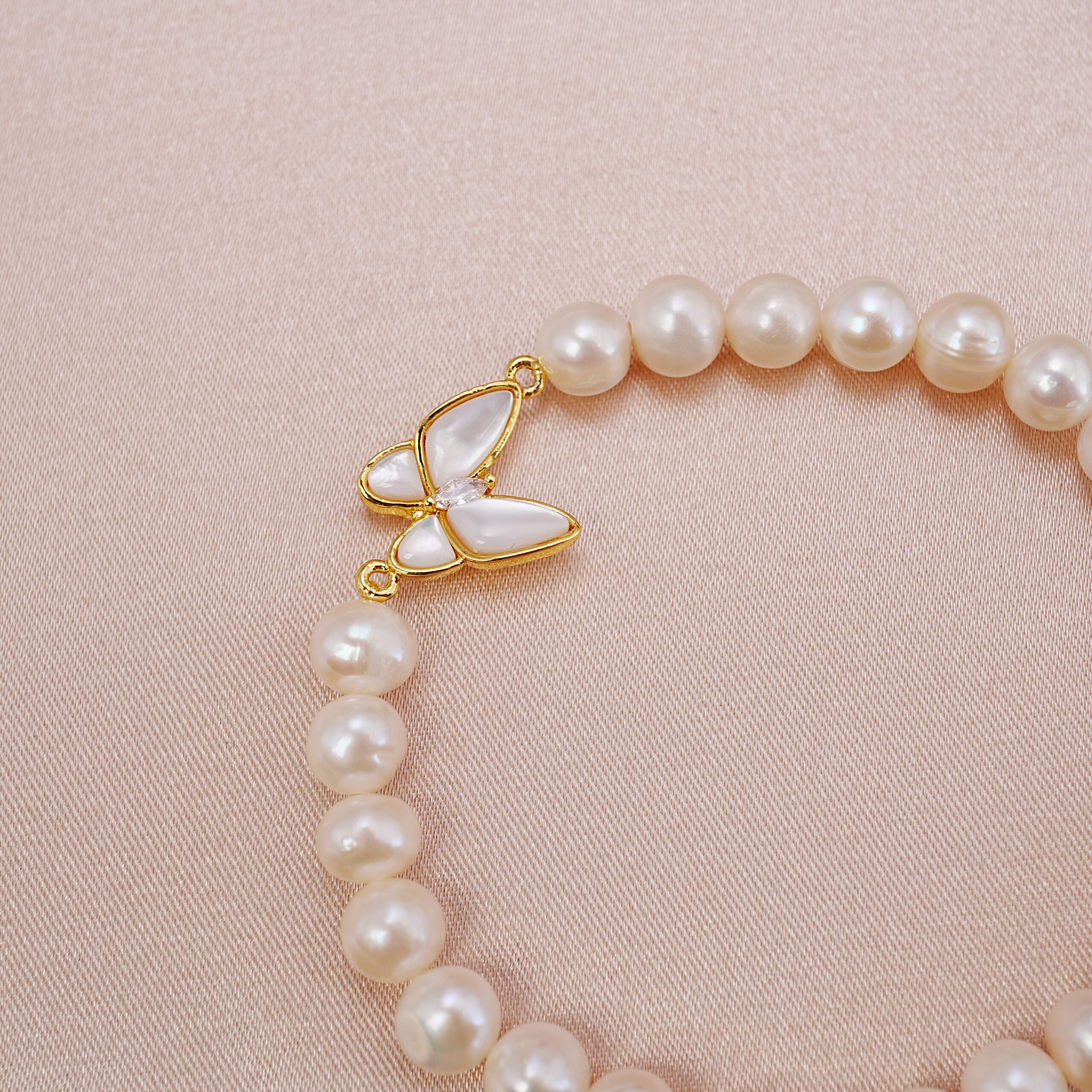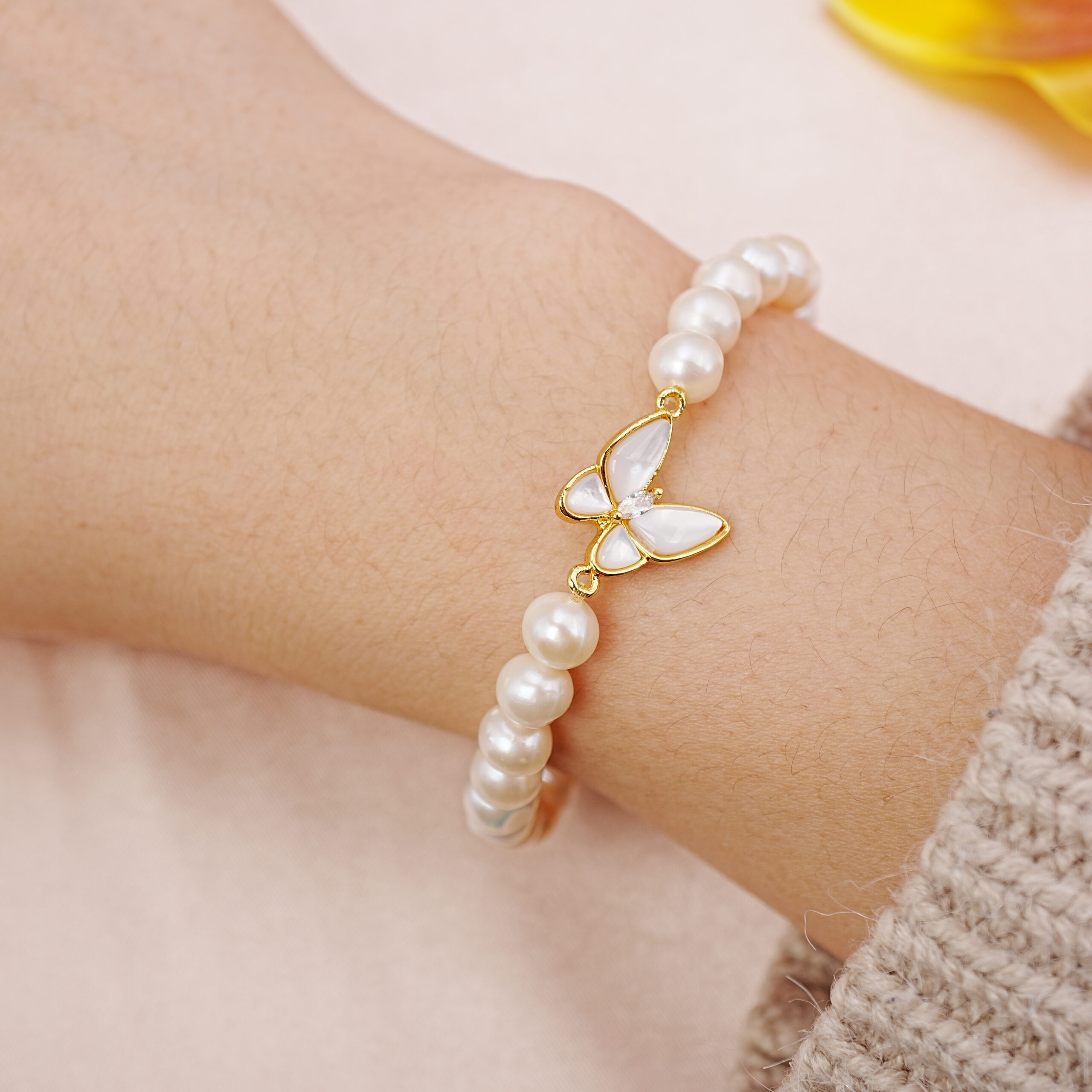 Pearl Butterfly Bracelet – Elegant Pearl Beads with Delicate Butterfly Charm