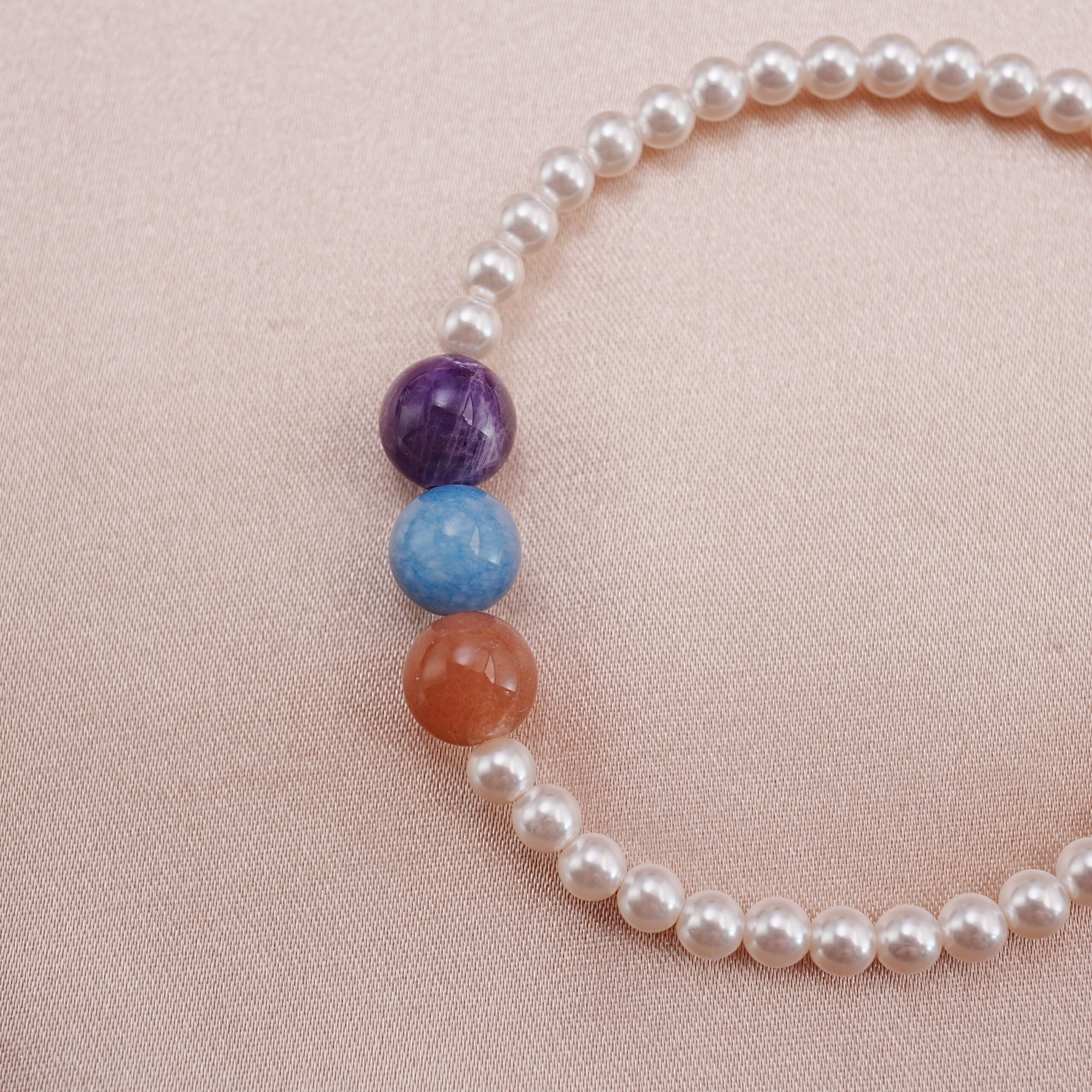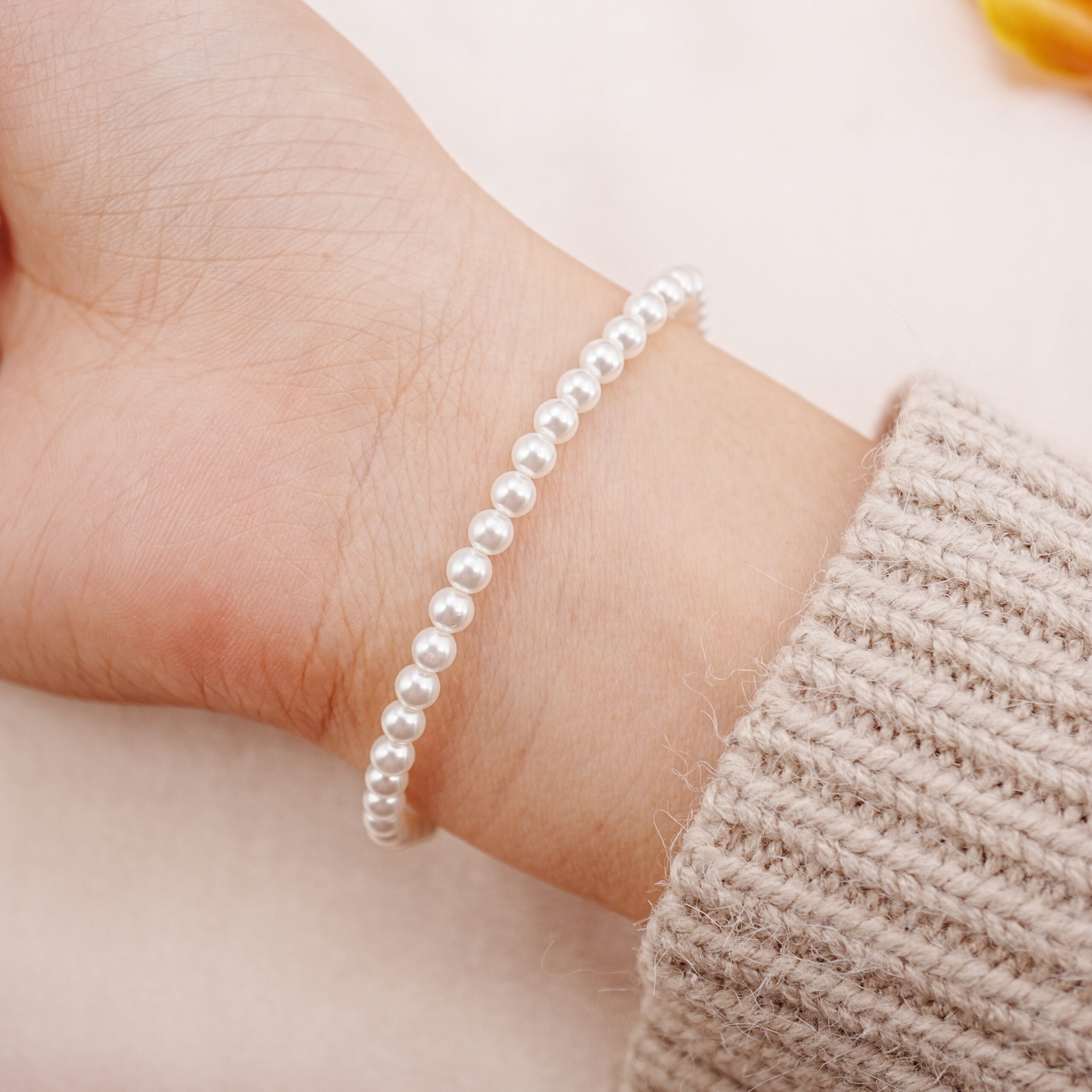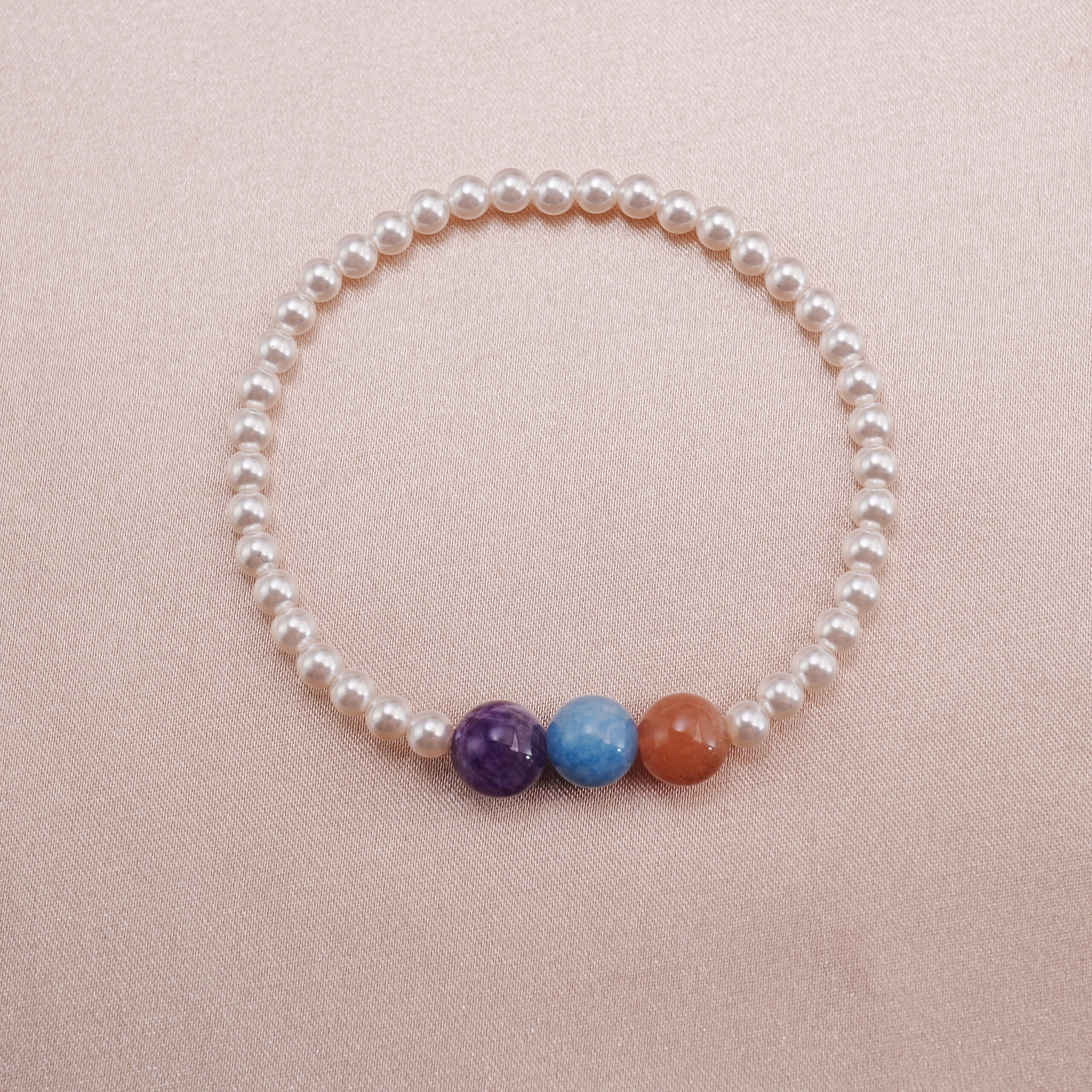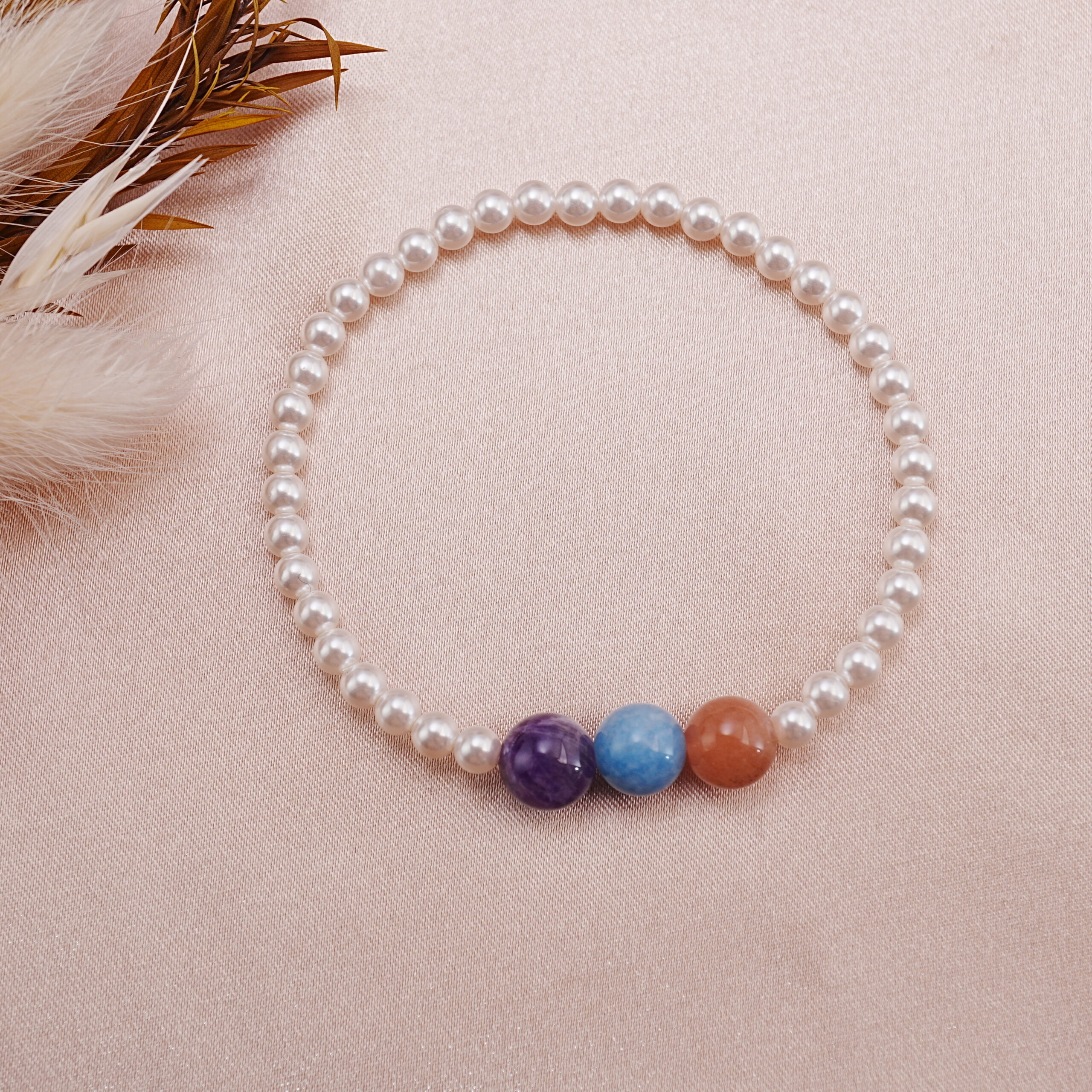A delicate trio-pearl bracelet featuring smooth lustrous beads, offering a timeless feminine touch that elevates everyday outfits with effortless elegance, adding a soft graceful glow to your daily style.