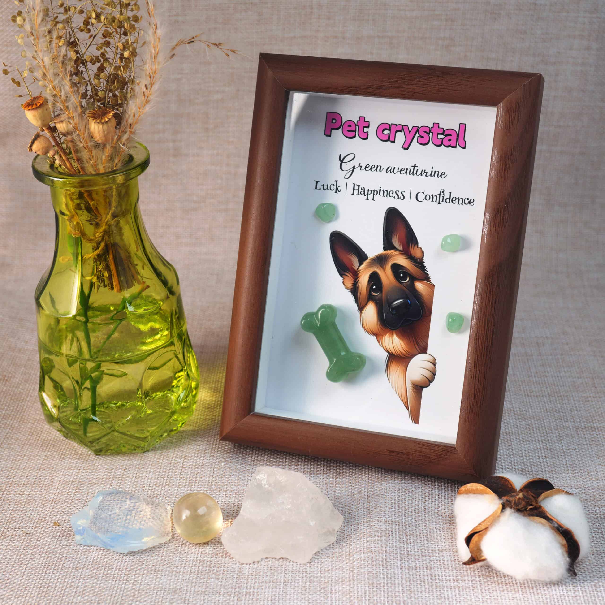 Pet Crystal Art Frame with Green Aventurine – Handmade Pet Painting for Good Luck
