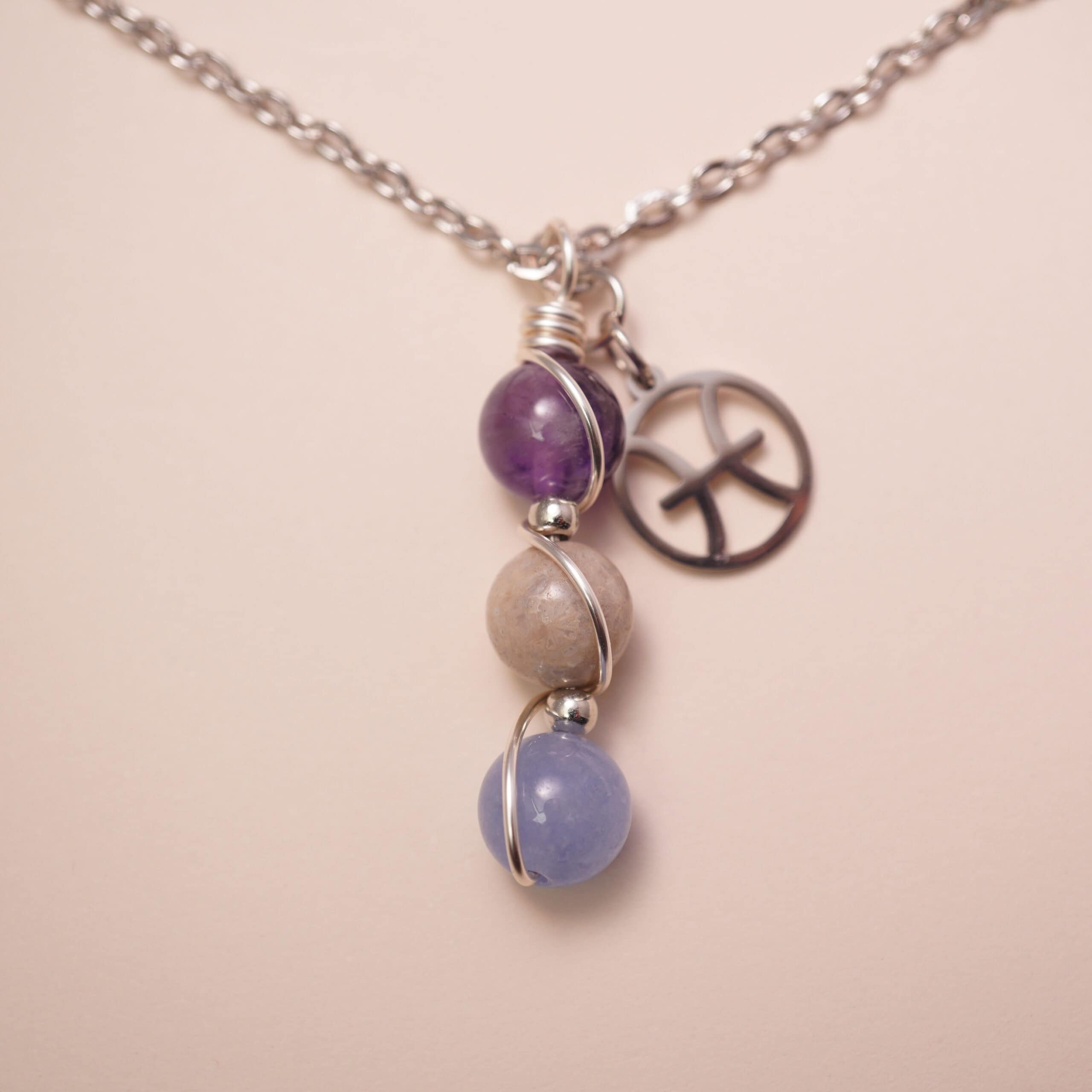 Pisces Zodiac Necklace – Amethyst, Crazy Agate & Aquamarine