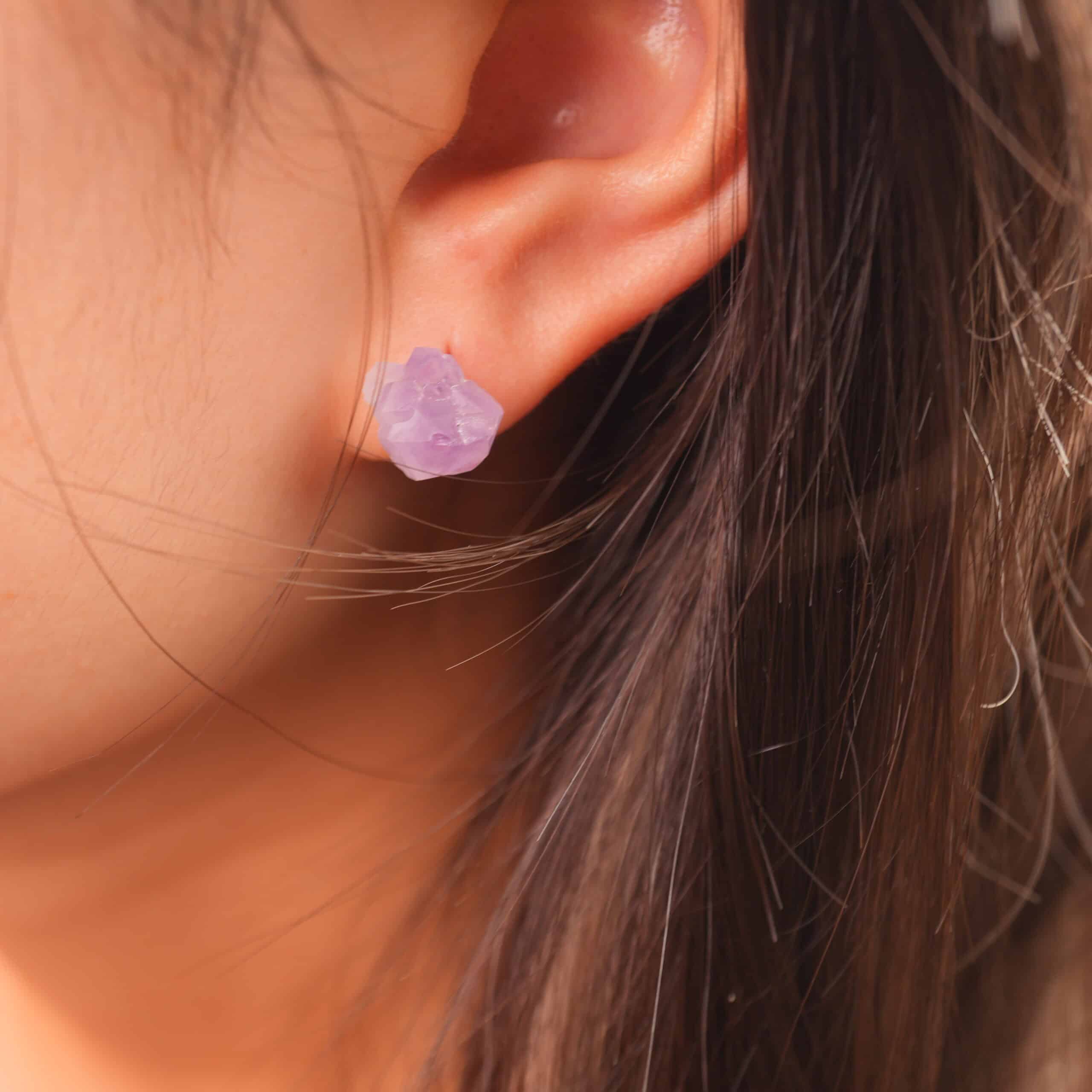 Raw Amethyst Stud Earrings – Calming Crystal Earrings for Sleep & Relaxation