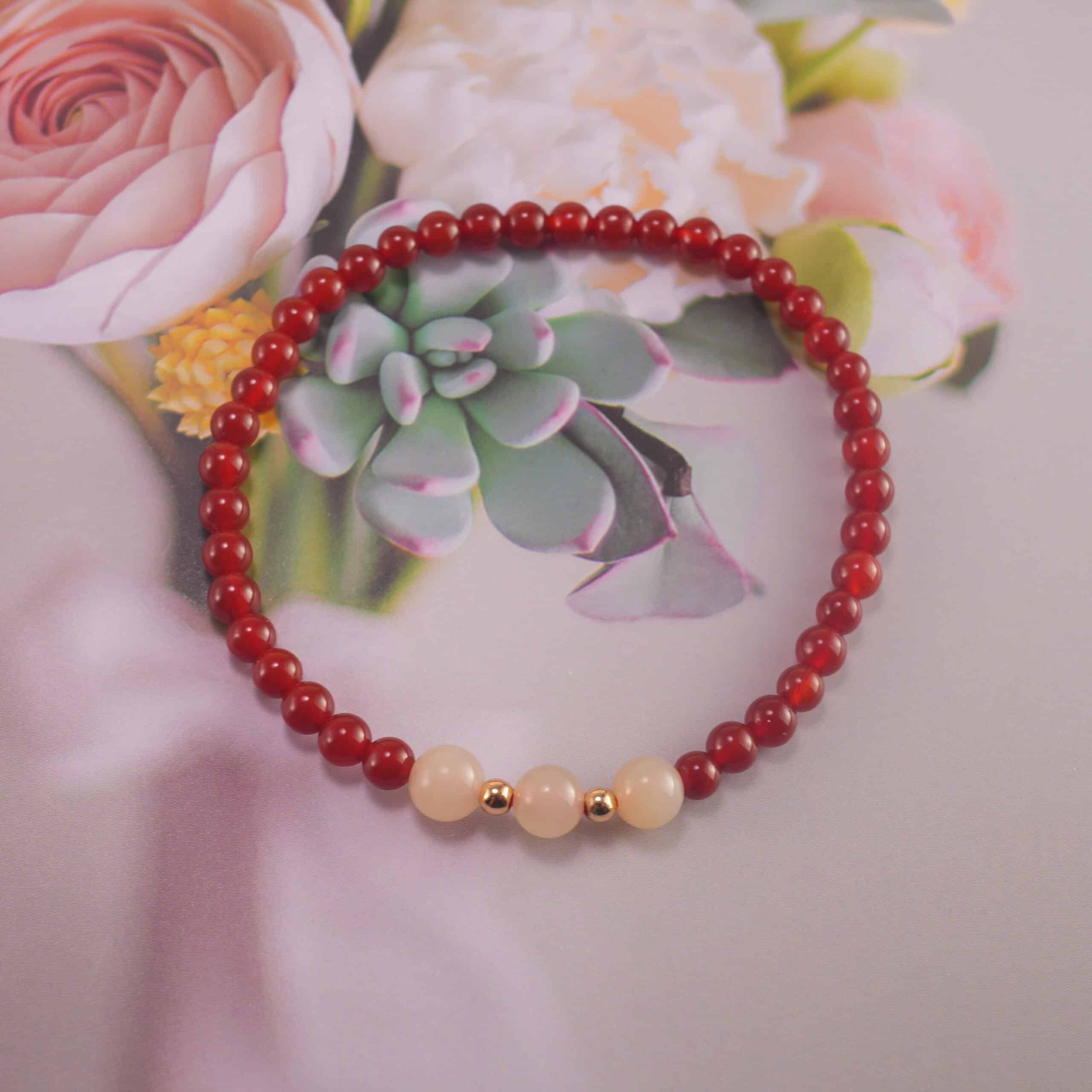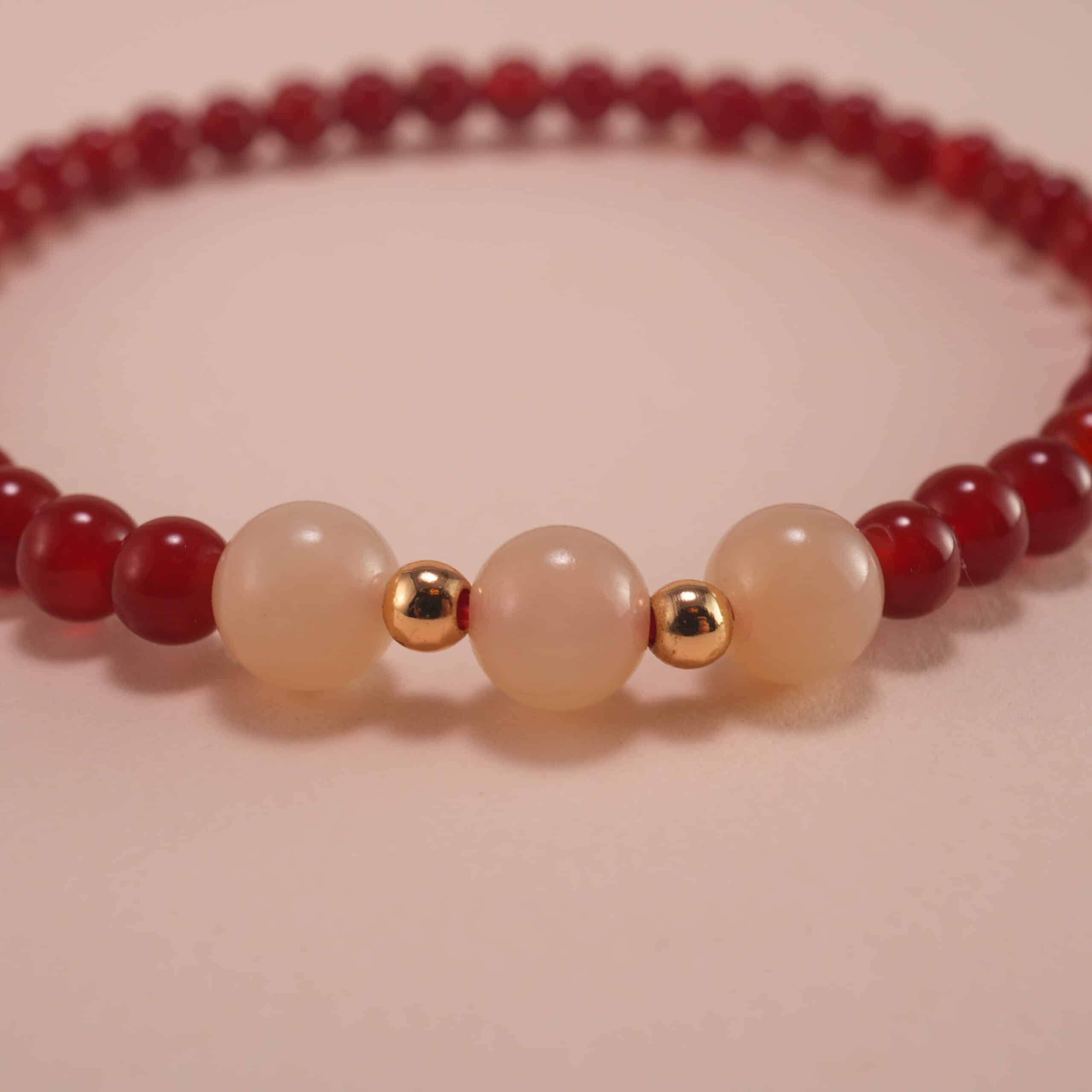 Stacked Bracelets featuring Red Agate, White Chalcedony, and Prehnite, combining grounding, clarity, and healing. Handcrafted in a soft yet vibrant palette to support emotional balance and strength. A soothing crystal stack perfect for daily wear, intention setting, or gifting.