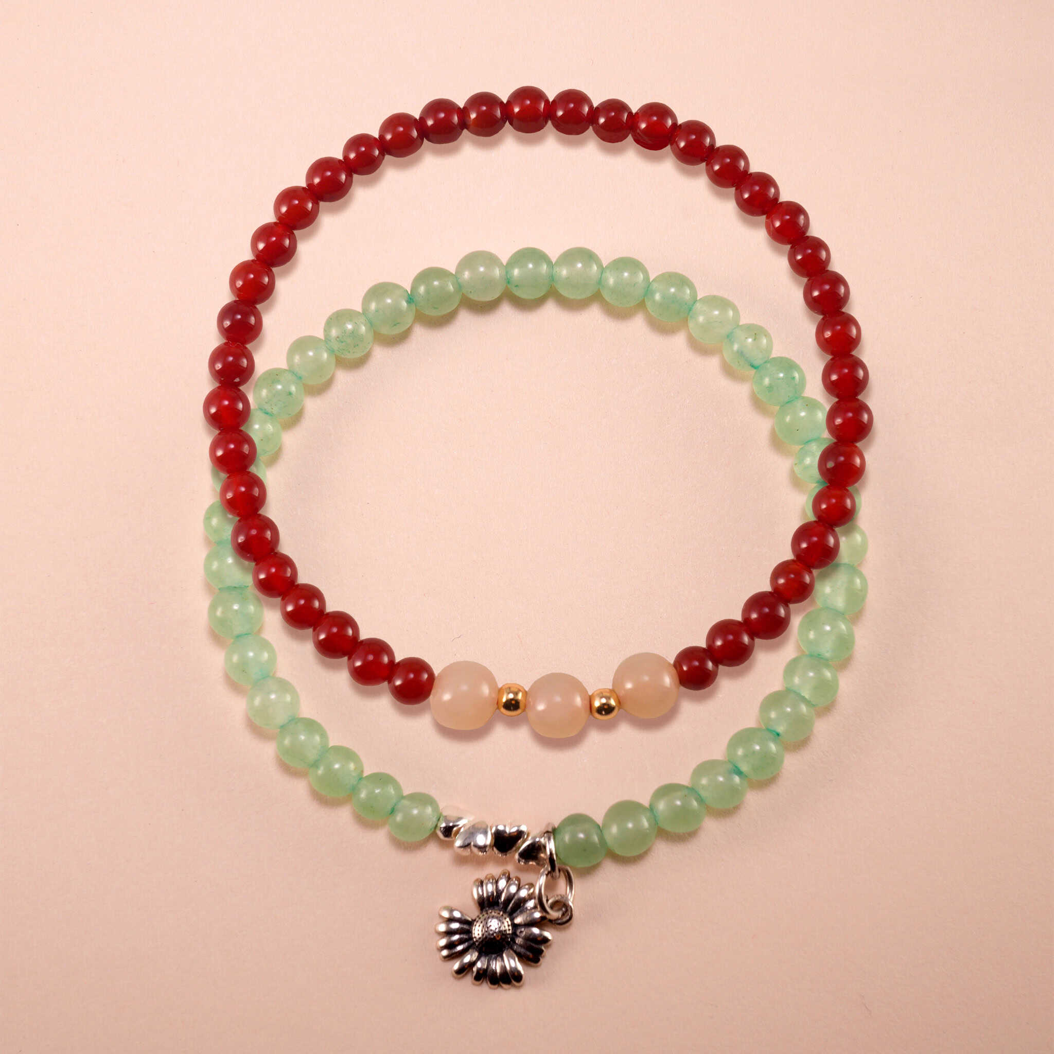 Red Agate, Chalcedony & Prehnite Stacked Bracelet – Vitality & Good Luck