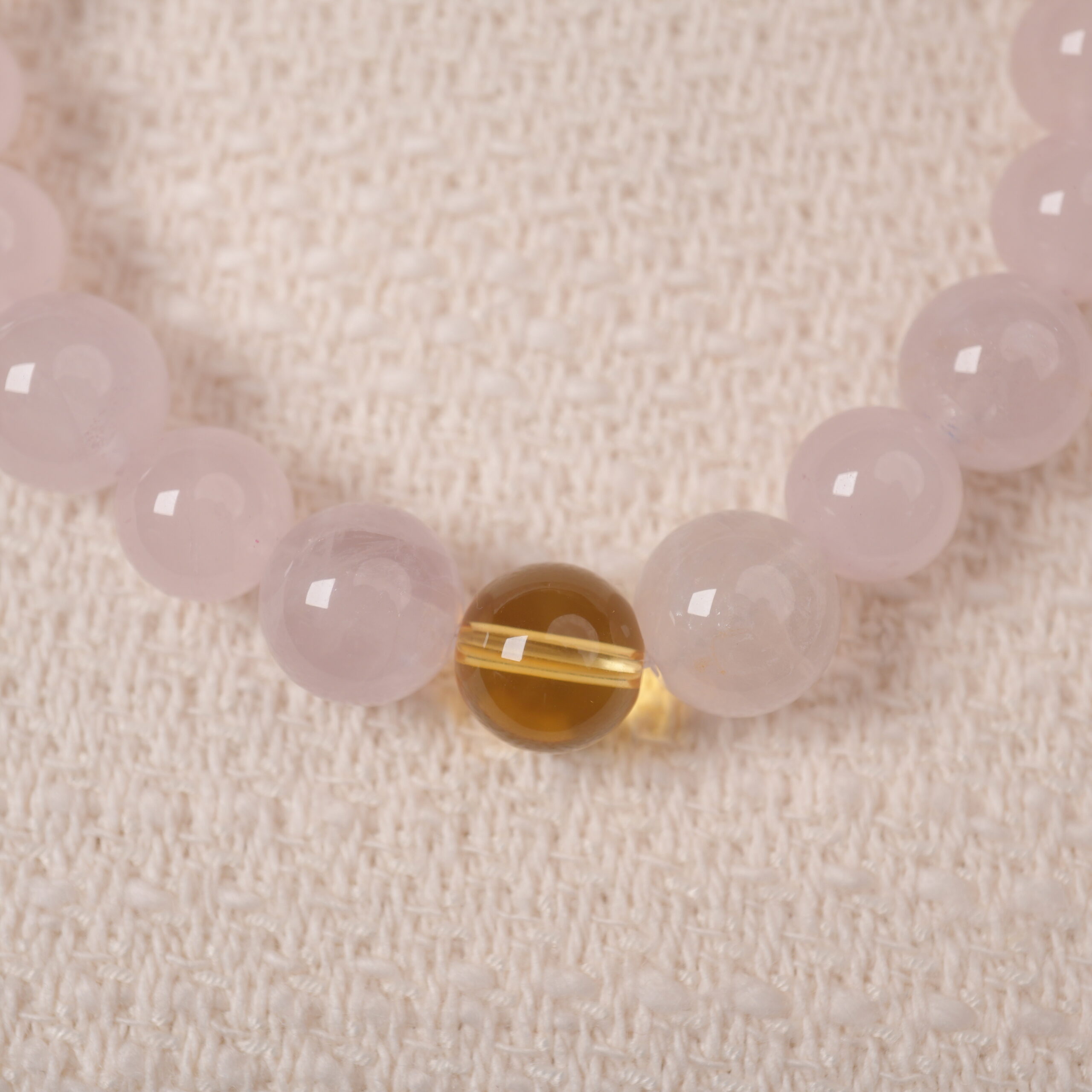 - Features natural rose quartz and sunny citrine beads