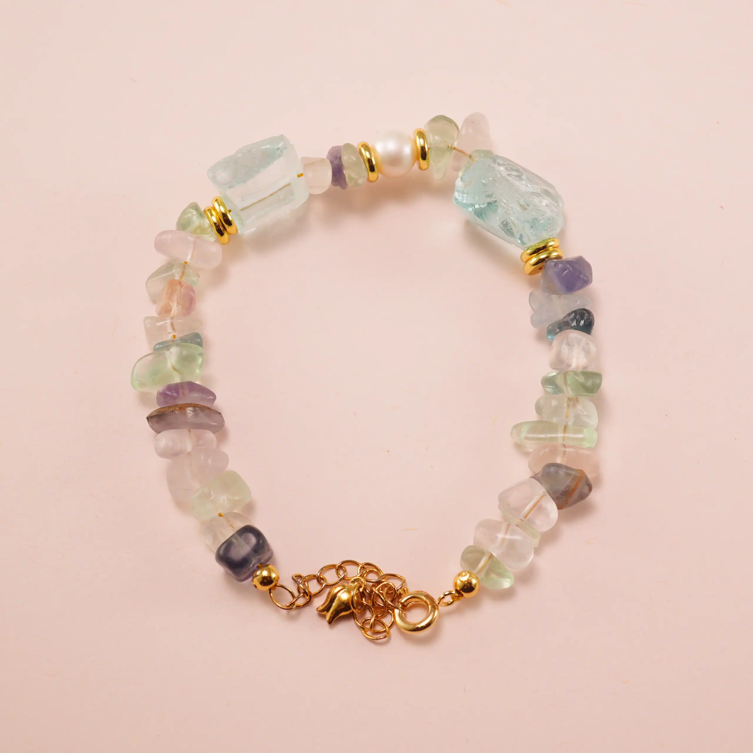 - Features fluorite, aquamarine, and natural freshwater pearls
