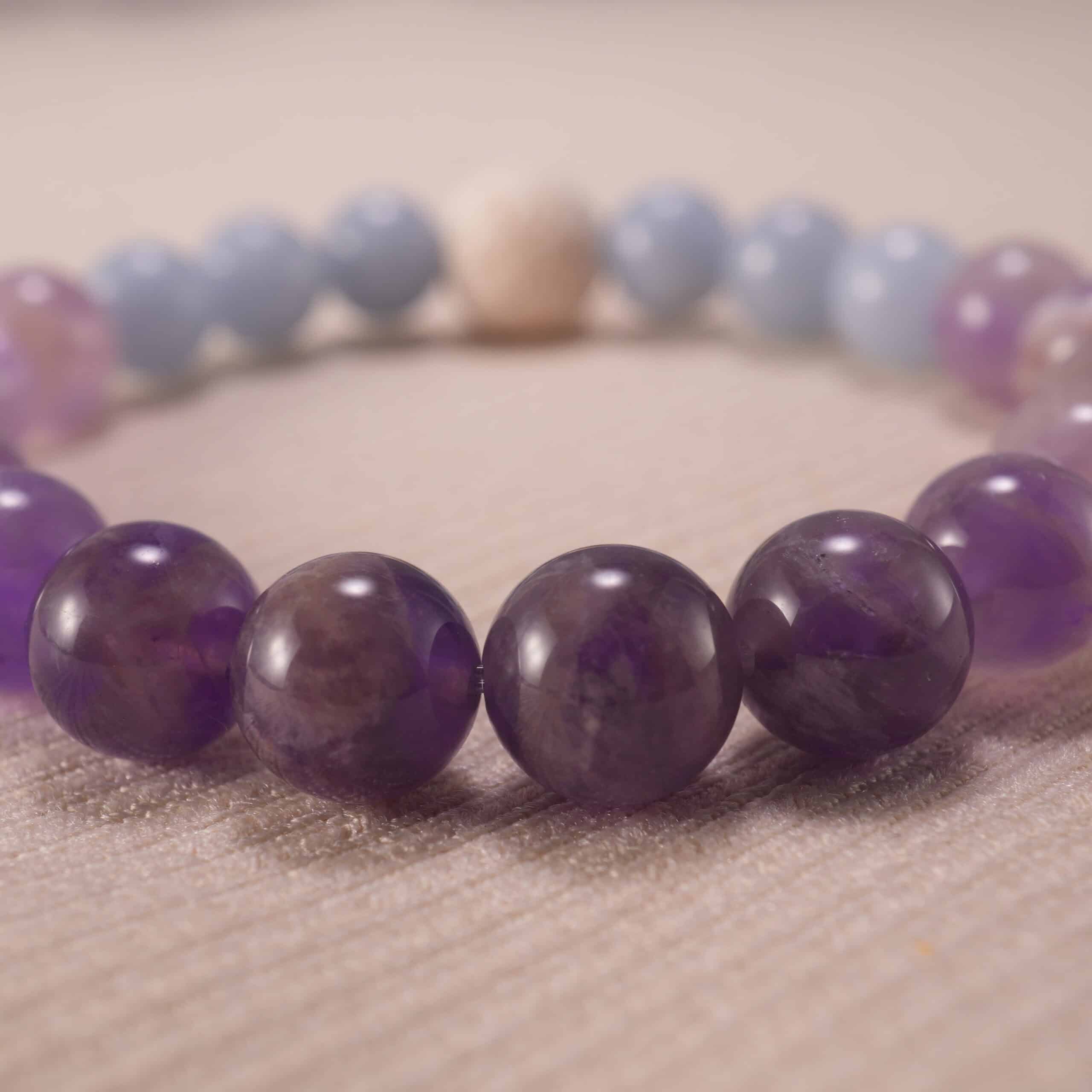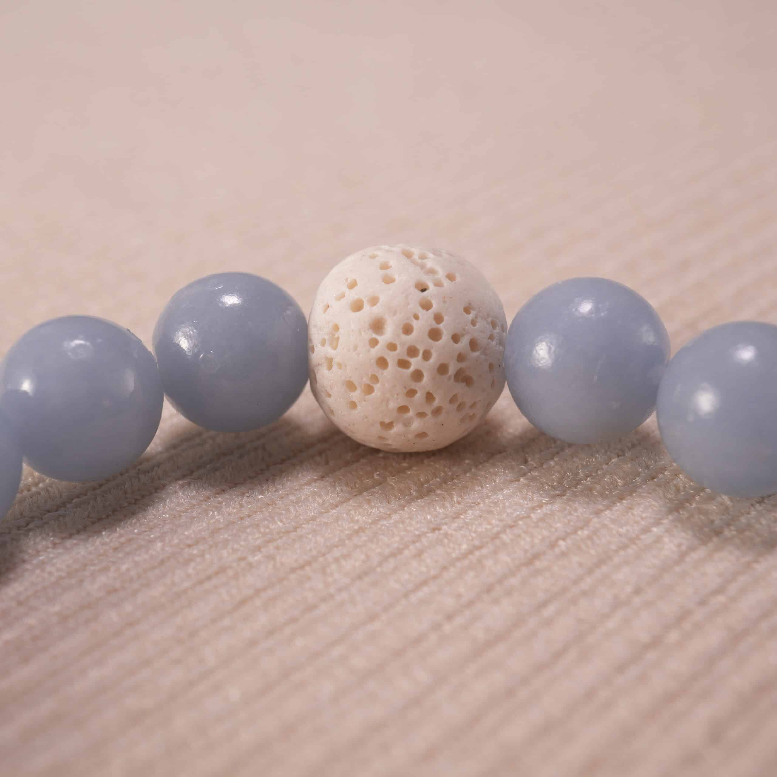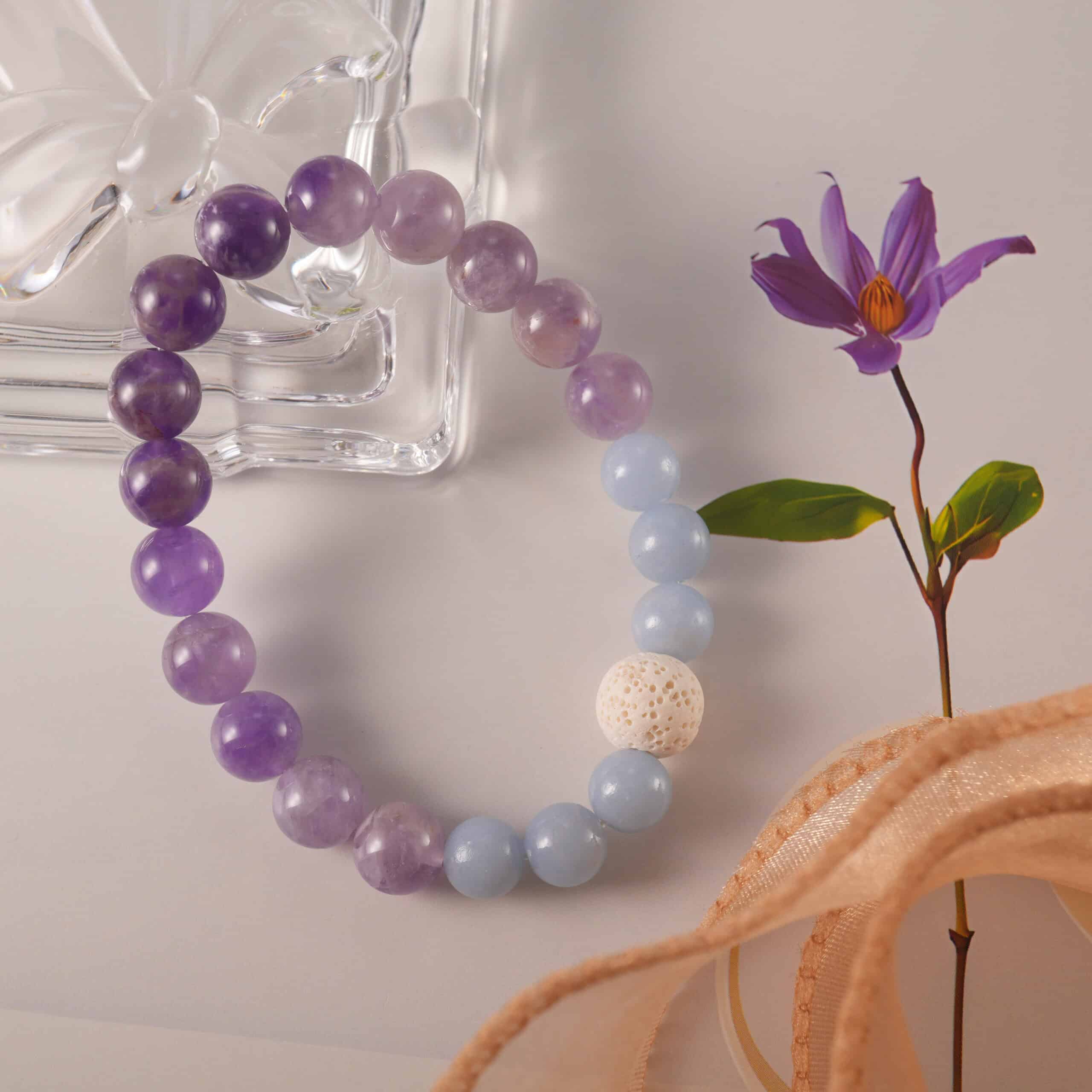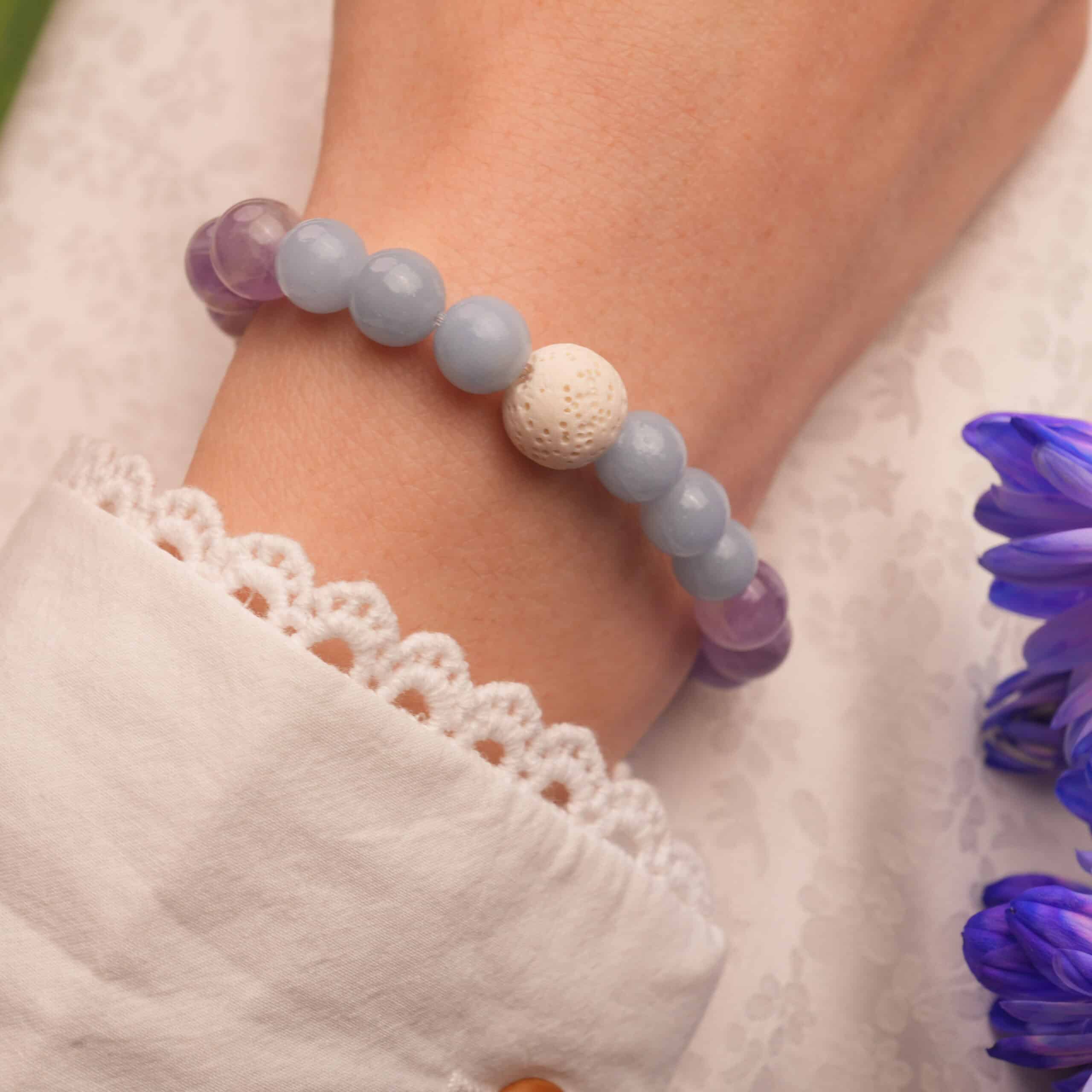 A soothing crystal diffuser bracelet designed to support restful sleep and honest communication—with lava stone, dream amethyst, and blue chalcedony.