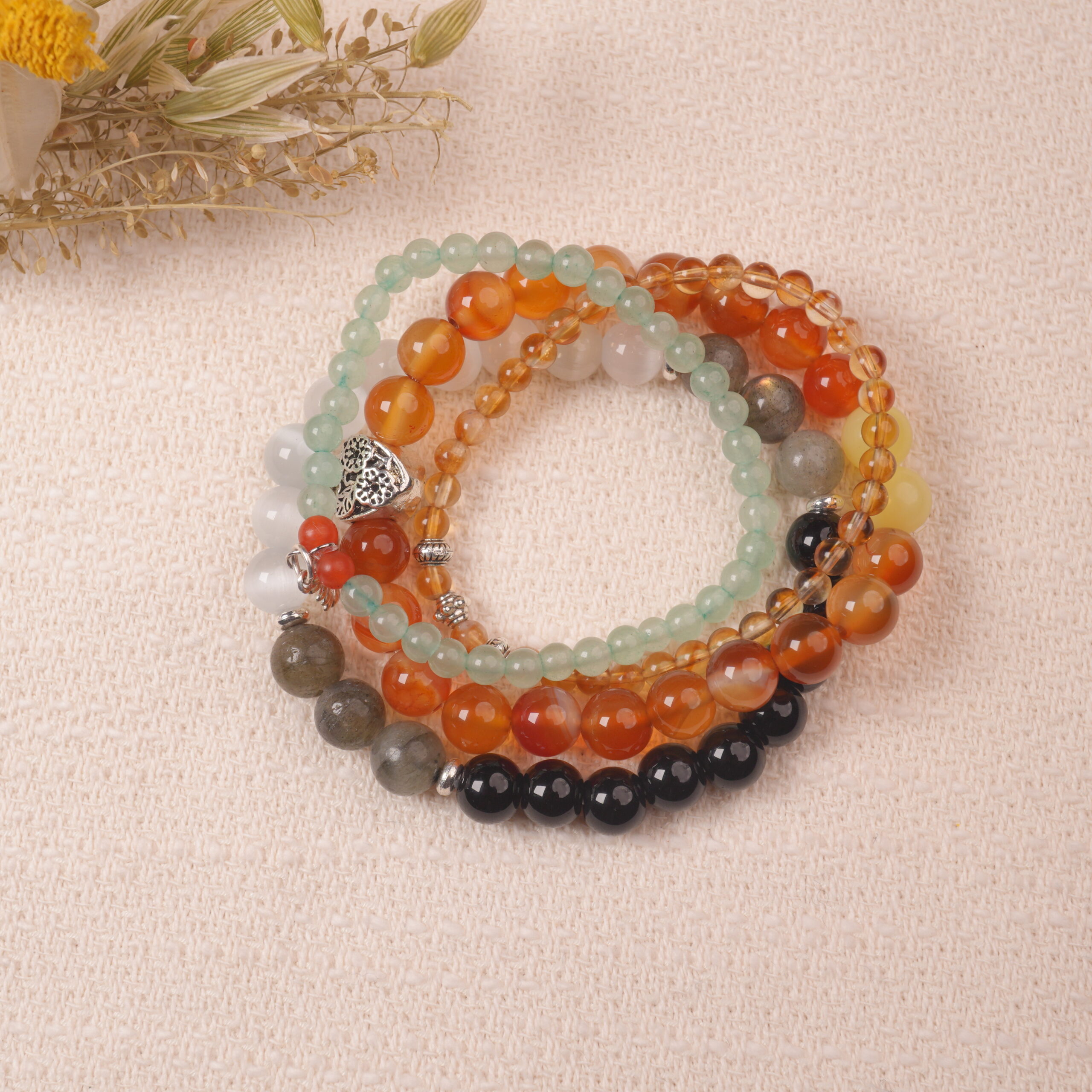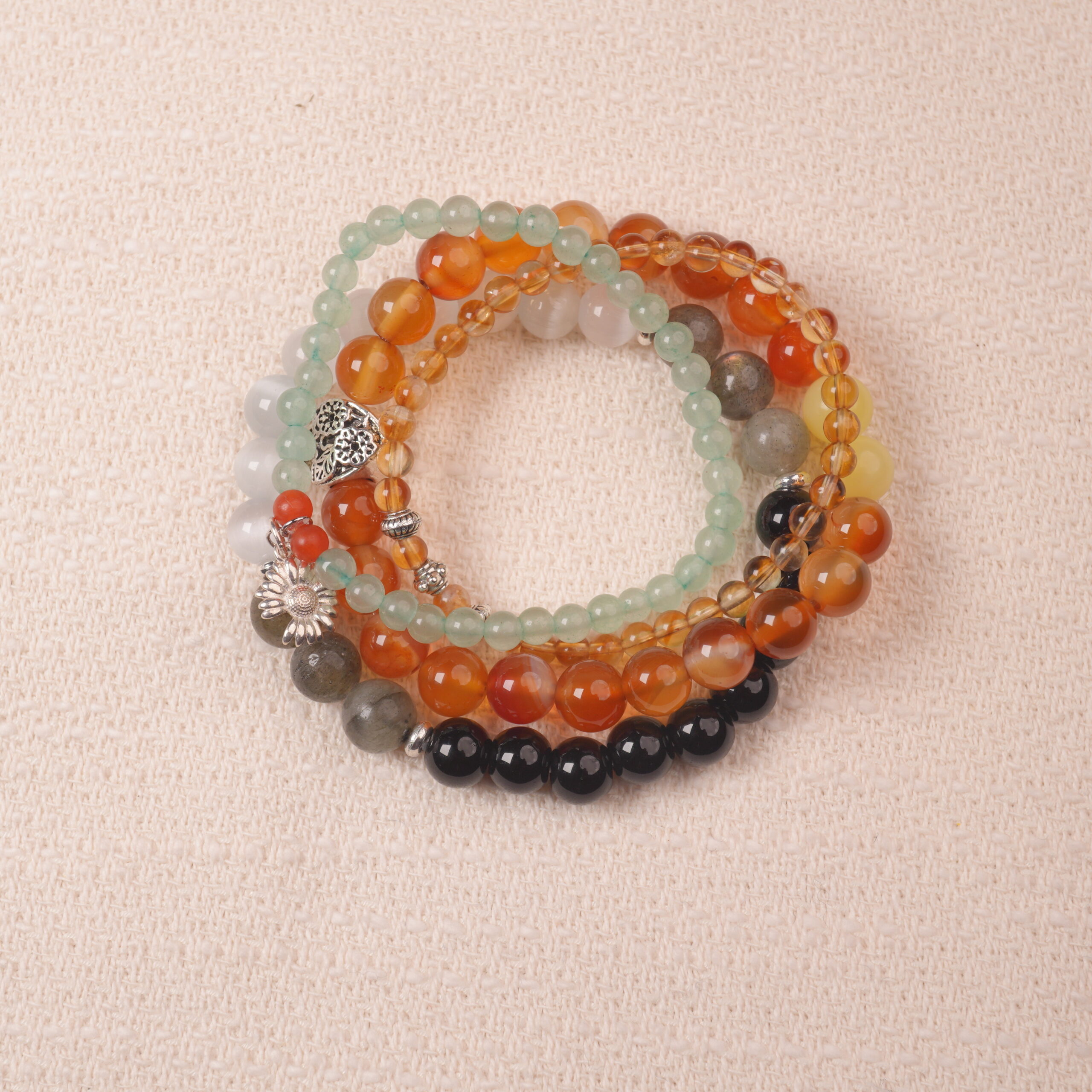 Agate, Amethyst, Aquamarine, Aventurine, Beaded Bracelets, Calm, Carnelian, Chalcedony, Citrine, Clear Quartz, Communication, Creativity, Garnet, Good Luck, Health, Love, Moonstone, Obsidian, Protection, Rose Quartz, Sleep, Tiger Eye, Vitality, Wealth