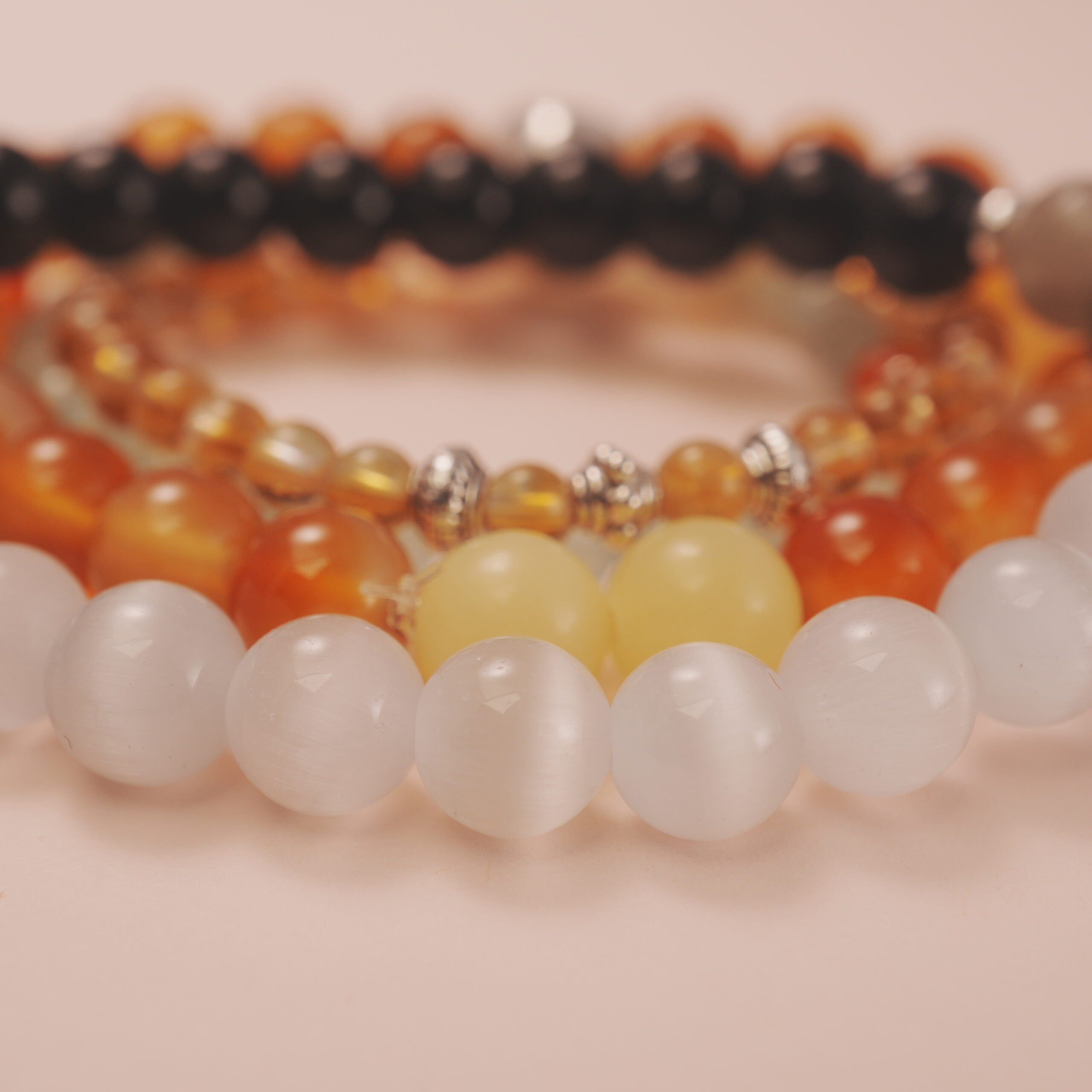 Glow with warmth and energy — this solar-inspired crystal bracelet stack blends smoky quartz and chalcedony to ignite vitality and inner strength, empowering you to shine confidently through each day.
