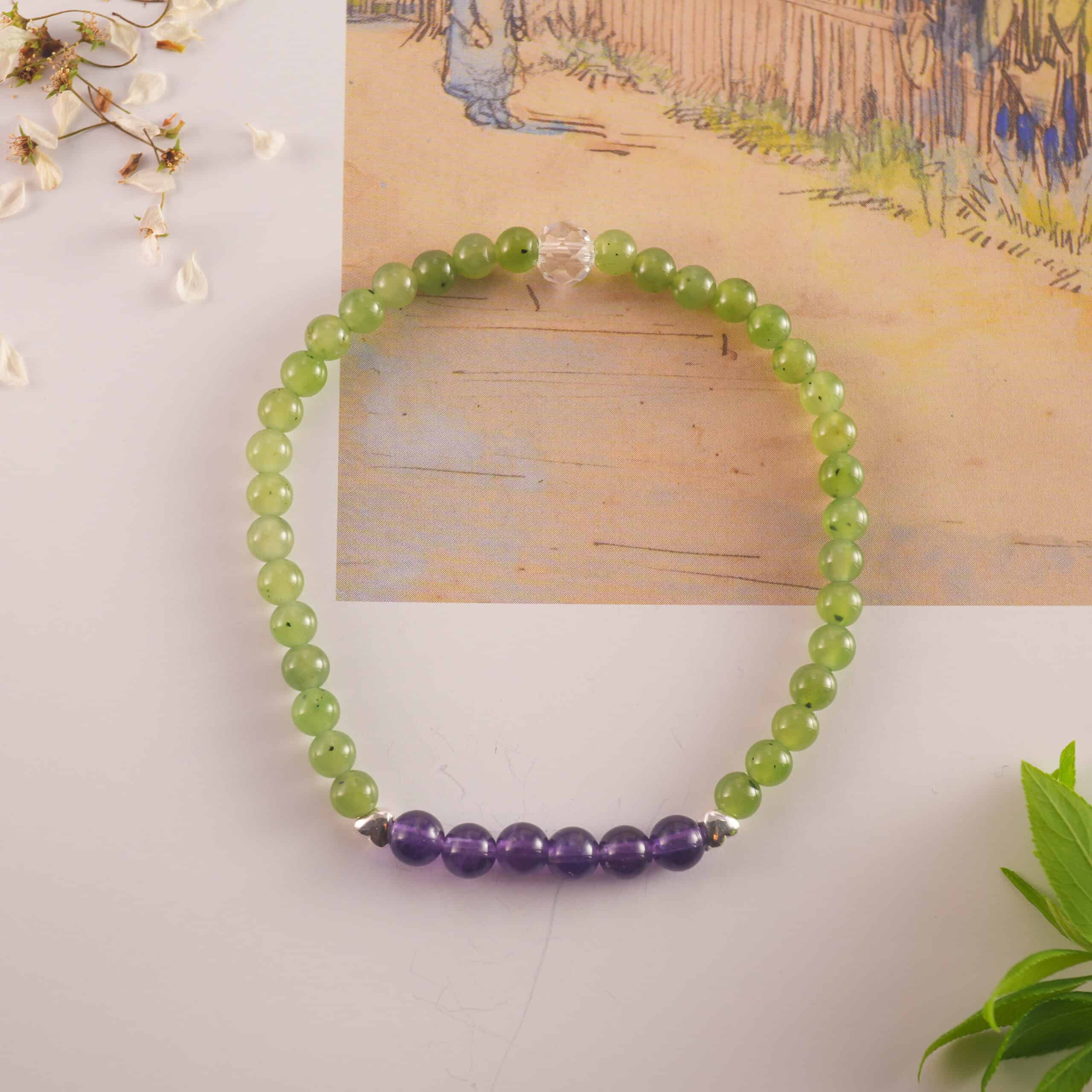 Be the first to review “Green Chalcedony, Amethyst & Strawberry Quartz Stacked Bracelet Set”