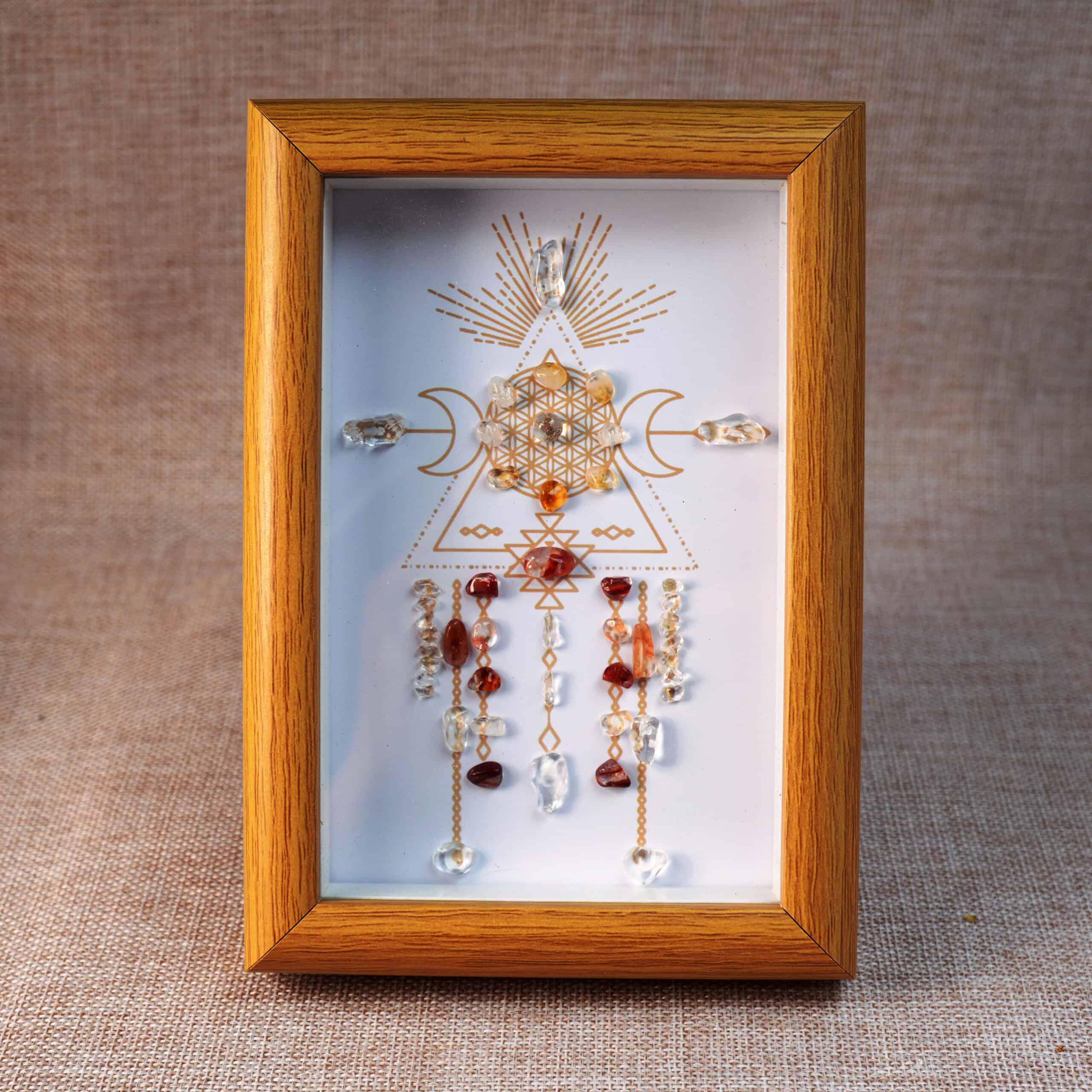 Be the first to review “Sun & Moon Crystal Dreamcatcher Art Frame – Crystal Painting with Citrine & Clear Quartz” Cancel reply