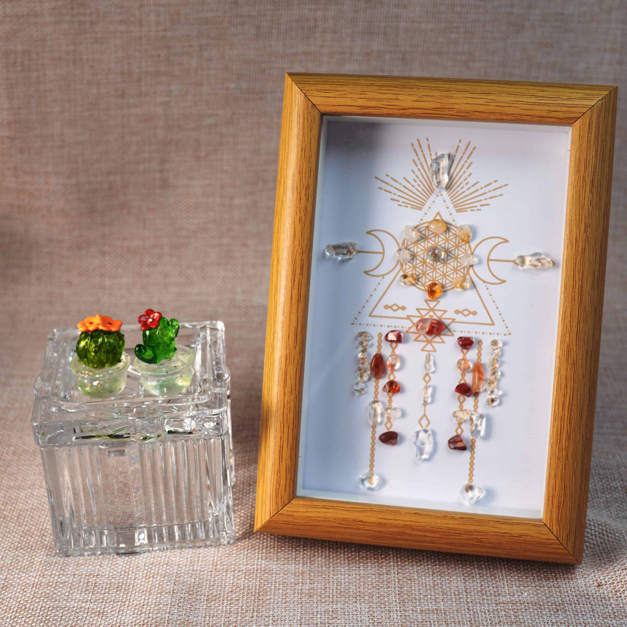 Sun & Moon Crystal Dreamcatcher Art Frame – Crystal Painting with Citrine & Clear Quartz