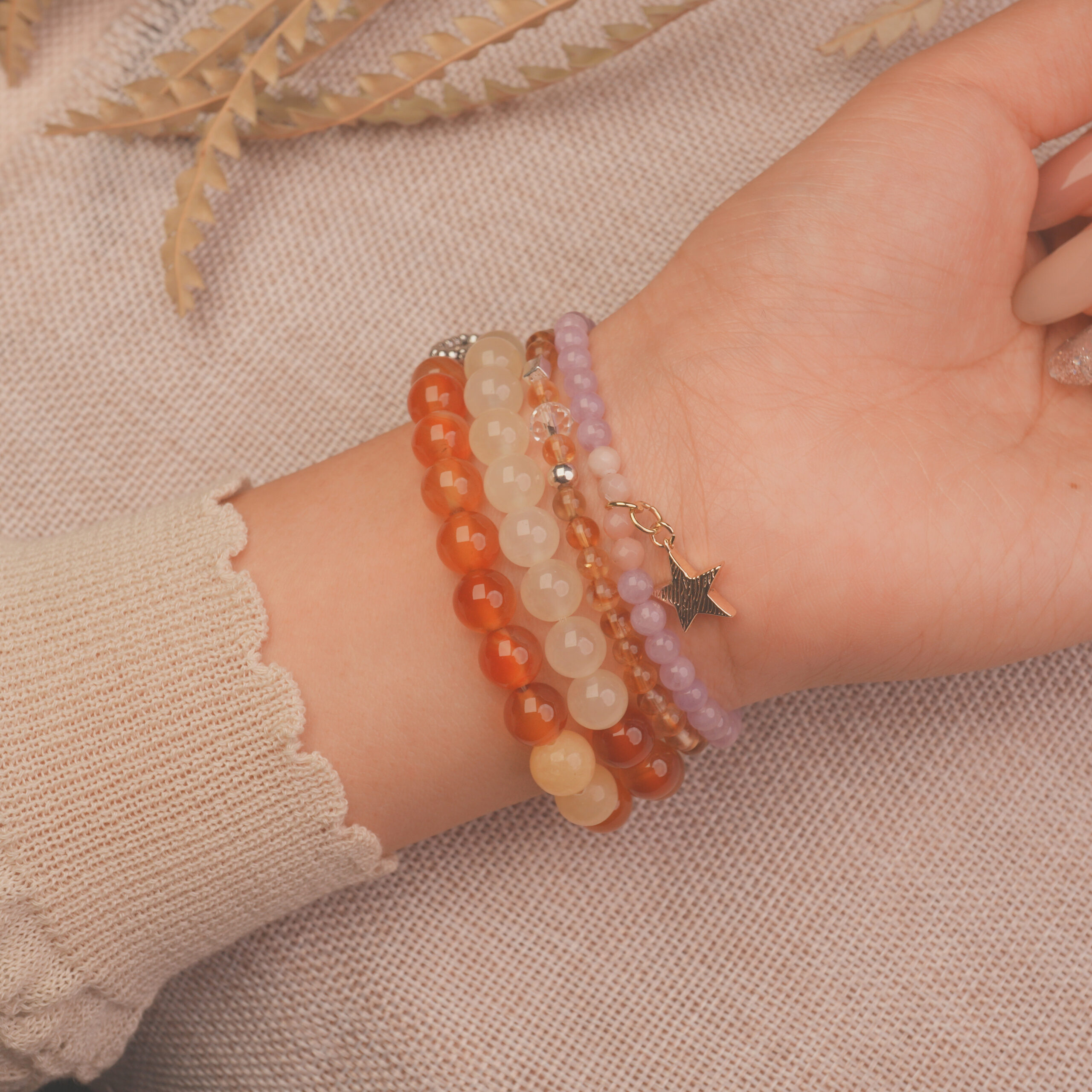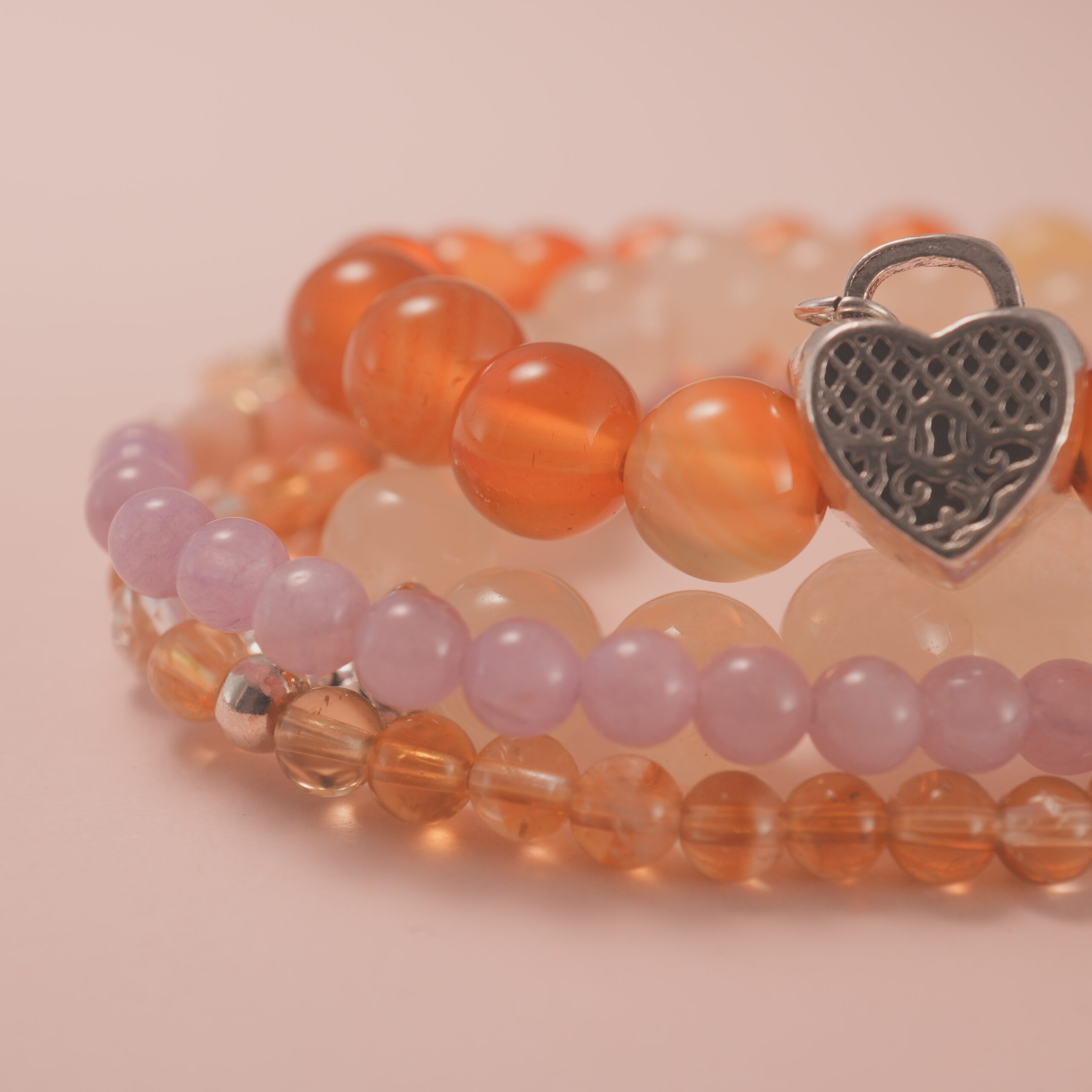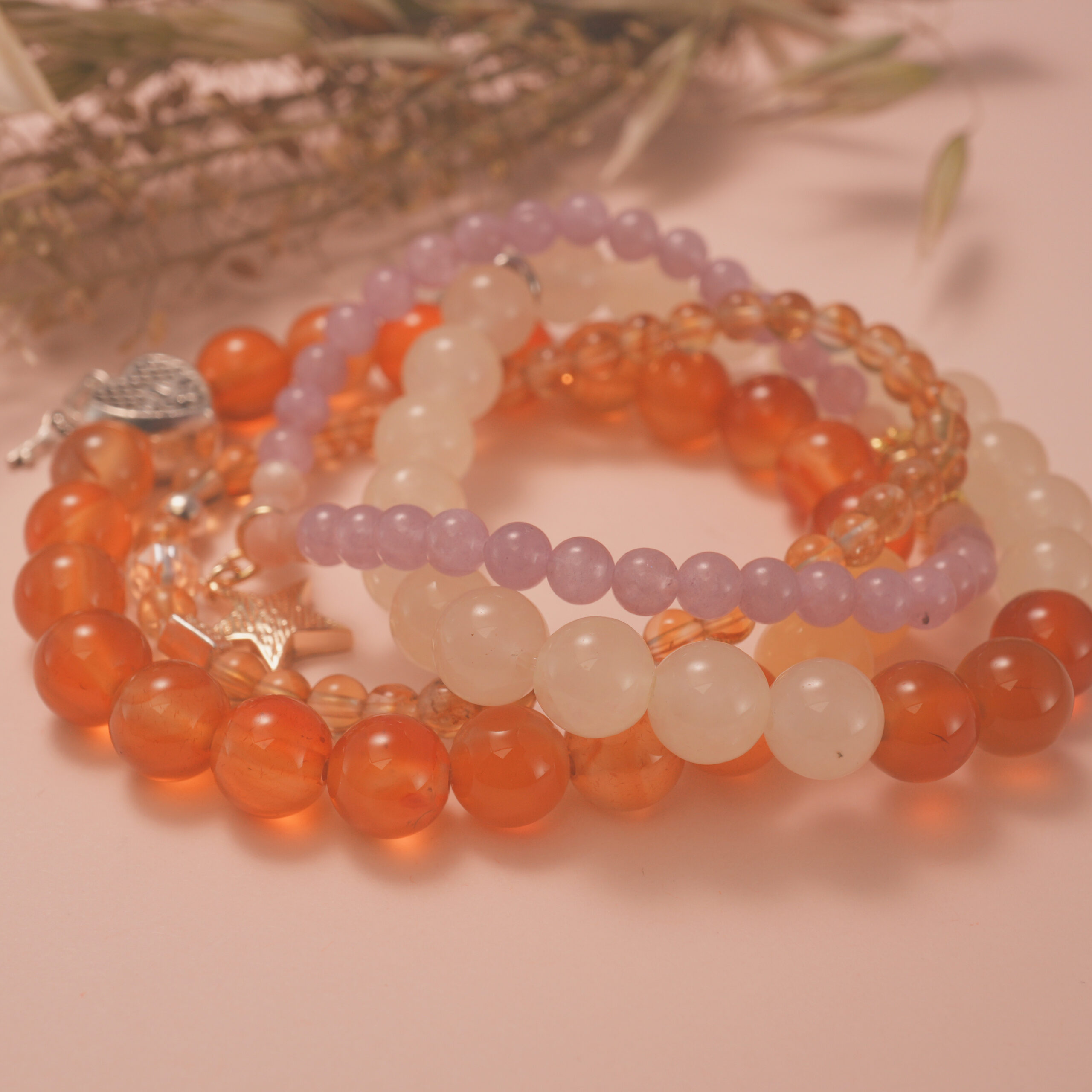 Awaken your inner fire with this energizing bracelet set, featuring citrine, carnelian, and chalcedony to support vitality and confidence throughout your day, inspiring creativity and a radiant sense of motivation from within.