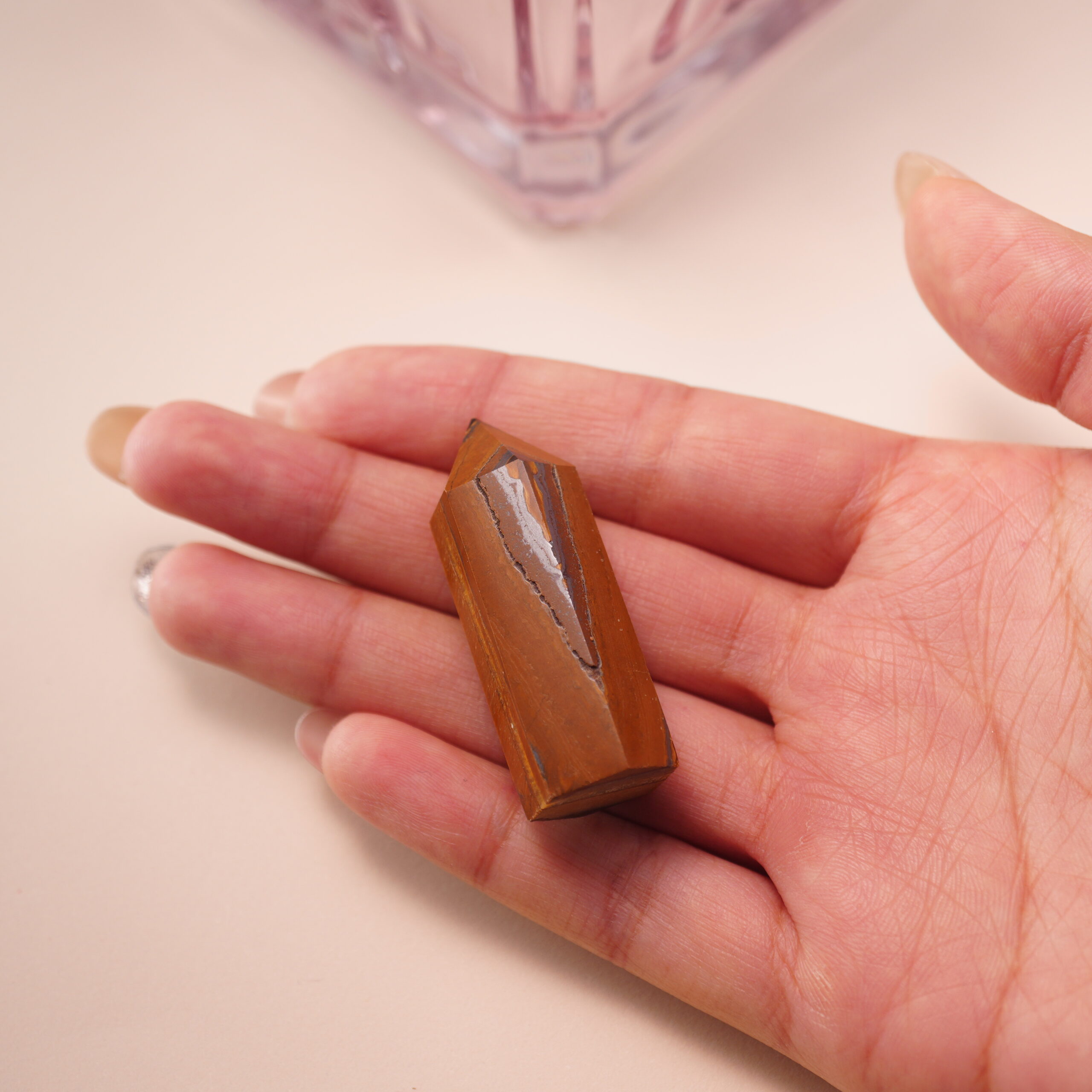 - Set of 3 natural crystal points: black tourmaline, red jasper, and tiger eye