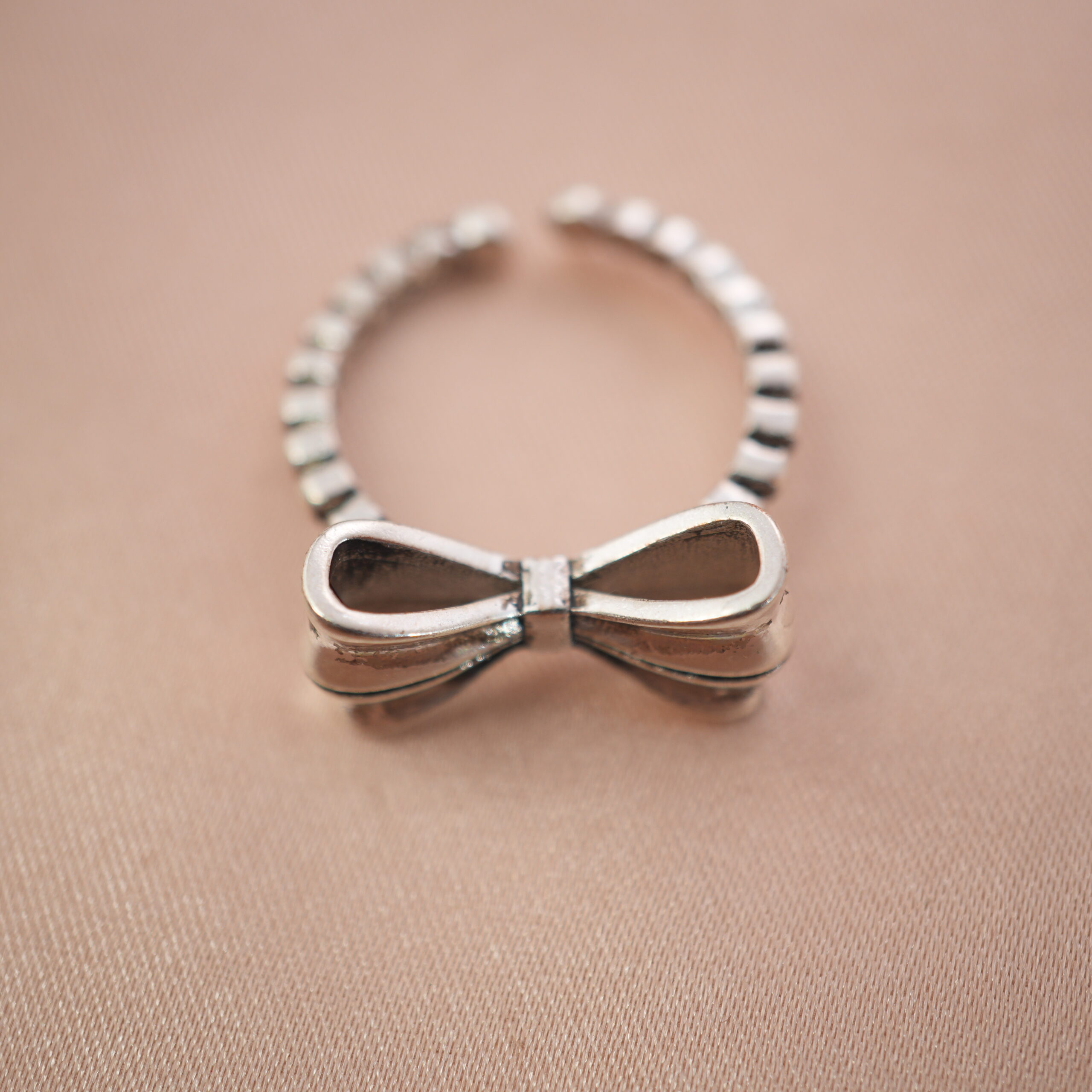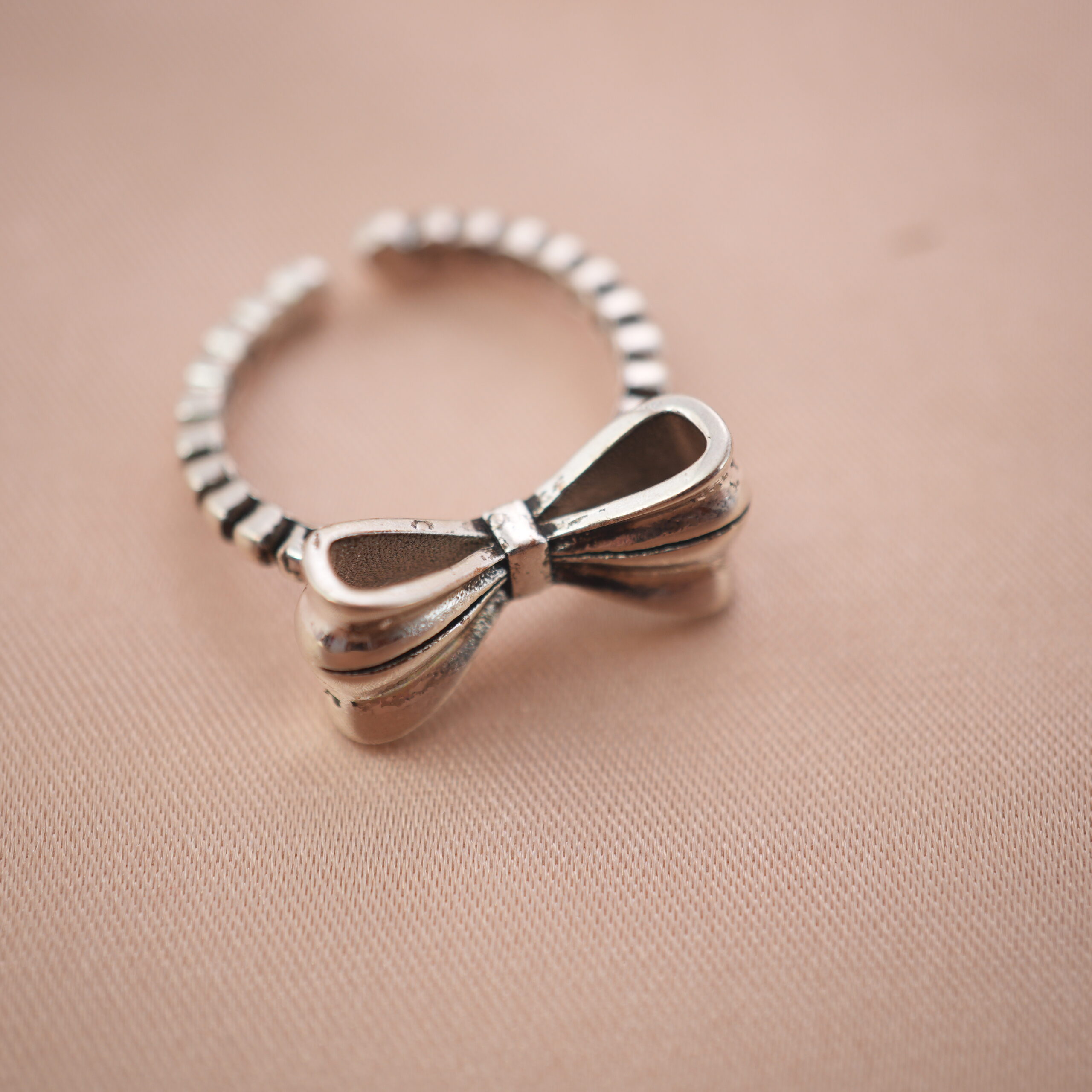 Vintage Bow Adjustable Silver Ring – Cute Retro Design
