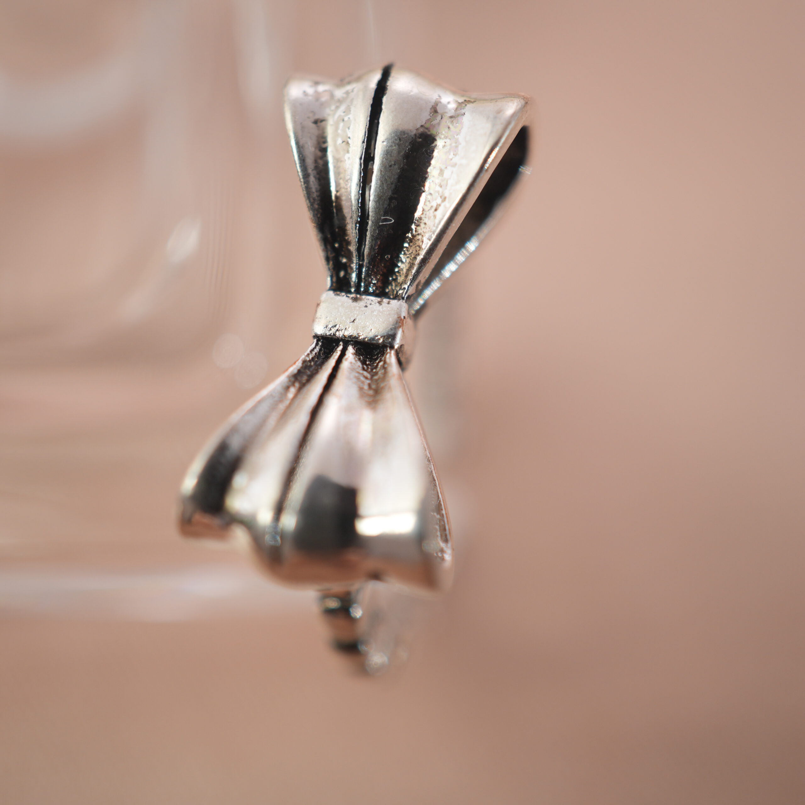 A dainty sterling silver ring featuring a vintage-style bow design. Adjustable and lightweight, this charming piece adds a touch of elegance to any outfit, making it ideal for everyday wear or stacking with your favorite rings.