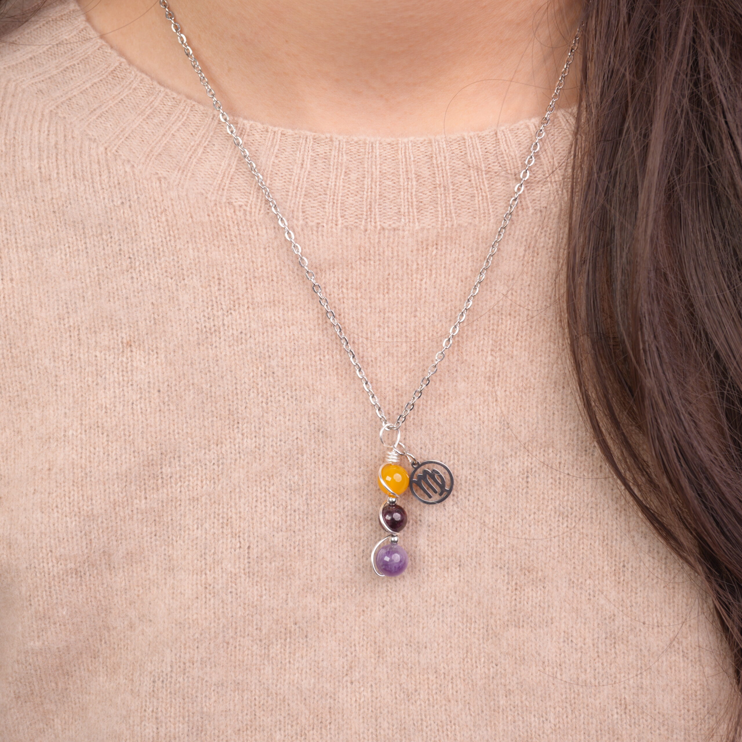 Virgo Zodiac Necklace – Yellow Agate, Garnet & Amethyst