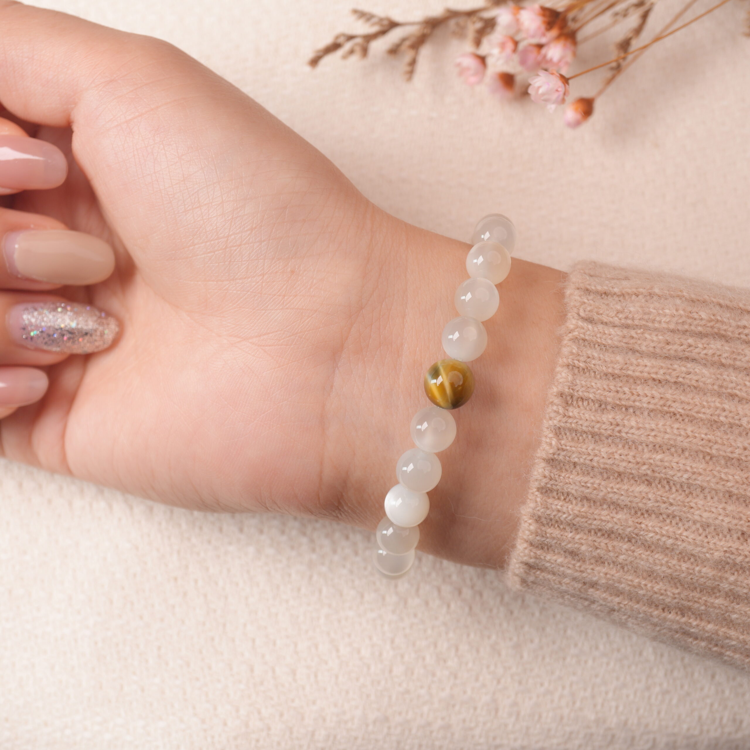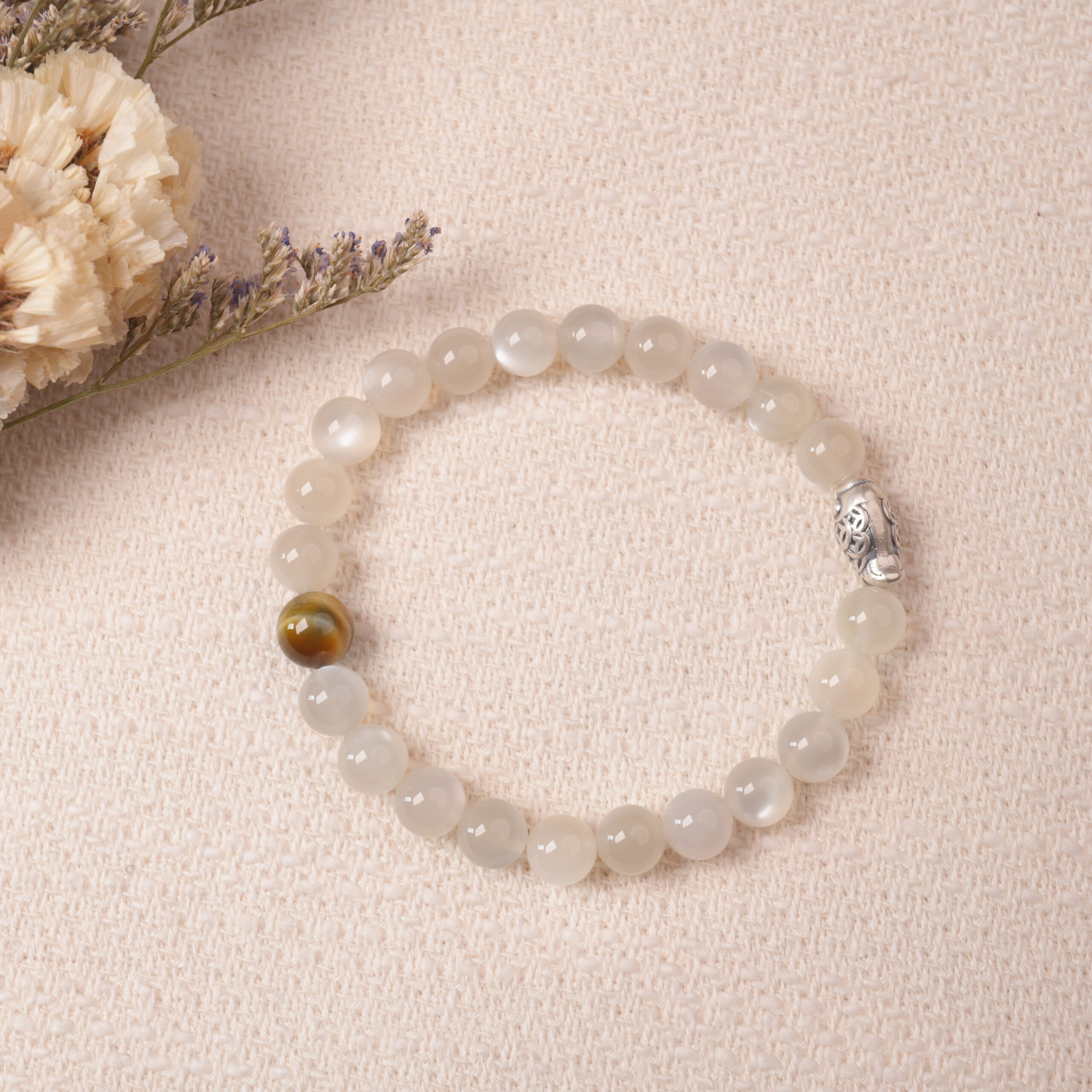 A calming white moonstone bracelet that glows with gentle elegance. Believed to enhance intuition and emotional balance, this moonstone jewelry is perfect for daily wear or gifting moments of serenity.